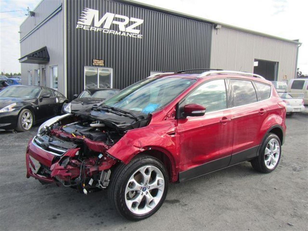 Ford Escape Titanium 2013 Rouge ruby métallique, Très belle couleur à voir absolument!! Le plus équipé des Escape disponible sur le marché!! À ne pas manquer! - * Visitez le WWW.MRZPERFORMANCE.COM pour tous détails et beaucoup plus de photos! * - Moteur 4 Cyl Ecoboost de 2.0l développant 240HP et 270 lbs/tq! TRÈS puissant pour la grosseur du véhicule!! Transmission automatique 6 vitesses. Traction intégrale ( AWD ) - Très économique!! +/- 8.5 litres au 100km!! Très bas kilométrage! Seulement 26000km. Full équip!! Intérieur en cuir noir - Siège chauffants et électriques - Mags 19'' avec tires neufs - Système de navigation GPS - Lumières avant HID - Miroirs électriques et chauffant - Vitres teintées - Rack de toit - Aileron - Commande au volant - SYNC - Télécommande d'ouverture porte de garage - A/C bi zones - MYKEY - MYFORD TOUCH - 1 Clé + Démarreur à distance OEM - Toit ouvrant panoramique - Sirius - Lecteur CD - Cruise control - Fogs lamp - ETC! Accidenté léger à l'avant du véhicule. Besoin d'un devant assemblé ( Disponible à 5000$ ). Nous pouvons vous fournir les pièces nécessaires à la réparation de ce véhicule à prix très compétitif. Disponible tel quel ou réparé par des professionnels et inspecté par la SAAQ - Mécanique en parfait état de marche!! Ballon AVG, ballon genoux gauche et ceinture gau déployés. Pas cher dans le neuf. *** VGA CANADIEN / SALVAGE TITLE*** - Valeur a neuf de plus de 42 600$!! *** Pas de camouflage de dommages sur nos véhicules! PLUSIEURS AUTRES ESCAPE 2013 EN STOCK !!!! Venez nous voir ou allez visité notre site internet pour plus d'informations! *** Acheter en toute tranquillité car nous sommes membres AMVOQ! Automobiles MRZ, la référence dans l'accidenté léger au Québec! WE SPEAK ENGLISH PLEASE CONTACT US - MRZ IS THE VEHICLE CAR EXPORT AND IMPORT SPECIALIST - USA - AFRICA - MIDDLE EAST - EUROPE - MRZ EST LE SPÉCIALISTE EN EXPORTATION et IMPORTATION DE VÉHICULES - USA - AFRIQUE - EUROPE - PROCHE ORIENT - Visitez-nous aussi sur Facebook - Merci!