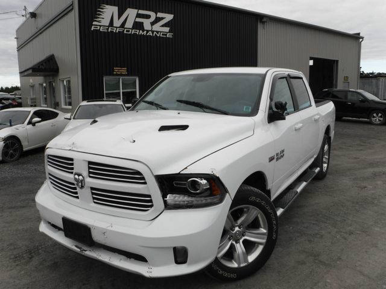 Dodge Ram 1500 SPORT R/T 4X4 2014 Blanc, Crewcab avec boite de 5.5pi - Un truck avec un look d'enfer à voir absolument! Camion sans pareil en blanc avec intérieur noir - Faites l'envie de tous avec un des plus beau camion sur le marché! - * Visitez le WWW.MRZPERFORMANCE.COM pour tous les détails et beaucoup plus de photos!! * - Faites vite, les RAM Sport en tres grande demande et ca part vite - Moteur V8 5.7l HEMI de 390HP avec transmission automatique 8 vitesses à bouton électronique. Très puissant! Très bas kilométrage, Seulement 57 800 km! Ultra clean, kilométrage de route, pas de bois ou de chemin de terre! 4X4 Crew Cab avec boite de 5.5pi. Camion tres bien équipé! Mags 20'' - Miroirs électriques et chauffants - Miroirs power fold - Towing Package - Commandes au volant - Bluetooth - Sirius - Prise USB- Prise 12V et 115V - Backglass sliding électrique - Intérieur en cuir et tissus noir - A/C - Lecteur CD/MP3 - Cruise control - Tout électrique - Fogs - Console centrale - Grosse écran tactile - Marchepieds - Vitres teintées - Caméra de recul - Line X - Hood R/T - Chauffe moteur - Vitres et Sièges électriques - Wiper intermittent - 2X Clés intelligente - Différentiel autobloquant - Télécommande porte garage - etc!! Tout un truck!-- Accidenté léger à l'avant droit ainsi que très légèrement à l'arrière du camion. On vous mets carrément au défi de trouver un RAM accidenté avec moin de dommages que celui ci. Très facilement réparable à faible coût. Pour la réparation, Besoin des 2X Miroirs, Parebrise, Aile avant droit avec Fausse aile, Mag et Pneu avant droit, Hood, Bracket lumière droit, 2X Lumières avant, Bumper avant assemblé, Shroud fan, Bumper arrière assemblé, Tailgate et la Trim porte arrière droit. A réparé: Porte avant droit, Aile avant gauche, Porte arrière gauche (prune), Poteau toit gauche (légèrement), Coté boite droit (prune) et le Rebord boite arrière (légèrement). 1X Mag d'égratigné légerement. Tous les ballons et ceintures sont intacts. Nous pouvons vous fournir les pièces nécessaires à la réparation de ce véhicule à prix très compétitif. Disponible tel quel ou réparé par des professionnels et inspecté par la SAAQ - Mécanique intact et en parfait état de marche! La suspension avant droit a été changée a l'arrivée du véhicule sur place. Un autre super beau Ram dans notre bel inventaire de camion légèrement accidenté!! À voir sans faute! Pick-up très recherché!! Valeur à neuf de près de 52 200$!! * VGA CANADIEN / SALVAGE TITLE * - PLUSIEURS AUTRES PICK-UP EN STOCK!! Venez nous voir ou allez visiter notre site internet pour plus d'informations! - N'hésitez pas à nous rejoindre avec vos questions! Automobiles MRZ, la référence dans l'accidenté léger au Québec! WE SPEAK ENGLISH PLEASE CONTACT US - MRZ IS THE VEHICLE CAR EXPORT AND IMPORT SPECIALIST - USA - AFRICA - MIDDLE EAST - EUROPE - MRZ EST LE SPÉCIALISTE EN EXPORTATION et IMPORTATION DE VÉHICULES - USA - AFRIQUE - EUROPE - PROCHE ORIENT - Visitez-nous aussi sur Facebook - Merci!