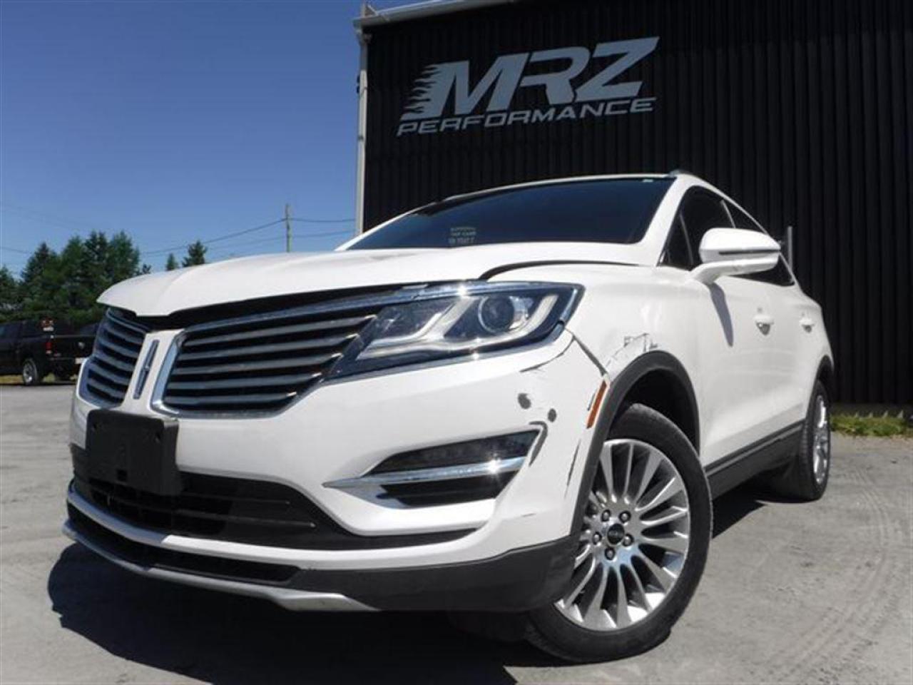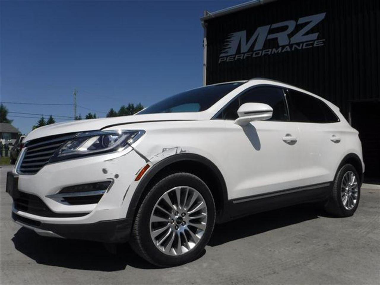 Lincoln MKC AWD 2.0L Ecoboost 2015 Blanc Perlé avec intérieur en cuir noir et bois laminé, choix de couleur sublime - ÉTAT NEUF- Véhicule haut de gamme sans pareil - Extrèmement recherché auprès de nos clients!! Très rare sur le marché!! Faites vite il ne restera pas longtemps disponible ça c'est sur!!! FULL FULL ÉQUIP!! Ce magnifique VUS ne laisse personne indifférent - * Visitez le WWW.MRZPERFORMANCE.COM pour tous les détails et beaucoup plus de photos! * - Puissant Moteur 4 cyl 2.0l Ecoboost avec transmission automatique 6 vitesses. Traction intégrale AWD - Très bas kilométrage!! - seulement 48 200 km! Modèle de VUS très luxueux et absolument tout équipé!! Intérieur en cuir noir - Sièges électriques,chauffants et climatisés - vrai bois laminé dans les portes et tableau de bord - Toit ouvrant panoramique - Système de navigation GPS avec grosse écran tactile - A/C bi-zone - Key less entry pad - MY LINCOLN TOUCH - Sirius - Système de son avec sub - Moniteur d'angle mort - Lecteur CD MP3 - Vitres électriques - Miroirs électriques et chauffants - Aileron - Mags 18'' avec Pneus Michelin en bon état!! - Vitres teintés - Fog lights - Grille avant chrome - Commandes au volant - Bluetooth - Caméra de recul - Sensor de recul - SYNC - Chauffe moteur - Push button (démarrage) - Prise 12V - 2X Clé intelligentes avec Démarreur distance OEM - Prise USB - Wiper intermittent - AWD - Cruise control - Volant chauffant - Télécommande porte garage - Conduit chauffage arrière - Commandes changement de vitesse au volant - Rack toit chrome - Lumières HID - Superbe finition bois - Hayon a commande électrique - Pédale ajustable - Sièges arrières chauffants - Cache bagage -etc!! Accidenté légèrement à l'avant ainsi que tres légèrement a l'arrière droit du véhicule. Ce superbe MKC est présenté tel que nous l'avons acheté, pas étiré et pas camouflé comme chez la compétition. Acheté en marche, run and drive. Aucun camouflage de dommages sur nos véhicules! Pour la réparation, Besoin des 2X Ailes avant, Hood, Support radiateur supérieur, Lumière avant droit, Bumper avant assemblé, Shutter, Fog droit, 2X Moulures d'ailes gauche, Porte arrière droit, Moulure d'aile arrière droit ainsi que de quelques plastiques de finitions. A réparé: Longeron avant droit (légèrement) et le Dog leg arrière droit (légèrement). Il y a 3X Mags d'égratignés (voir photo). Le Bumper arrière est égratigné. Tous les radiateurs semble pleins et intacts. La Table inférieur avant gauche à été changer lors de l'arrivée du véhicule sur place. Tous les ballons et ceintures sont intacts. Nous pouvons vous fournir les pièces nécessaires à la réparation de ce véhicule à prix très compétitif. Disponible tel quel ou réparé par des professionnels et inspecté par la SAAQ - Accident vraiment très facile à réparer avec toute la mécanique intacte et en parfait état de marche. Impact à eu lieu directement dans le mou vraiment léger! La plus belle accident possible! Ne manquer pas la chance de vous procurez ce véritable bijou! Faites vite modèle de VUS très populaire et surtout très rare sur le marché!! ÉTAT NEUF!! - *** Pas de camouflage de dommages sur nos véhicules! - * VGA CANADIEN / SALVAGE TITLE*- PLUSIEURS AUTRES VUS / MULTI-SEGMENT EN STOCK!!! Venez nous voir ou allez visiter notre site internet pour plus d'informations! *** Achetez en toute tranquillité car nous sommes membres AMVOQ! Automobiles MRZ, la référence dans l'accidenté léger au Québec! WE SPEAK ENGLISH PLEASE CONTACT US - MRZ IS THE VEHICLE CAR EXPORT AND IMPORT SPECIALIST - USA - AFRICA - MIDDLE EAST - EUROPE - MRZ EST LE SPÉCIALISTE EN EXPORTATION et IMPORTATION DE VÉHICULES - USA - AFRIQUE - EUROPE - PROCHE ORIENT Visitez-nous aussi sur Facebook! Merci!