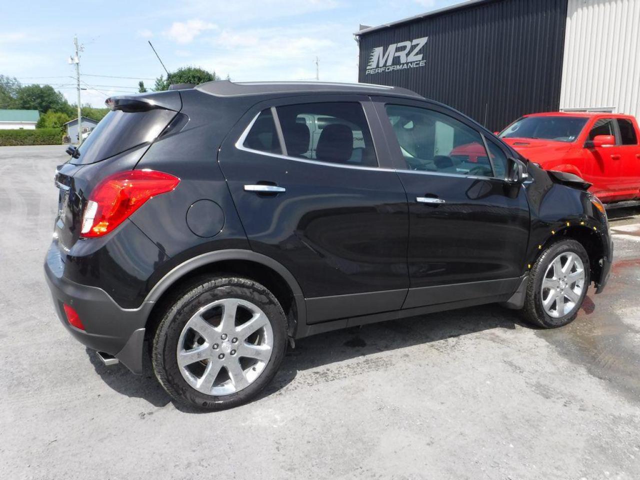 ** VÉHICULE EN RÉPARATION, DISPONIBLE SOUS PEU** DISPONIBILITÉ ET PRIX A CONFIRMER LORS DE LA MISE EN VENTE A L'ÉTAT RÉPARÉ ** Buick Encore Edition Premium AWD 2016 Noir métallique avec intérieur en cuir noir - Tout équipé avec le Cuir, Toit, GPS et j'en passe!! Flambant neuf avec Seulement 1904 km au compteur!! Impossible de trouver meilleur qualité prix chez la concurrence!! Beau petit vus de luxe à ne pas manquer. Faites vite ils s'envolent comme des petits pains chauds!! Encore une fois les plus beaux véhicules sont chez Automobiles Mrz!!! - * Visitez le WWW.MRZPERFORMANCE.COM pour tous les détails et beaucoup plus de photos! * - Beau Look! Moteur 4 Cyl ECOTEC de 1.4l turbo avec transmission automatique à 6 rapports, Vraiment très économique!! - Traction intégrale ( AWD ) - État neuf!! Seulement 1904 km! Full équip : Superbe Mags 18'' chrome avec Pneus Continental flambants neufs!! - Intérieur en cuir noir - Sièges électriques et chauffants - Caméra de recul - Volant chauffant - Toit ouvrant - Miroirs électriques et chauffants - Lecteur CD/MP3 - Commandes au volant - Prise 12V/120V - Prise USB - Bluetooth - Cruise control - Vitres électriques - Système audio BOSE avec sub - Fog lights - Intellink - Wiper intermittent - 1X Clé intelligente avec démarreur OEM - ONSTAR - Radio XM - A/C dual zones - Automatique avec mode manuel - Rack toit - Vitres teintées - Aileron - Blind spot alert - Système navigation GPS avec grosse écran tactile - Cache bagage - Collision alert - Lane départ - Garde boue - Sensor de recul - Chauffe moteur - ETC!! - Véhicule accidenté légèrement, réparé par des professionnels et inspecté par la SAAQ. LIVRÉ AVEC NOTRE NOUVEAU PROGRAMME DE GARANTIE - Nous sommes fier de notre travail et CE VÉHICULE SERA IMPECCABLE à tout point de vue!! - Reconstruit/Rebuilt title - Véhicule Canadien - CONDITION SHOWROOM!!! FLAMBANT NEUF AVEC SEULEMENT 1904 KM AU COMPTEUR!! Une véritable aubaine signée Automobiles Mrz!! Valeur neuf de plus de 40 000$ sur la feuille de vitre GM!! Faites-vite, ce véhicule ne restera pas longtemps dans notre cour!! ** PLUSIEURS AUTRES PETITS VUS ET CAMIONETTES EN STOCK!! Pour plus d'information allez visiter notre site internet! - N'hésitez pas à nous rejoindre avec vos questions. Automobiles MRZ, la référence dans l'accidenté léger au Québec! WE SPEAK ENGLISH PLEASE CONTACT US - MRZ IS THE VEHICLE CAR EXPORT - USA - AFRICA - MIDDLE EAST - EUROPE - MRZ EST LE SPÉCIALISTE EN EXPORTATION et IMPORTATION DE VÉHICULES - USA - AFRIQUE - EUROPE - PROCHE ORIENT Visitez-nous aussi sur Facebook! Merci!