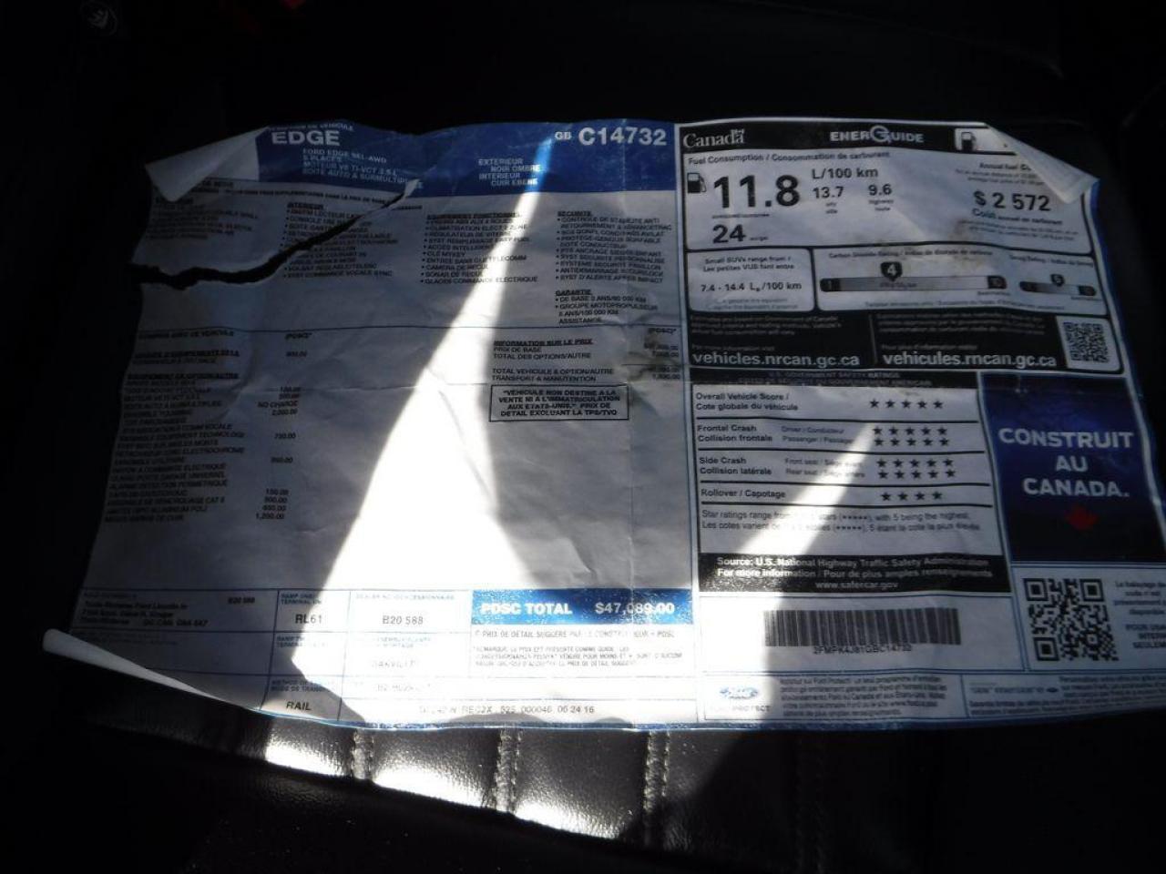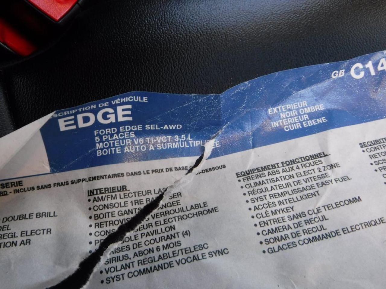 ** GARANTIE 3ans/60 000km sur l'ensemble du véhicule et 5ans/100 000km moto-propulseur à partir de la dms si remis à neuf chez MRZ ou 5ans/100 000km moto-propulseur seulement à partir de la dms si acheté endommagé ** ÉCONOMIE GARANTIE DE 10% et même plus dans la majorité des cas! ** Service inégalé - Financement avantageux - Échanges acceptés - On équivaut la garantie d'origine! ** C'est L'ENGAGEMENT MRZ - découvrez en tous les avantages au www.MRZPERFORMANCE.com et en magasin ** Ford Edge SEL V6 AWD 2016 Noir métallique avec intérieur en cuir noir. Modèle SEL FULL ÉQUIP!! avec le Cuir, GPS, Toit pano et encore plus!! - ÉTAT NEUF Seul. 12 100km!! Vraiment un superbe VUS à couper le souffle! Ne manquer pas l'occasion de vous procurez ce superbe Edge 2016!! ** Visitez le WWW.MRZPERFORMANCE.COM pour tous les détails et beaucoup plus de photos! ** - Moteur 6 Cyl de 3.5 L (285 hp ) avec transmission automatique à 6 rapports! - VUS 5 passagers - All Wheel Drive (AWD) - Très bas kilométrage!! ETAT NEUF - Seulement 12 100 km! - Modèle SEL Full équip!! : Mags 18'' avec Pneus d'hiver comme neufs!! - Intérieur en cuir noir - Sièges électriques et chauffants - Commandes au volant - Bluetooth - Prise USB - Miroirs chauffant et électrique - Radio Sirius - SYNC - Caméra de recul - Toit panoramique - Système de navigation GPS avec grosse écran tactile - Tout électrique - Cruise control - Vitres teintées - Key less entry pad - Sensor de recul - Lecteur CD/MP3 - A/C bi-zones - MYFORD TOUCH - Automatique - Aileron - Vitres électriques - 1 Clé intelligente avec démarreur OEM + 1X Clé mécanique - Wiper intermittent - Push Button (démarrage smart key) - Prise 12V/110V - Blind spot alert - Système changement vitesse au volant - Tail light au LED - My key - Fog lights - Hayon à commandes électrique - Télécommande porte garage - Tapis caoutchouc d'origine - Towing package - ETC!! Accidenté léger sur le coté droit seulement du véhicule. Vraiment un très bel accident facile a réparé, juste de la tôle! Ce magnifique Edge est présenté tel que nous l'avons acheté, pas étiré et pas camouflé comme chez la compétition. Acheté en marche run and drive, aucun impact dans les roues. Aucun camouflage de dommages sur nos véhicules -- Pour la réparation, Besoin de la Porte avant droit (ou a réparé), Miroir droit, Vitre toit ouvrant (partie avant), Aile avant droit, Hood, Réserve antigel, Lumière avant droit, Fog droit, Couvert bumper avant supérieur (ou a réparé), Couvert bumper avant inférieur, Quater droit, Tail light droit, Porte arrière droit et de quelques plastiques de finitions. A réparé: Poteau de toit droit (léger), Poteau parebrise droit, Porte avant gauche (petite bossette), Longeron supérieur droit (ou a changé) et le Support radiateur supérieur (très léger). Quelques grafignes sur les trims de dash (voir photo). Les Mags sont grafignés légèrement (à polir). La Grille avant à un léger dommage (voir photo).Toute la mécanique est intact et en parfaite état de marche. Tous les Ballons et les Ceintures sont intacts. Les Radiateurs sont à vérifier mais semble bon. Le Parebrise à été changé (mais pas collé) pour mettre l'habitacle à l'abri des intempéries. Nous pouvons vous fournir les pièces nécessaires à la réparation de ce véhicule à prix très compétitif. Disponible tel quel ou réparé par des professionnels et inspecté par la SAAQ - Très beau Edge absolument tout équipé!! Faites vite, il ne restera pas longtemps disponible ça je vous le garantie!! ** VGA QUÉBEC / SALVAGE TITLE ** VALEUR À NEUF DE PLUS DE 47 000$ - À QUI LA CHANCE!!! ÉTAT NEUF SEUL. 12 100KM!!! IMPOSSIBLE DE TROUVER MIEUX CHEZ LA COMPÉTITION - NOUS SOMMES LE SPÉCIALISTE EN EDGE ACCIDENTÉ LÉGER - Faites vites!! PLUSIEURS AUTRES EDGE ET AUTRES VUS EN STOCK!!! Venez-nous voir ou allez visiter notre site internet pour plus d'informations! - N'hésitez pas à nous rejoindre avec vos questions! Automobiles MRZ, la référence dans l'accidenté léger au Québec! WE SPEAK ENGLISH PLEASE CONTACT US - MRZ IS THE VEHICLE CAR EXPORT AND IMPORT SPECIALIST - USA - AFRICA - MIDDLE EAST - EUROPE - MRZ EST LE SPÉCIALISTE EN EXPORTATION et IMPORTATION DE VÉHICULES - USA - AFRIQUE - EUROPE - PROCHE ORIENT - Visitez-nous aussi sur Facebook - Merci!