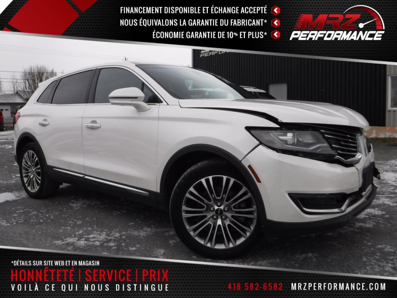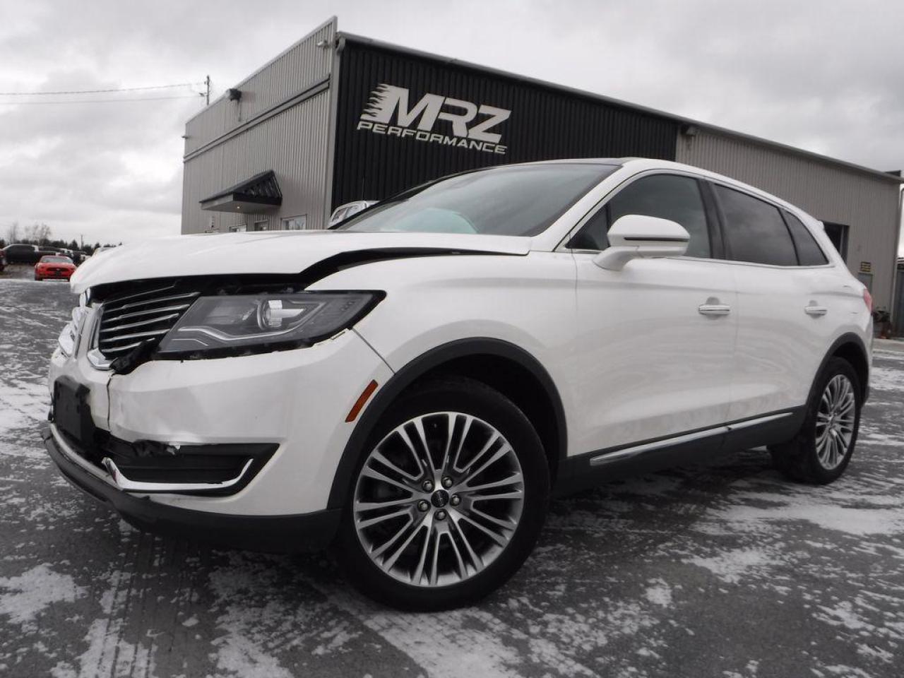Lincoln MKX Reserve AWD 2016 Blanc métallique avec intérieur en cuir brun, un des plus beau choix de couleur disponible. Nouveau modèle de MKX tout à fais sublime!! Luxe et Raffinement au rendez vous!! Très rare sur le marché de l'accidenté. Faites vite, il ne restera pas disponible longtemps je vous le garantie!! Extra clean! - * Visitez le WWW.MRZPERFORMANCE.COM pour tous les détails et beaucoup plus de photos! * - Moteur V6 3.7l très puissant de 305HP avec transmission automatique. Traction intégrale AWD - Comme neuf - Très bas kilométrage, seulement 54 100km! Modèle de VUS très classe et absolument tout équipé!! Intérieur en cuir brun (qui donne un look tout simplement sublime) - Sièges électriques, chauffants et climatisés - Toit ouvrant panoramique - Système de navigation GPS avec grosse écran tactile - A/C bi-zone - Key less entry pad - MY LINCOLN TOUCH - Sirius - Système audio avec sub - Moniteur d'angle mort - Lecteur CD/MP3 - Vitres électriques - Shifter au volant - Miroirs électriques et chauffants - Aileron - Superbe Mags 20'' avec Pneus Hankook - Vitres teintés - Fog lights - SYNC - Commandes au volant - Bluetooth - Caméra de recul - Sièges arrières chauffants - Volant chauffant - AWD - 2X Clés intelligente avec Démarreur OEM - Hayon a ouverture électrique - Cruise - Wiper intermittent - Push to start (démarrage) - Prise 12V - Prise USB - Télécommande porte garage - Lumière XÉNON - Sensor de recul - Miroirs power fold - Système d'aide au stationnement - etc!! Accidenté légèrement à l'avant seulement du véhicule. Impact a eu lieu directement dans le mou en avant. Pour la réparation, Besoin du Hood, Résonateur filtre air, Grille avant, Bumper avant assemblé, Shutter, Condenseur, Bracket lumières (a vérifier) ainsi que de quelques plastiques de finitions. A réparé: 2X Ailes avant, 2X Lumières avant (ou a changés au goût du client, ballast ok) et le Support radiateur (a voir avec client). Le Radiateur et les Fans sont à vérifiés. Le Bumper arrière est grafigné légèrement (voir photo). Le Ballon du volant, Ballon genou et la Ceinture avant gauche sont déployées (très abordable chez le dealer). Tous les autres ballons et ceintures sont intacts. Pas de gros frame à faire sur ce véhicule (toujours mieux de vérifier tout de même). Pas d'impact subit dans les roues donc suspension et direction en parfaite état. Nous pouvons vous fournir les pièces nécessaires à la réparation de ce véhicule à prix très compétitif. Disponible tel quel ou réparé par des professionnels et inspecté par la SAAQ - Ne manquer pas la chance de vous procurez ce superbe MKX nouveau modèle pour une fraction du prix d'un usagé!! Une véritable perle à ne pas manquer!! ÉTAT NEUF!! Impossible d'avoir meilleur qualité prix chez la compétition!! Venez le voir il en vaut le détour!! - VGA CANADIEN / SALVAGE TITLE - PLUSIEURS AUTRES VUS / MULTI-SEGMENT EN STOCK!!! Venez nous voir ou allez visiter notre site internet pour plus d'informations! *** Achetez en toute tranquillité car nous sommes membres AMVOQ! Automobiles MRZ, la référence dans l'accidenté léger au Québec! WE SPEAK ENGLISH PLEASE CONTACT US - MRZ IS THE VEHICLE CAR EXPORT AND IMPORT SPECIALIST - USA - AFRICA - MIDDLE EAST - EUROPE - MRZ EST LE SPÉCIALISTE EN EXPORTATION et IMPORTATION DE VÉHICULES - USA - AFRIQUE - EUROPE - PROCHE ORIENT Visitez-nous aussi sur Facebook. Merci!