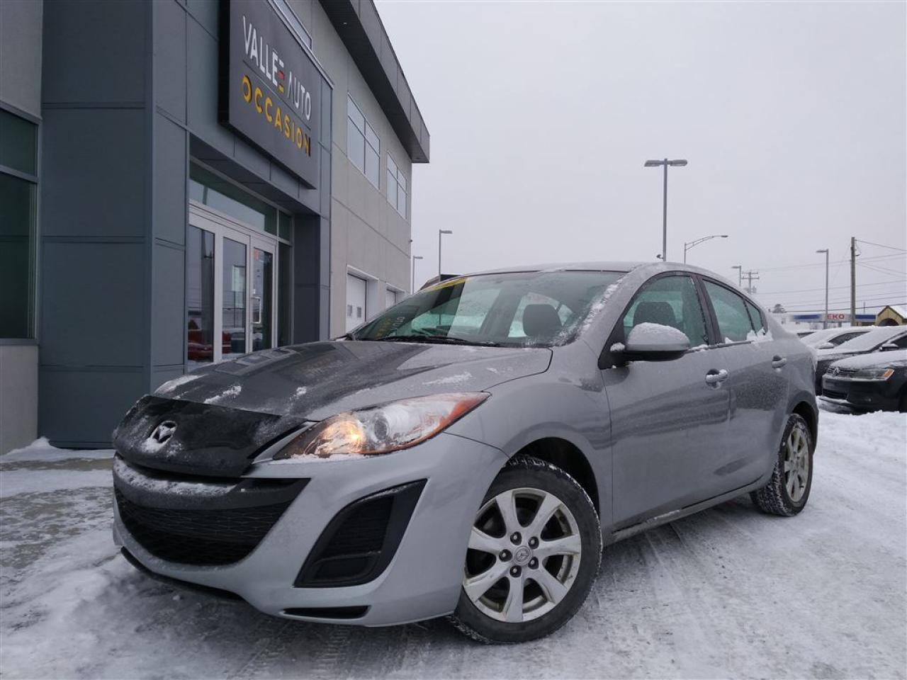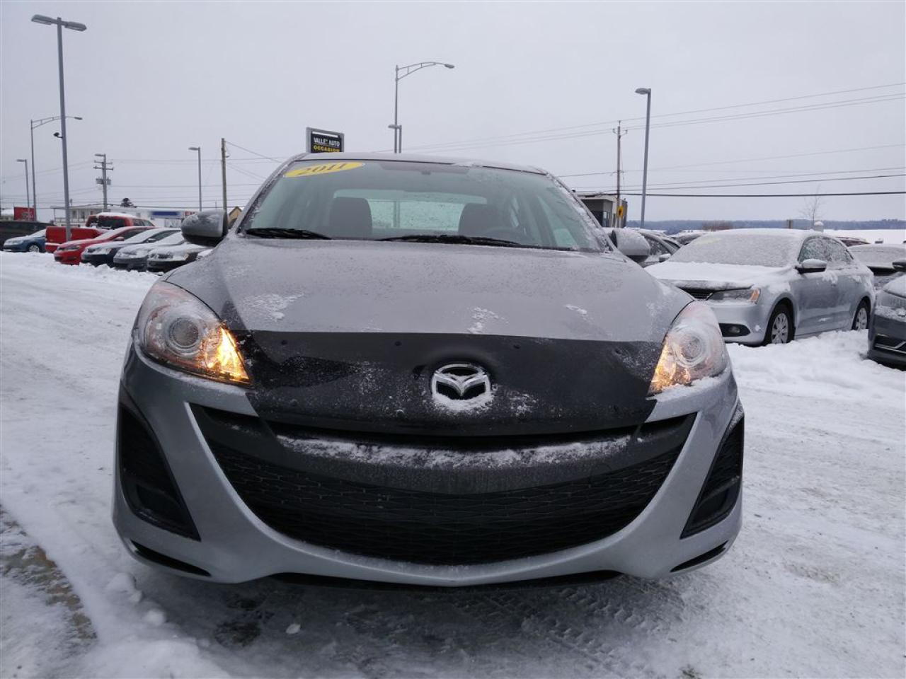 AUCUN FRAIS CACHÉ, AUCUNE SURPRISE, VOUS PAYEZ LE PRIX AFFICHÉ!!!!! MAZDA 3 GX 2011, AUTOMATIQUE**UN SEUL PROPRIÉTAIRE, JAMAIS ACCIDENTÉ(RAPPORT CARPROOF À L'APPUI). A/C ,Mags 16'',volant ajustable et télescopique, lecteur CD+radio am/fm, vitres et portes électriques et bien plus!!!! Achetez en toute tranquillité d'esprit. Livraison partout en province. Financement à taux avantageux sur place!