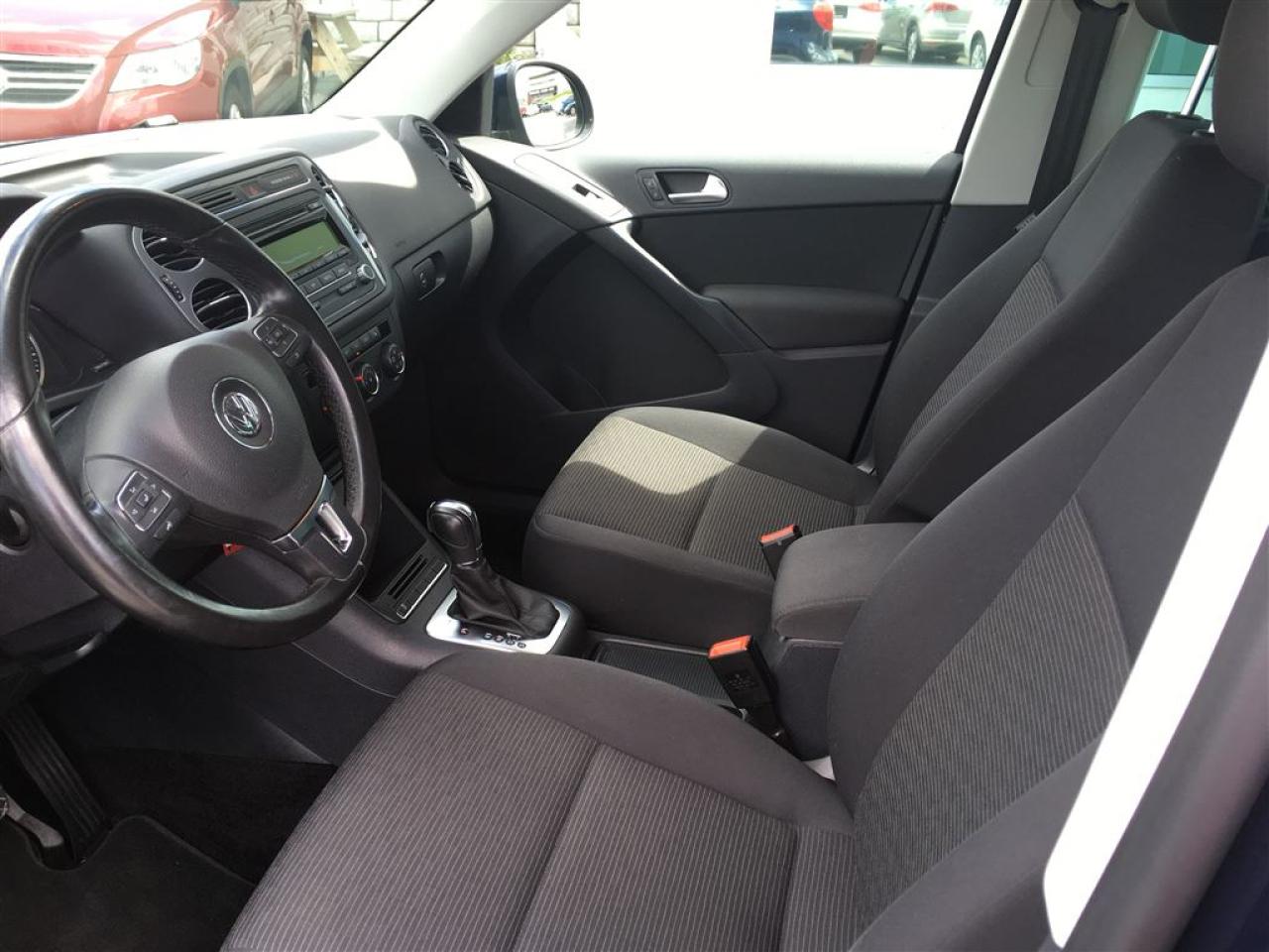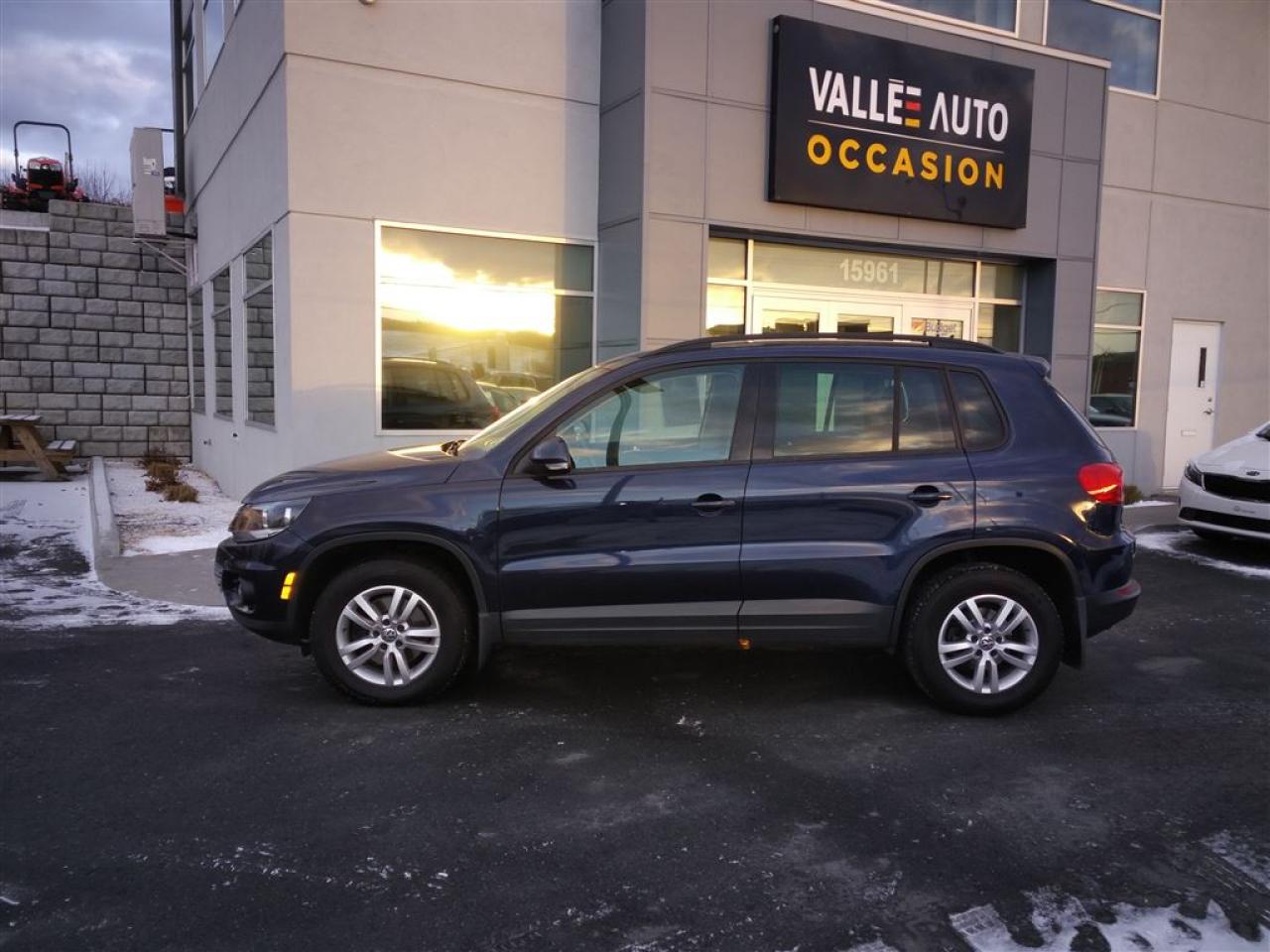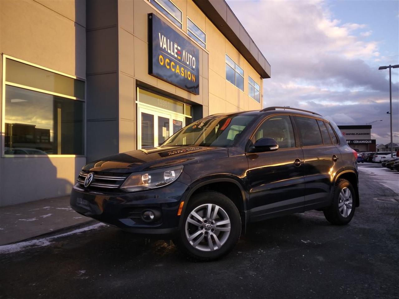 AUCUN FRAIS CACHÉ, AUCUNE SURPRISE, VOUS PAYEZ LE PRIX AFFICHÉ!!!! VOLKSWAGEN TIGUAN TL+, 2014, AUTOMATIQUE**AWD, UN SEUL PROPRIÉTAIRE!!** A/C, mags 16, sièges chauffants, cruise control, bluetooth, vitres et portes électriques, volant ajustable et télescopique multi-fonctions, lecteur CD+radio am/fm, ordinateur de bord, phares à brume, vitres teintées, prise Ipod, et bien plus!!! Nous sommes concessionnaire Volkswagen depuis 1959 et tous nos véhicules sont inspectés ET réparés par nos techniciens formés par Volkswagen avant la mise en vente. Le véhicule est éligible à une garantie certifié Pur Volkswagen de 2 ans ou 40,000 km incluant l'assistance routière. Achetez en toute tranquillité d'esprit. Livraison partout en province. Financement à taux avantageux sur place!