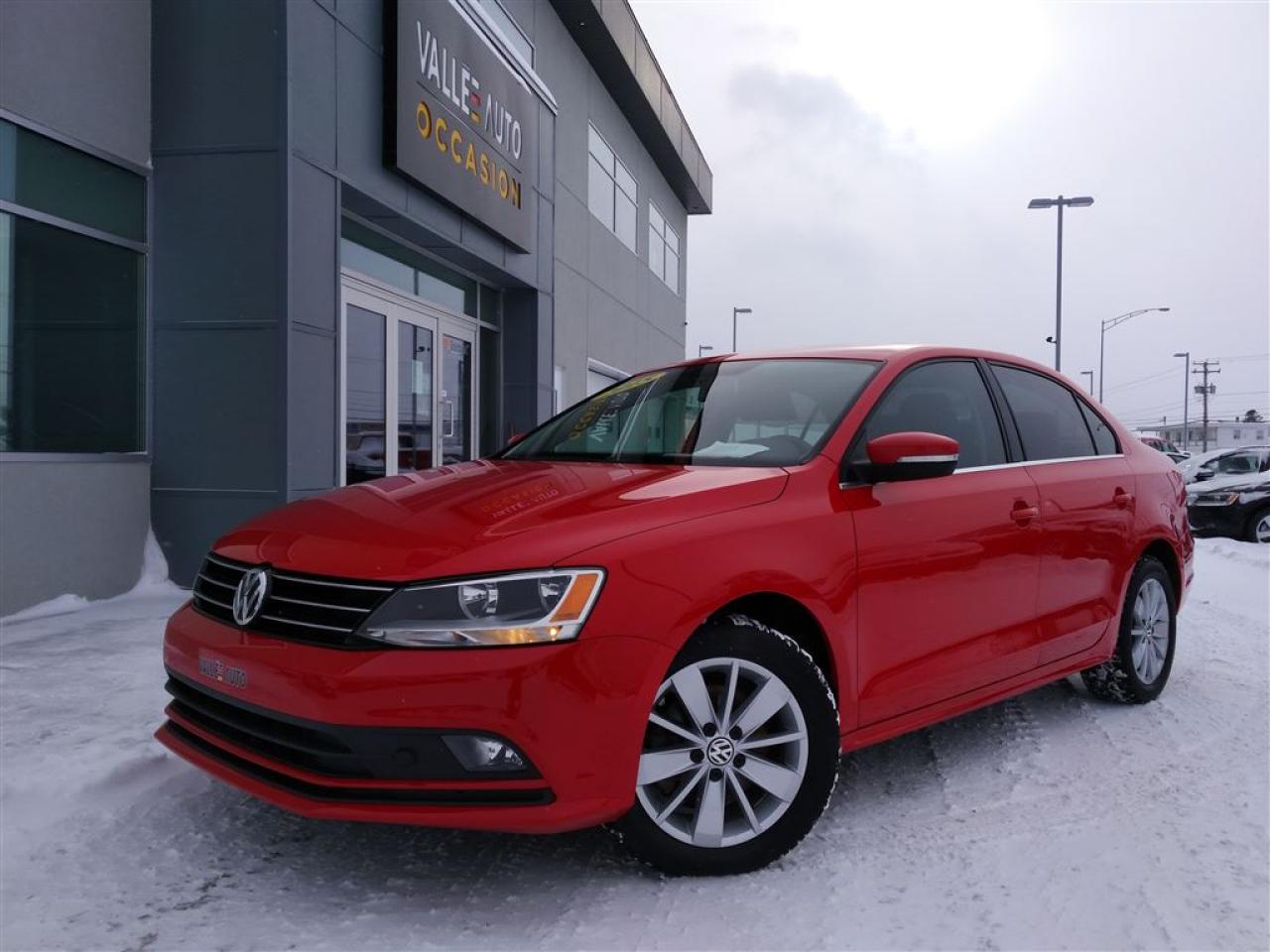 AUCUN FRAIS CACHÉ, AUCUNE SURPRISE VOUS PAYEZ LE PRIX AFFICHÉ!!!!!!! VOLKSWAGEN JETTA TRENDLINE TDI, 2015, AUTOMATIQUE**JAMAIS ACCIDENTÉ(RAPPORT CARPROOF À L'APPUI). A/C ,mags 16'' Vitres teintées, cruise control, Bluetooth, caméra de recul, écran tactile, phares à brume, vitres et portes électriques, ordinateur de bord, volant ajustable et télescopique multi-fonctions, radio satellite+am/fm, lecteur CD, toit ouvrant et bien plus!!! Nous sommes concessionnaire Volkswagen depuis 1959 et tous nos véhicules sont inspectés ET réparés par nos techniciens formés par Volkswagen avant la mise en vente. Le véhicule est éligible à une garantie certifié Pur Volkswagen de 2 ans ou 40,000 km incluant l'assistance routière. Achetez en toute tranquillité d'esprit. Livraison partout en province. Financement à taux avantageux sur place!