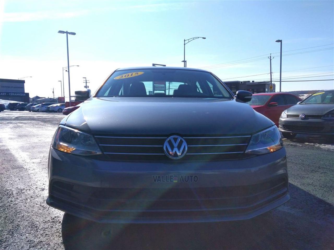 AUCUN FRAIS CACHÉ, AUCUNE SURPRISE, VOUS PAYEZ LE PRIX AFFICHÉ!!!!! VOLKSWAGEN JETTA TL+, 2015, AUTOMATIQUE**UN SEUL PROPRIÉTAIRE, JAMAIS ACCIDENTÉ(RAPPORT CARPROOF À L'APPUI). A/C, sièges chauffants, cruise control, vitres et portes électriques, volant ajustable et télescopique multi-fonctions, ordinateur de bord, radio am/fm+satellite, lecteur CD, écran tactile, caméra de recul, prise Ipod, et bien plus!!!!! Nous sommes concessionnaire Volkswagen depuis 1959 et tous nos véhicules sont inspectés ET réparés par nos techniciens formés par Volkswagen avant la mise en vente. Le véhicule est éligible à une garantie certifié Pur Volkswagen de 2 ans ou 40,000 km incluant l'assistance routière. Achetez en toute tranquillité d'esprit. Livraison partout en province. Financement à taux avantageux sur place!