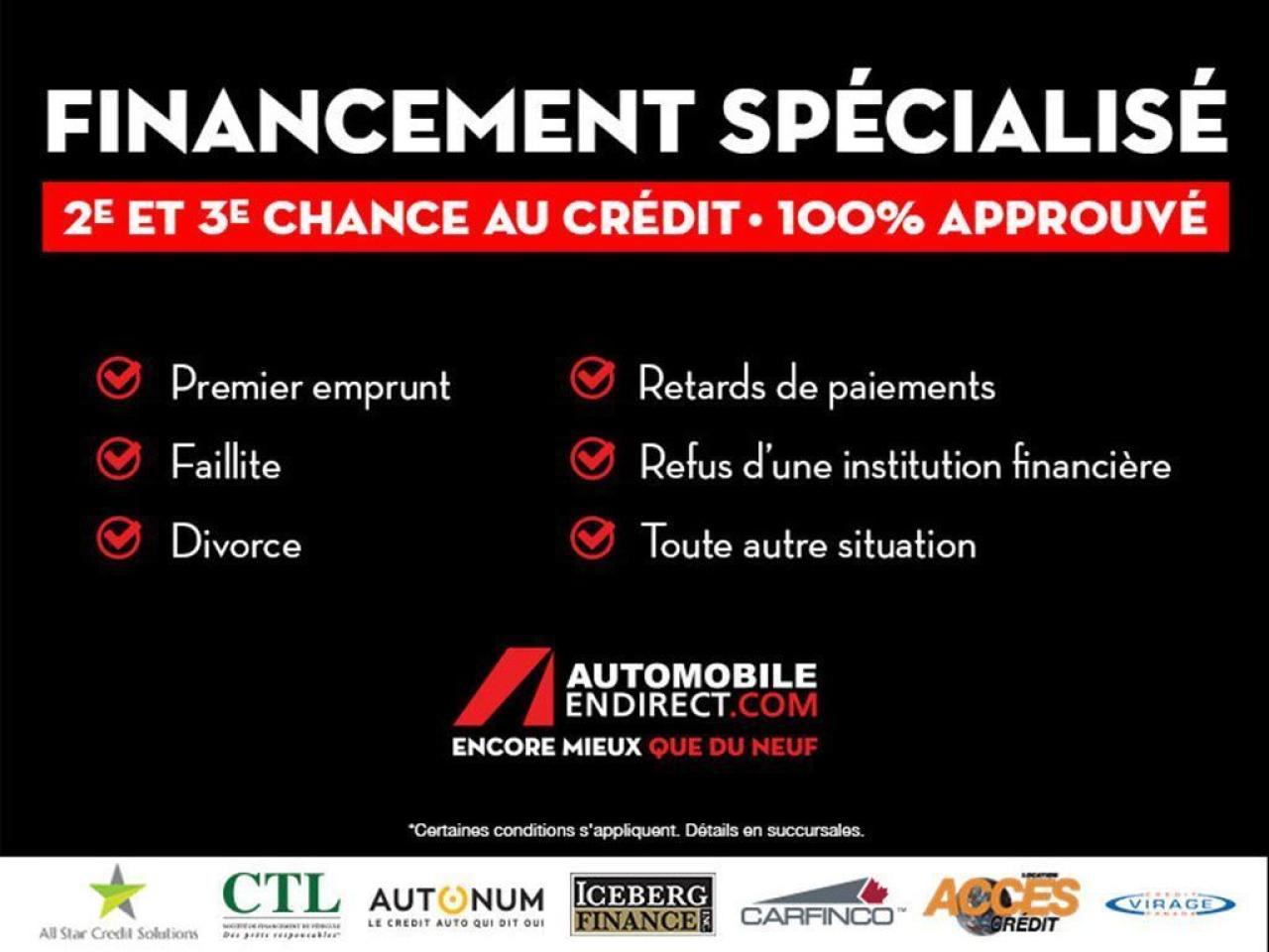 AUDIO SUR LE VOLANT BLUETOOTH BALANCE DE GARANTIE GROSSE ECRAN PUSH BUTTON SIEGES CHAUFFANTS VERROUILLAGE SANS CLE CAMERA DE RECUL TOUTE EQUIPEE ECONOMIQUE 1200 véhicules Livraison 24h Financement facile à partir de 0.9% Ouvert 7 jours / 5 soirs Automobile en Direct.com c'est le plus gros inventaire de véhicules d'occasion, avec toutes les marques et tous les modèles offert au meilleur prix. C'est aussi profiter de nombreux avantages exclusifs et d'une gamme complète de services offerts en un seul endroit: Livraison rapide en moins de 24h. Financement facile sur place à partir de 0.9%. 2ième et 3ième chance au crédit 100% approuvée. Allocation incroyable pour vente et échange de véhicule sur place. Au delà des véhicules, Automobile en Direct.com, c'est une équipe de 150 passionnés qui vous accueille dans une ambiance sincère, amicale et courtoise. Il n'y a pas de fla-fla ou de pression inutile. Vous vendez votre véhicule? Nous achetons au meilleur prix même si vous n'achetez pas avec nous. Passez nous voir en magasin ou prenez rendez-vous pour un essai routier. Faites vite. Chaque véhicule est unique. Ce véhicule ne correspond pas exactement à ce que vous recherchez? Visitez Automobile en Direct.com, nous avons accès à toutes les marques et tous les modèles au meilleur prix garanti. Automobile en Direct.com Encore mieux que du neuf. Automobile en Direct.com is the largest used car inventory with all makes and models offered at the lowest price. They also offer access to exclusive offers and services in one location: Fast delivery in less than 24 hours. Easy financing starting at 0.9%. 2nd and 3rd credit chance 100% approved. Best value offered for your trade-in. Beyond the vehicles, Automobile en Direct.com is a team of 150 pasionnate people that welcome you in a simple, friendly and nice atmosphere. There is no run-around or pressure when you deal with us. Are you selling your vehicle? We buy at the best price, even if you don't buy with us. Visit us in store or make an appointment for a test drive. Hurry hup, every vehicle is unique. This vehicle does not match exactly with what you want? Visit us at Automobile en Direct.com, we have access to all makes and vehicle at the lowest price guaranteed Automobile en Direct.com Even better than new.