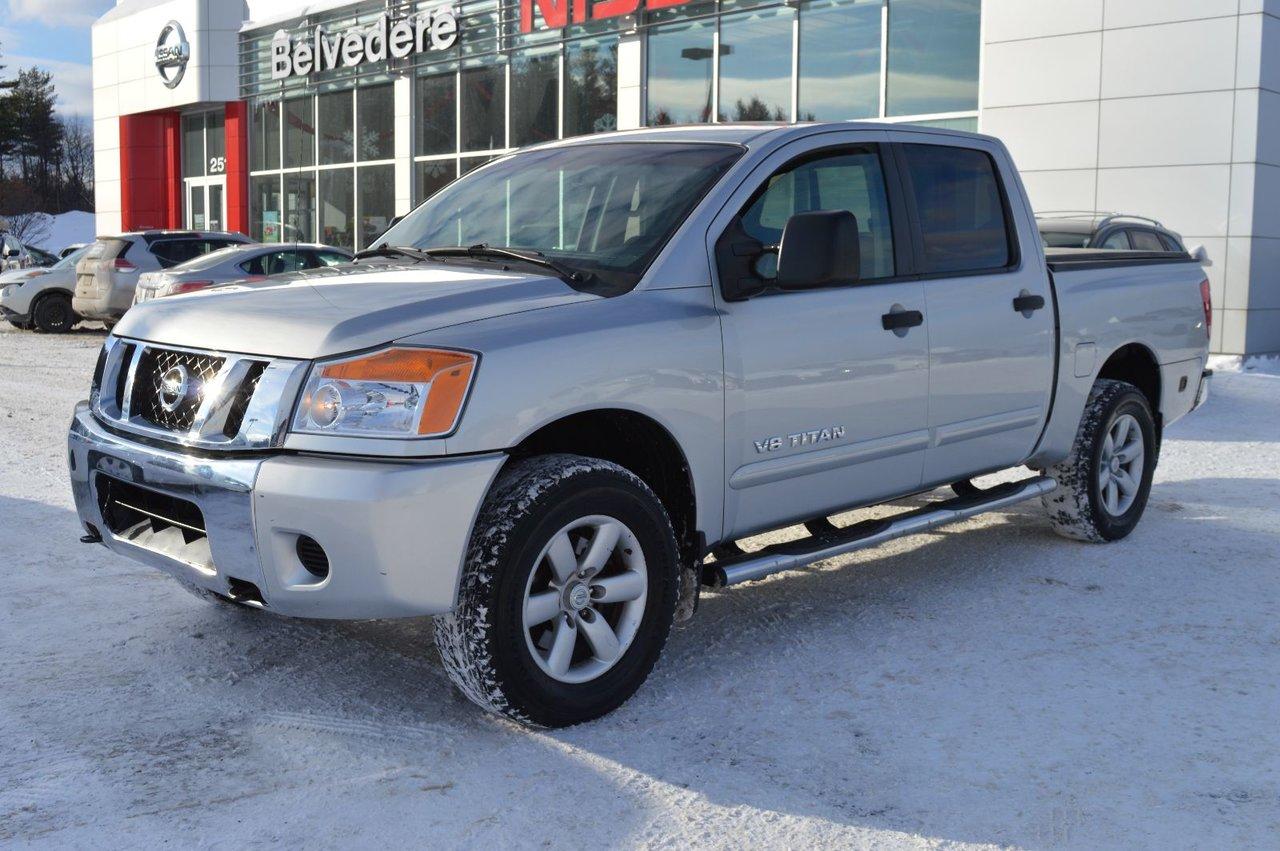Nissan Titan SV 4X4 CREWCAB 5.3 LITRES MARCHE PIED FINANCEMENT DISPONIBLE SUR PLACE 2011Régulateur de vitesse, Essuie-glaces intermittents, Anti-démarreur, Freins ABS, Contrôle de stabilité, Coussin gonflable conducteur, Coussins gonflables latéraux, Lecteur CD, Portes électriques, Tachymètre, Vitres électriques, Air climatisé, Commandes audio au volant, Lampes de lecture arrière, Volant ajustable, Marchepieds, Attelage remorque, Radio AM/FM, Direction assistée, Télédéverrouillage, Coussins gonflables arrière pour la tête, Freins à disque, Rétroviseurs électriques, Jantes en alliage, Antipatinage, Verrous de sécurité pour enfants, Système de surveillance de la pression des pneus, Roue de secours - Temporaire, Climatisation