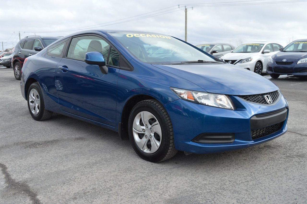 Honda Civic LX COUPE MANUELLE AIR CLIMATIS? FINANCEMENT DISPONIBLE SUR PLACE 2013Régulateur de vitesse, Essuie-glaces intermittents, Anti-démarreur, Freins ABS, Contrôle de stabilité, Coussin gonflable conducteur, Coussins gonflables latéraux, Lecteur CD, Lecteur MP3, Portes électriques, Tachymètre, Vitres électriques, Air climatisé, Lampes de lecture arrière, Sièges arrières rabattables, Volant ajustable, Enjoliveurs, Tapis protecteurs, Radio AM/FM, Phares automatiques, Rétroviseur électrique, Direction assistée, Télédéverrouillage, Rétroviseurs chauffants, Banquette arrière divisé, Coussins gonflables arrière pour la tête, Sièges tissu, Freins à disque, Sièges chauffants - Avant, Antipatinage, Sièges baquets, Prise Auxiliaire, Technologie Bluetooth intégrée, Climatisation