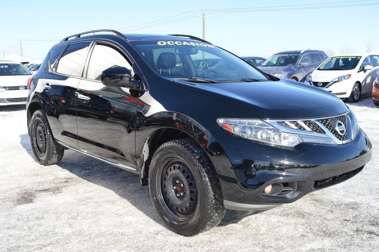Nissan Murano SL AWD CUIR TOIT OUVRANT D?MARREUR ? DISTANCE FINANCEMENT ? PARTIR DE 0.9% 2013Régulateur de vitesse, Essuie-glaces intermittents, Essuie-glace arrière, Anti-démarreur, Freins ABS, Contrôle de stabilité, Coussin gonflable conducteur, Coussins gonflables latéraux, Démarreur à distance, Lecteur CD, Chargeur de CD, Lecteur MP3, Portes électriques, Sièges électriques, Tachymètre, Vitres électriques, Air climatisé, Intérieur en cuir, Commandes audio au volant, Sièges arrières rabattables, Sièges chauffants, Volant ajustable, Ordinateur de bord, Caméra de recul, Radio AM/FM, Rétroviseur électrique, Direction assistée, Télédéverrouillage, Rétroviseurs chauffants, Banquette arrière divisé, Coussins gonflables arrière pour la tête, Siège conducteur - soutien lombaire, Démarrage sans clé, Freins à disque, Rétroviseurs électriques, Jantes en alliage, Antipatinage, Phares antibrouillards, Système de surveillance de la pression des pneus, Sièges baquets, Prise Auxiliaire, Port USB, Climatisation arrière, Aluminium, Climatisation