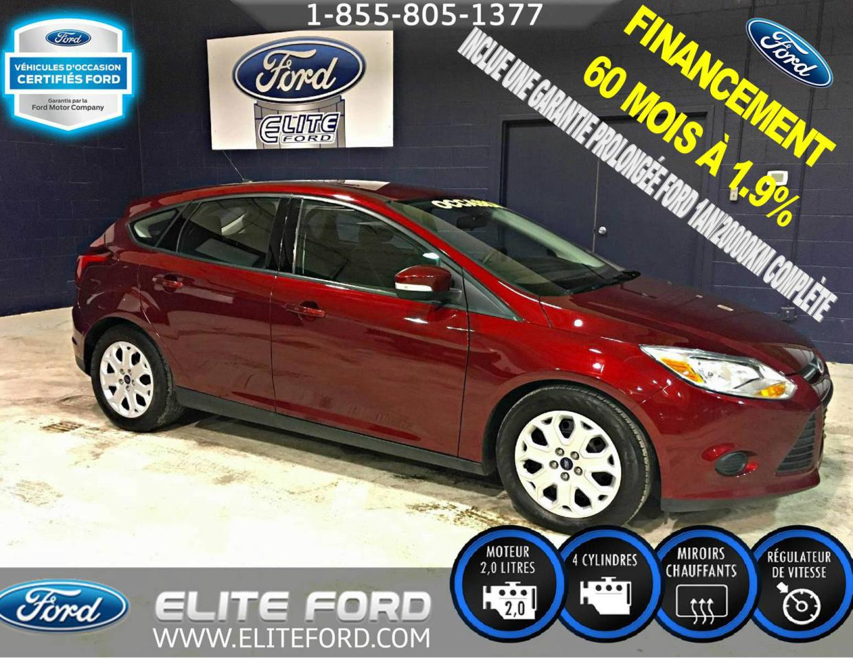 SUPERBE FORD FOCUS SE H/B 2014, MOTEUR 2.0L, TRANSMISSION AUTOMATIQUE À 6 VITESSES, GRUPE ÉLECTRIQUE, MIROIRS CHAUFFANTS, RÉGULATEUR DE VITESSE, BLUETOOTH SYNC, A/C, RADIO AM/FM/CD, VÉHICULE IMPECCABLE...ÉLITE FORD DISPOSE D'UN VASTE GAMME DE VOITURES, DE CAMIONS ET DE VUS D'OCCASION, NOUS COMPTONS PLUS DE 70 VÉHICULES À NOTRE INVENTAIRE. LIVRAISON RAPIDE, FINANCEMENT DISPONIBLE, NOTRE CONCESSION EST FACILE D'ACCÈS POUR LES GENS DE SAINT-JÉROME, SAINTE-AGATHE, LACHUTE, BLANVILLE, SAINTE-THÉRÈSE ET LAVAL. ÉLITE FORD VOUS GARANTIE UN SERVICE ADAPTÉ À VOS BESOINS ET DES REPRÉSENTANTS SANS PRESSION. TOUT NOS VÉHICULE ON ÉTÉ INSPECTÉ ET SONT VENDUS AVEC UNE GARANTIE DU MANUFACTURIER ET UNE PROLONGATION EST TOUJOURS DISPONIBLE. NOUS VOUS GARANTISSONS LE MEILLEUR PRIX POUR VOTRE VÉHICULE D'ÉCHANGE. * Certaines conditions s'appliquent détail en succursale.