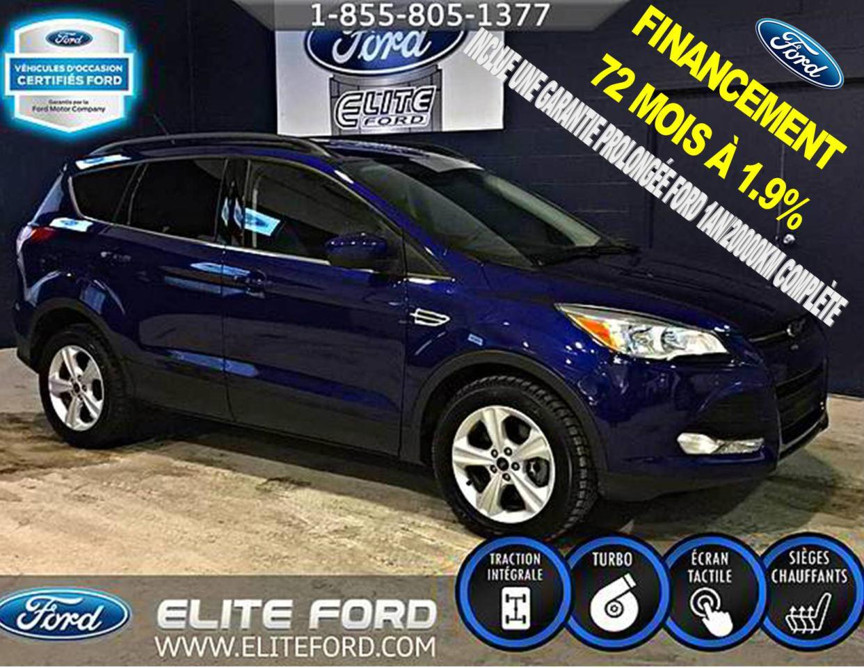 FORD ESCAPE SE 2016, AWD, MOTEUR 2.0L ÉCOBOOST, TRANSMISSION AUTOMATIQUE À 6 VITESSES, GROUPE ÉLECTRIQUE, MAGS DE 17 POUCES, MIROIRS CHAUFFANTS, SIÈGES CHAUFFANTS, ÉCRAN TACTILE MY FORD TOUCH, CAMÉRA DE RECUL AVEC RADAR, RÉGULATEUR DE VITESSE, BLUETOOTH SYNC. *FINANCEMENT À PARTIR DE 1.9%*, PROGRAMME VÉHICULE d OCCASION CERTIFIÉ DISPONIBLE. ÉLITE FORD DISPOSE d UN VASTE GAMME DE VOITURES, DE CAMIONS ET DE VUS d OCCASION, NOUS COMPTONS PLUS DE 70 VÉHICULES À NOTRE INVENTAIRE. LIVRAISON RAPIDE, FINANCEMENT DISPONIBLE, NOTRE CONCESSION EST FACILE D ACCÈS POUR LES GENS DE SAINT-JÉROME, SAINTE-AGATHE, LACHUTE, BLANVILLE, SAINTE-THÉRÈSE ET LAVAL. ÉLITE FORD VOUS GARANTIE UN SERVICE ADAPTÉ À VOS BESOINS ET DES REPRÉSENTANTS SANS PRESSION. TOUT NOS VÉHICULE ON ÉTÉ INSPECTÉ ET SONT VENDUS AVEC UNE GARANTIE DU MANUFACTURIER ET UNE PROLONGATION EST TOUJOURS DISPONIBLE. NOUS VOUS GARANTISSONS LE MEILLEUR PRIX POUR VOTRE VÉHICULE D ÉCHANGE.