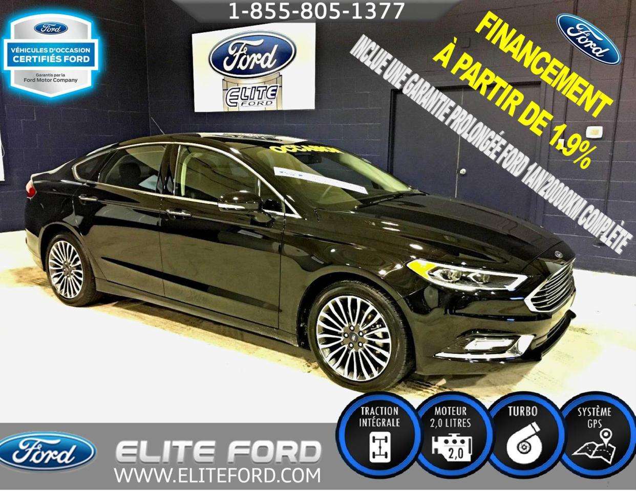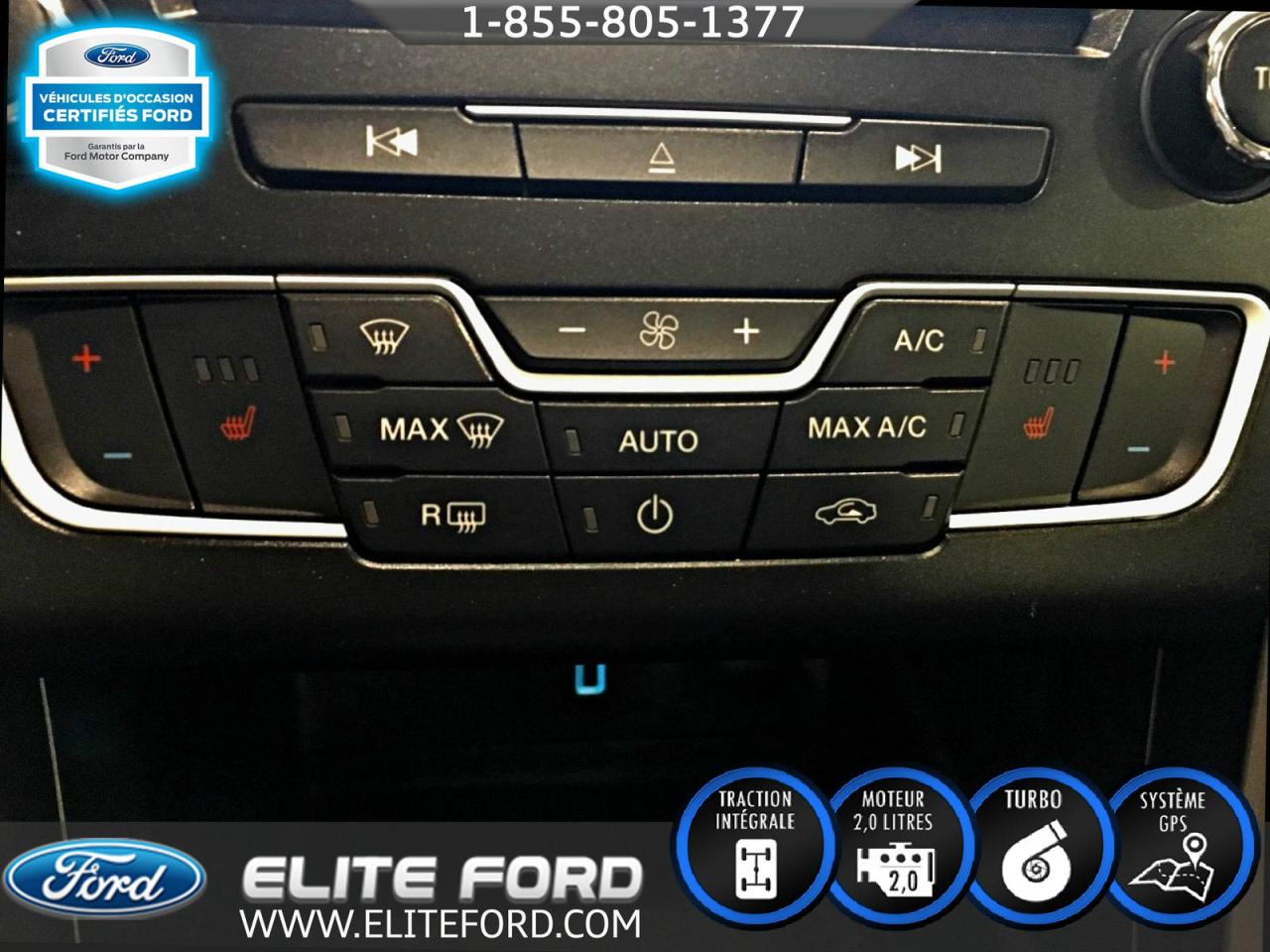 FORD FUSION SE 2017, AWD, MOTEUR 2.0L, TRANSMISSION AUTOMATIQUE À 6 VITESSES, ÉCRAN TACTILE MY FORD TOUCH AVEC SYSTÈME DE NAVIGATION, SIÈGE EN CUIR CHAUFFANTS ET À RÉGLAGE ÉLECTRIQUE, TOIT OUVRANT, CAMÉRA DE RECUL, BLUETOOTH SYNC, SYSTÈME DE CLIMATISATION INDÉPENDANTE, *FINANCEMENT À PARTIR DE 1.9%*, PROGRAMME VÉHICULE d OCCASION CERTIFIÉ DISPONIBLE. ÉLITE FORD DISPOSE D UN VASTE GAMME DE VOITURES, DE CAMIONS ET DE VUS D OCCASION, NOUS COMPTONS PLUS DE 70 VÉHICULES À NOTRE INVENTAIRE. LIVRAISON RAPIDE, FINANCEMENT DISPONIBLE, NOTRE CONCESSION EST FACILE d ACCÈS POUR LES GENS DE SAINT-JÉROME, SAINTE-AGATHE, LACHUTE, BLANVILLE, SAINTE-THÉRÈSE ET LAVAL. ÉLITE FORD VOUS GARANTIE UN SERVICE ADAPTÉ À VOS BESOINS ET DES REPRÉSENTANTS SANS PRESSION. TOUT NOS VÉHICULE ON ÉTÉ INSPECTÉ ET SONT VENDUS AVEC UNE GARANTIE DU MANUFACTURIER ET UNE PROLONGATION EST TOUJOURS DISPONIBLE. NOUS VOUS GARANTISSONS LE MEILLEUR PRIX POUR VOTRE VÉHICULE d ÉCHANGE.