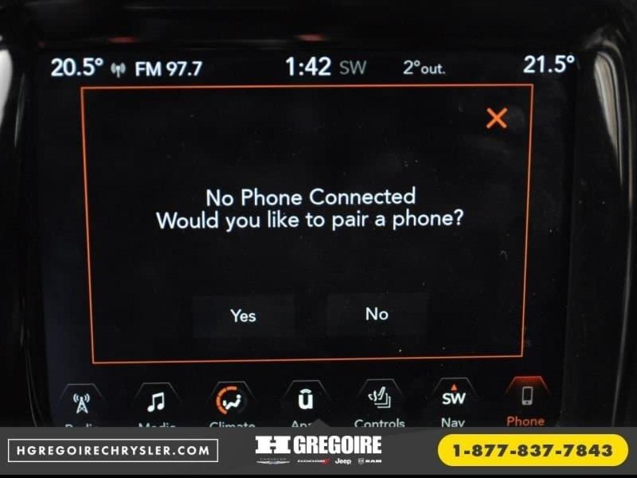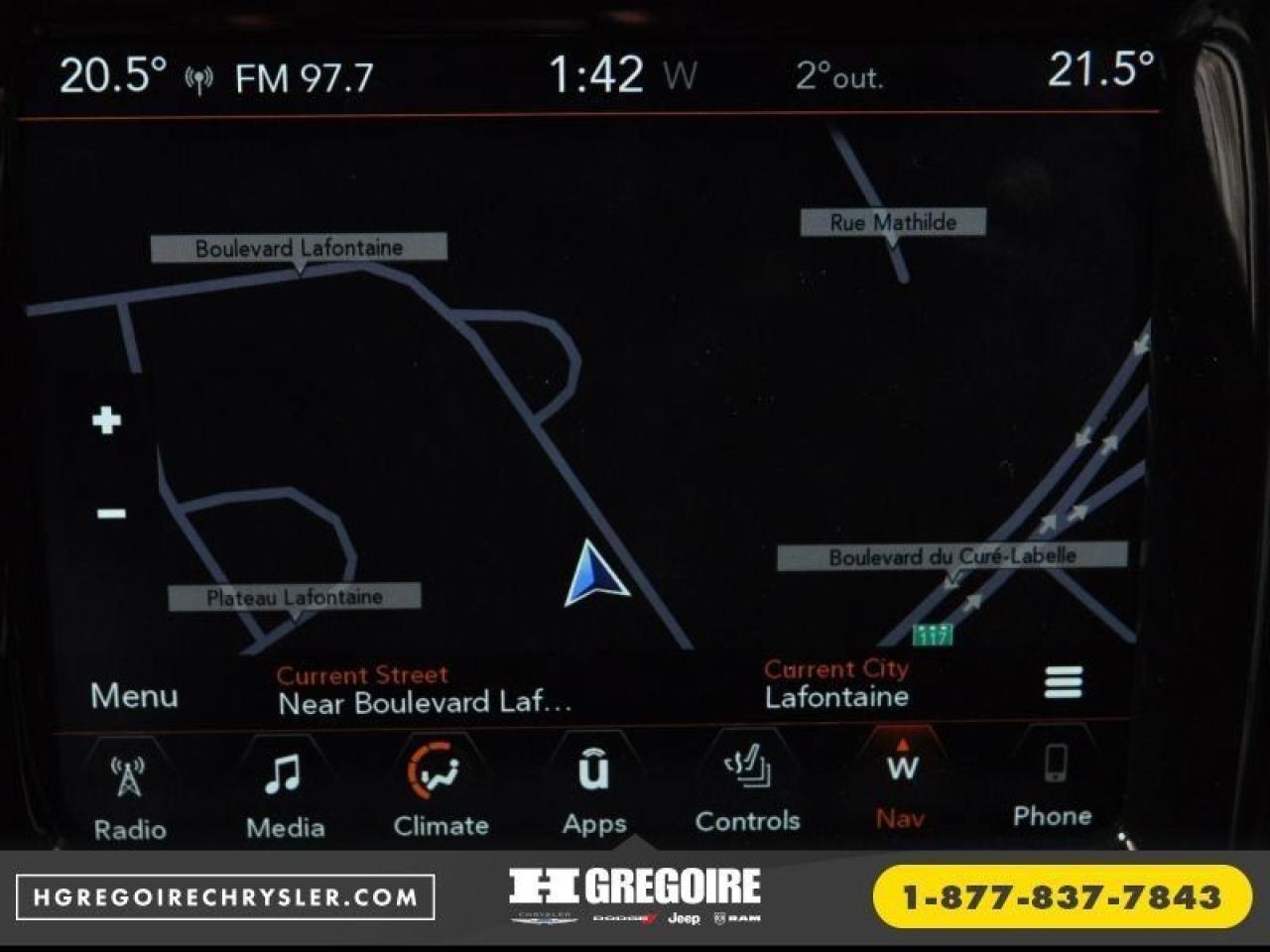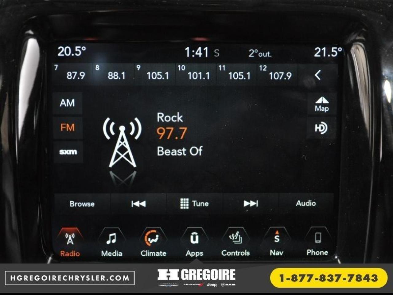 CERTIFIE Vaste inventaire de vehicules d'occasion au meilleur prix du marche. Recevez le MAXIMUM pour votre vehicule d'echange! Financement avec taux d'interet imbattable! Ouvert 7 jours. Pour plus d'informations sur cette voiture, passez nous voir ou visitez https://www.hgregoirechrysler.com/fr-stk/2872Z
