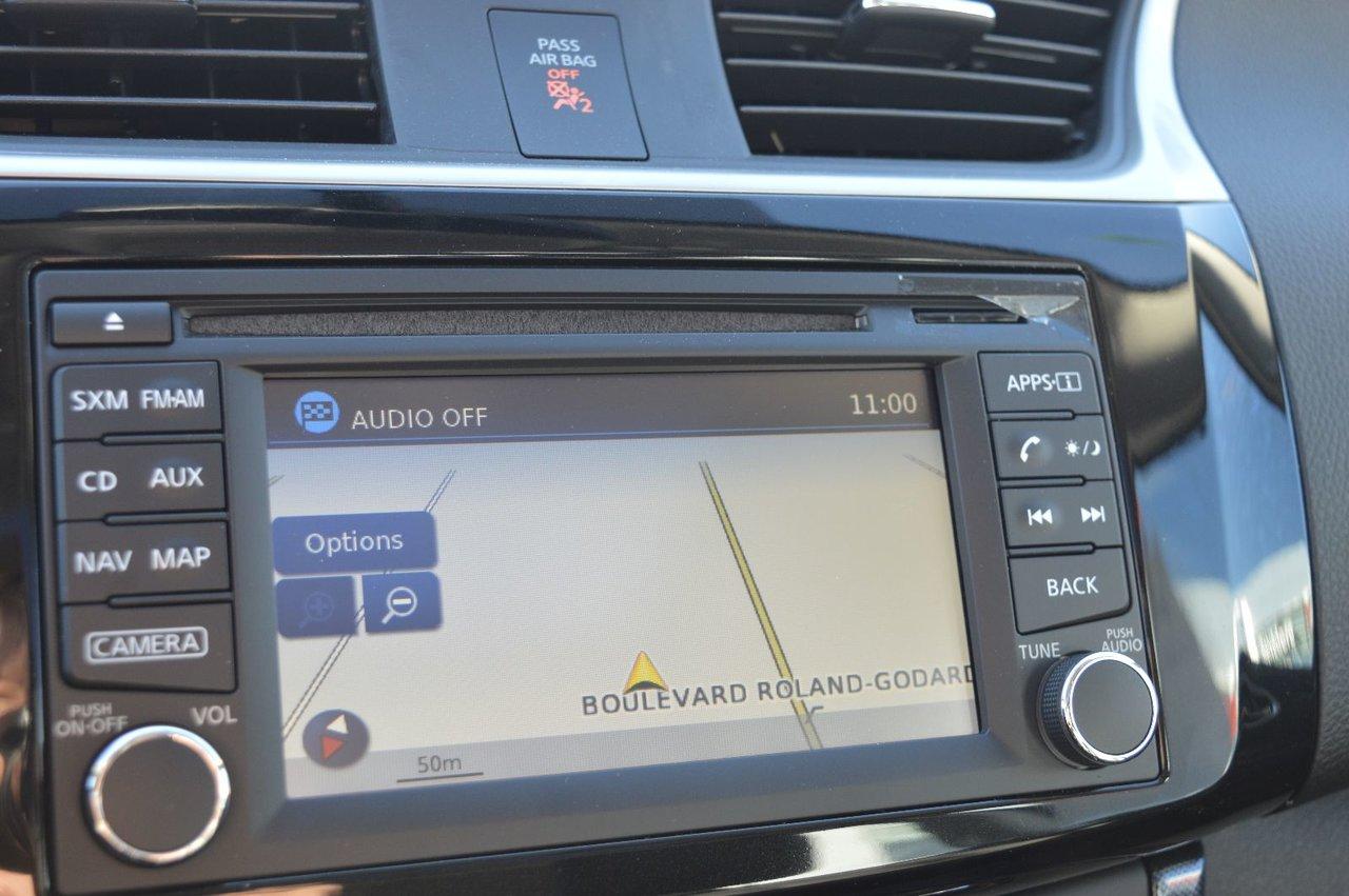 Nissan Sentra SR PREMIUM TURBO CUIR NAVIGATION LIQUIDATION 2017Régulateur de vitesse, Toit ouvrant, Essuie-glaces intermittents, Anti-démarreur, Freins ABS, Contrôle de stabilité, Coussin gonflable conducteur, Coussins gonflables latéraux, Lecteur CD, Lecteur MP3, 8 Haut-parleurs, Portes électriques, Tachymètre, Vitres électriques, Air climatisé, Intérieur en cuir, Commandes audio au volant, Sièges arrières rabattables, Sièges chauffants, Volant ajustable, Aileron, Tapis protecteurs, Ordinateur de bord, Tout équipé, Caméra de recul, Radio AM/FM, Volant gainé de cuir, Phares automatiques, Rétroviseur électrique, Direction assistée, Télédéverrouillage, Rétroviseurs chauffants, Banquette arrière divisé, Siège à réglage électrique, Système d\'alarme, Coussins gonflables arrière pour la tête, Sièges tissu, Démarrage sans clé, Freins à disque, Sièges chauffants - Avant, Rétroviseurs électriques, Jantes en alliage, Antipatinage, Phares antibrouillards, Jupes aérodynamiques, Verrous de sécurité pour enfants, Système de surveillance de la pression des pneus, Sièges baquets, Prise Auxiliaire, Technologie Bluetooth intégrée, Port USB, Aluminium, Climatisation