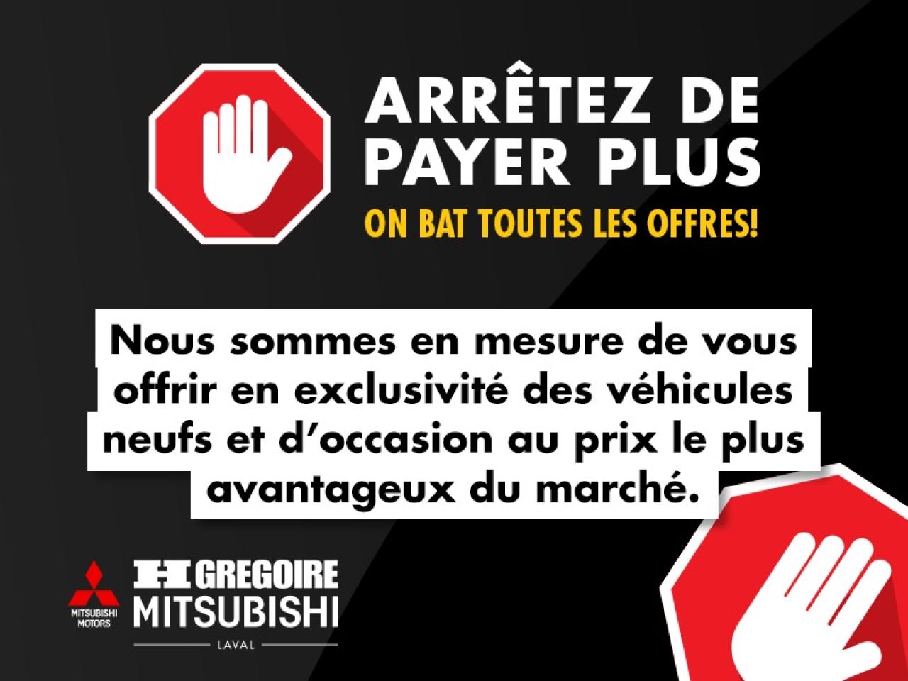 CERTIFIE Vaste inventaire de vehicules d'occasion au meilleur prix du marche. Recevez le MAXIMUM pour votre vehicule d'echange! Financement avec taux d'interet imbattable! Ouvert 7 jours. Pour plus d'informations sur cette voiture, passez nous voir ou visitez https://mitsubishilaval.com/fr-stk/MU0186