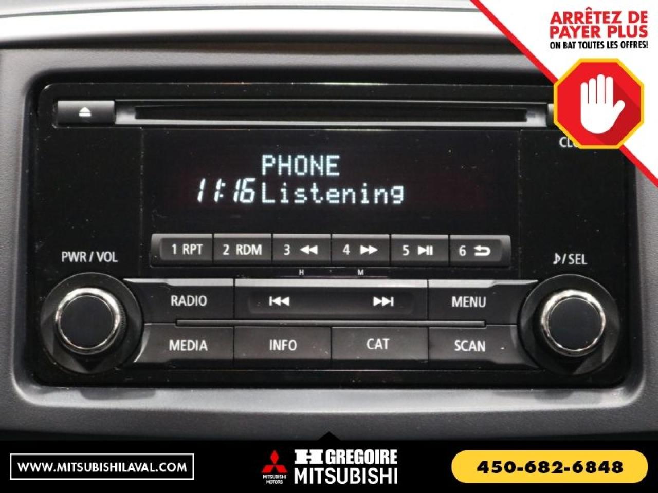 CERTIFIE Vaste inventaire de vehicules d'occasion au meilleur prix du marche. Recevez le MAXIMUM pour votre vehicule d'echange! Financement avec taux d'interet imbattable! Ouvert 7 jours. Pour plus d'informations sur cette voiture, passez nous voir ou visitez https://mitsubishilaval.com/fr-stk/MU0220