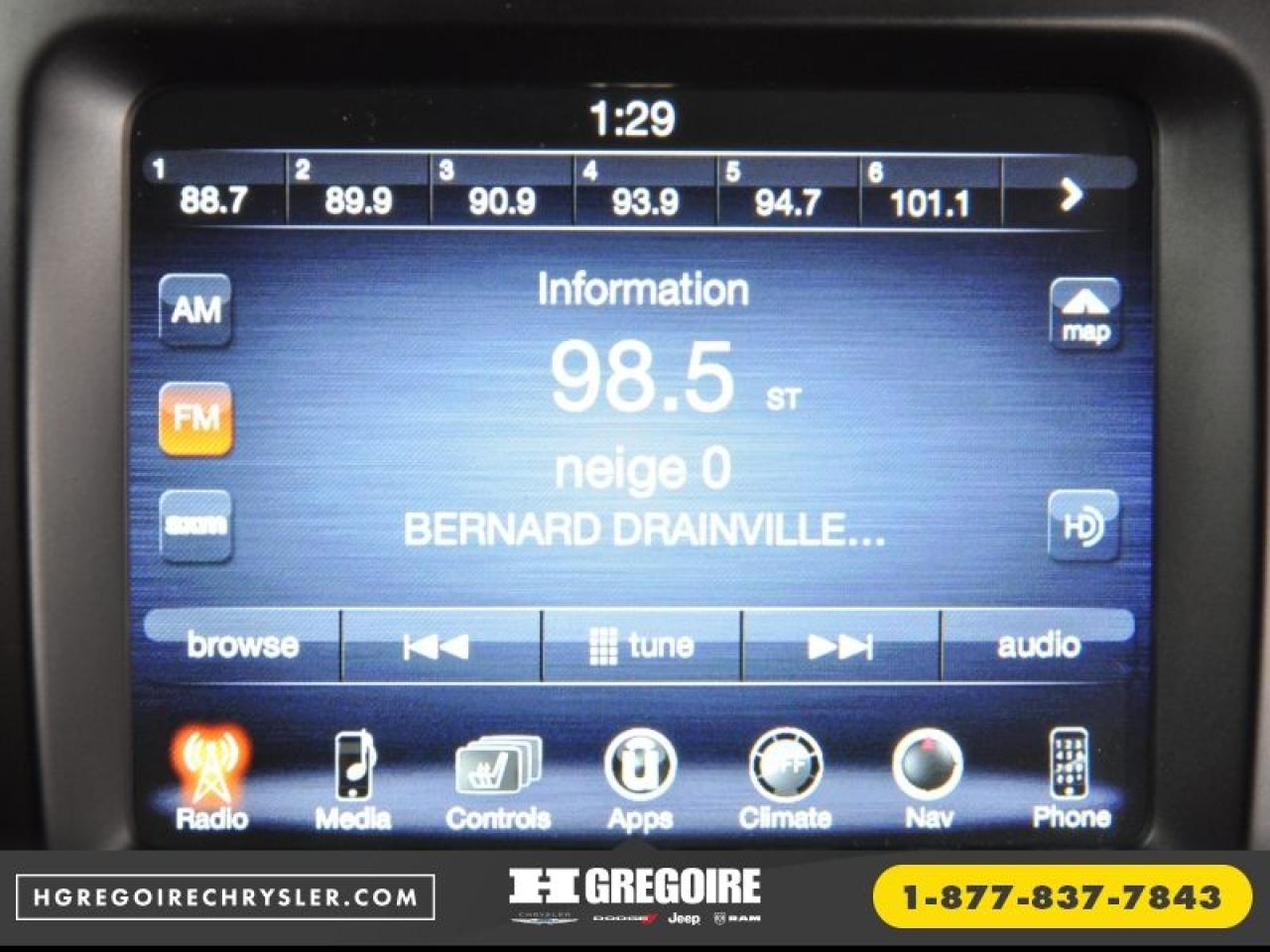 CERTIFIE Vaste inventaire de vehicules d'occasion au meilleur prix du marche. Recevez le MAXIMUM pour votre vehicule d'echange! Financement avec taux d'interet imbattable! Ouvert 7 jours. Pour plus d'informations sur cette voiture, passez nous voir ou visitez https://www.hgregoirechrysler.com/fr-stk/2888Z