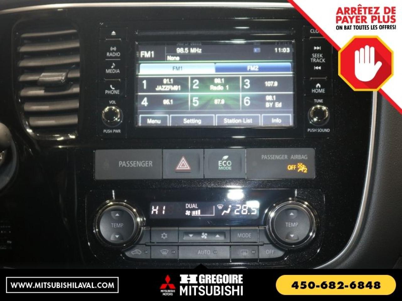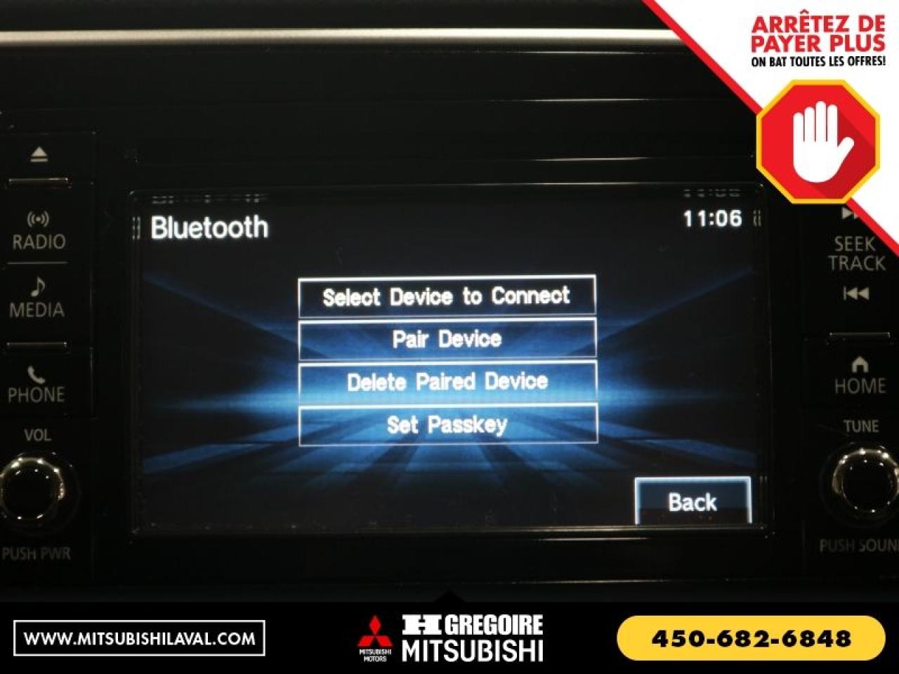 CERTIFIE Vaste inventaire de vehicules d'occasion au meilleur prix du marche. Recevez le MAXIMUM pour votre vehicule d'echange! Financement avec taux d'interet imbattable! Ouvert 7 jours. Pour plus d'informations sur cette voiture, passez nous voir ou visitez https://mitsubishilaval.com/fr-stk/MU0176
