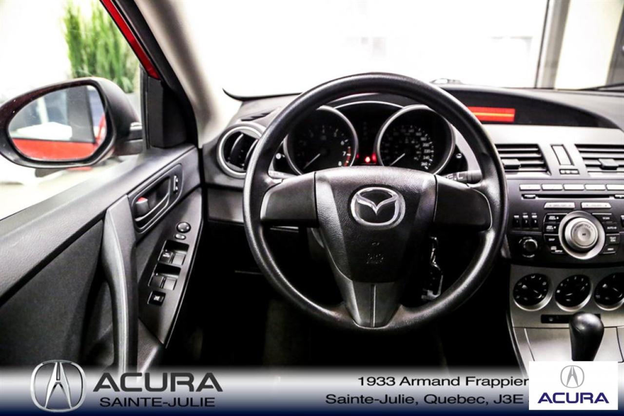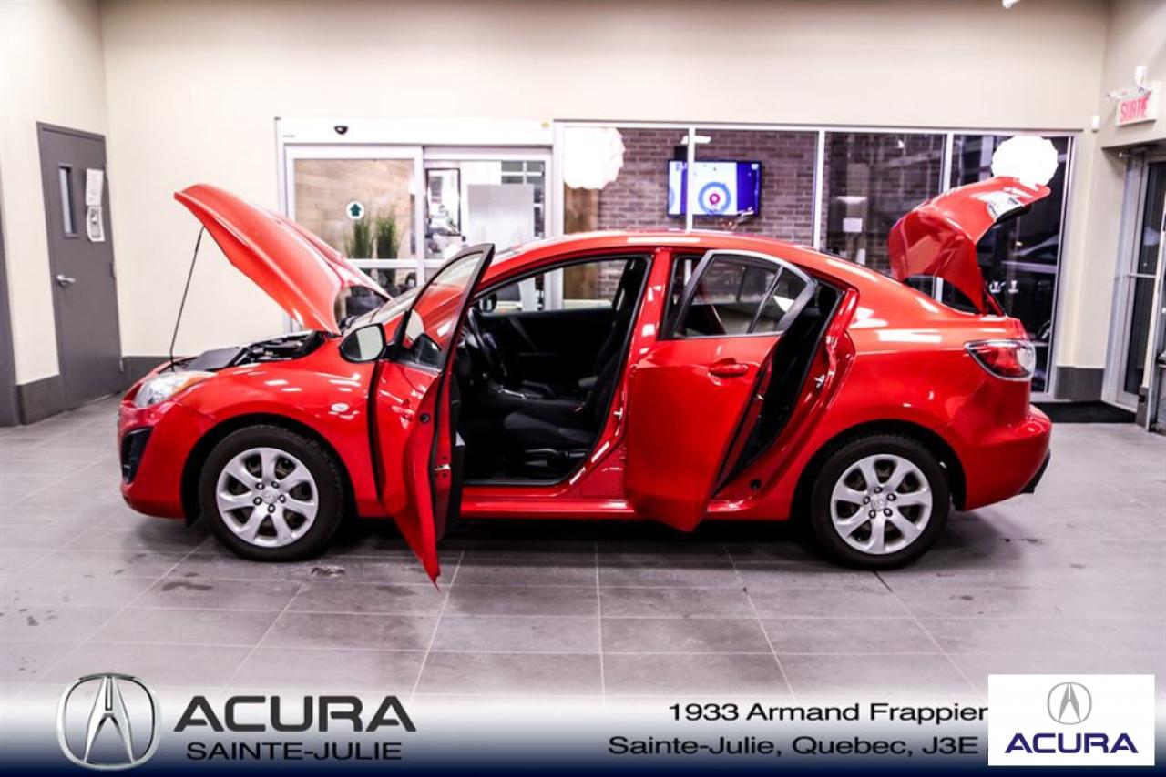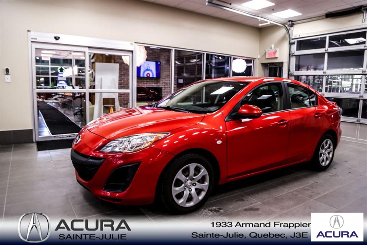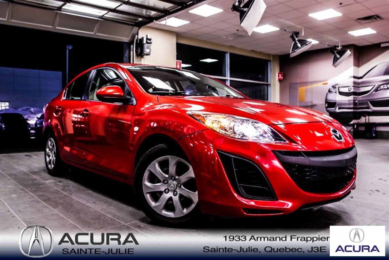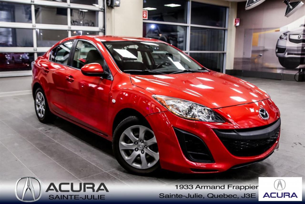 Mazda Mazda3 GS 2010\n\nServo-direction, Essuie-glaces intermittents, Lecteur CD, Déverrouillage à distance, Vitres électriques, Volant ajustable, Radio AM/FM, Intérieur Tissus, Antivol, Coussins gonflables, Sièges baquets\n\nInspection complète 152 points--financement sur place--votre véhicule d'échange évaluer en 15 minutes maximum!!!2eme chance au crédit accepté. TOUS NOS PRIX SONT TRANSPARENT ET DÉJA NÉGOCIÉ AU MEILLEUR PRIX DU MARCHÉ! LE PRIX QUE VOUS VOYEZ EST LE PRIX QUE VOUS PAYER SANS SURPRISES ! ****************************************************************************** VENEZ PROFITER DE L'INVENTAIRE DE VÉHICULES D'OCCASIONS DU PLUS GRAND CONCESSIONNAIRE ACURA DE LA RIVE-SUD. TOUS NOS VÉHICULES SONT INSPECTÉS POUR QUE VOUS PUISSIEZ BÉNÉFICIER D'UN ACHAT EN TOUTE CONFIANCE. NOUS AVONS UNE GAMME DE VÉHICULES USAGÉES DIVERSIFIÉES AVEC RAPPORT DE CARPROOF EN MAIN ET SURTOUT À DES PRIX COMPÉTITIFS!! NOUS DÉSSERVONS LE GRAND MONTRÉAL ET LA RIVE-SUD. SI NOUS NE L'AVONS PAS, NOUS LE TROUVERONS!!! NOTRE ÉQUIPE EST LA A VOTRE SERVICE PAR COURRIEL 6 JOURS SUR 7. N'HÉSITEZ PAS À NOUS CONTACTER CAR NOUS SOMMES DISPONIBLES POUR RÉPONDRE À VOS DEMANDES AU 1-866-765-6707 OU AU ACURASAINTEJULIE.COM ---- All of our vehicules are thoroughly inspected with a 152 points inspection so you can have a WORRY FREE PURCHASE. All Financing options available, even 2nd chance and 3rd chance credit. We welcome trades-in and evaluation is done within 20 minutes plus on-spot delivery available. ALL OUR PRICES ARE FULLY TRANSPARENT AND ALREADY NEGOCIATED AT THE BEST MARKET PRICE. THE PRICE YOU SEE IS THE PRICE YOU PAY WITHOUT SUPRISES! ******************************************************************************** COME TAKE ADVANTAGE OF THE USED CAR INVENTORY OF THE BIGGEST ACURA DEALER ON THE SOUTH SHORE.WE HAVE A DIVERSIFIED INVENTORY WITH AN AVAILABLE CARPROOF REPORT, BUT MOST IMPORTANTLY WE HAVE THE MOST COMPETITIVE PRICES ON THE MARKET!!! OUR TEAM IS THERE TO SERVE YOU 6 DAYS OF THE WEEK. DON'T HESITATE TO CONTACT US SINCE WE ARE HERE TO ANSWER ALL YOUR QUESTIONS AT 1-866-765-6707 OR AT ACURASAINTEJULIE.COM