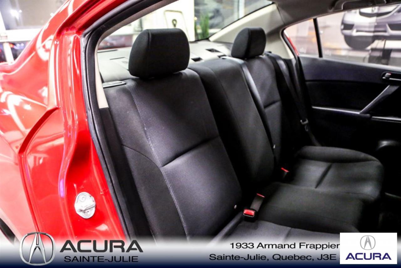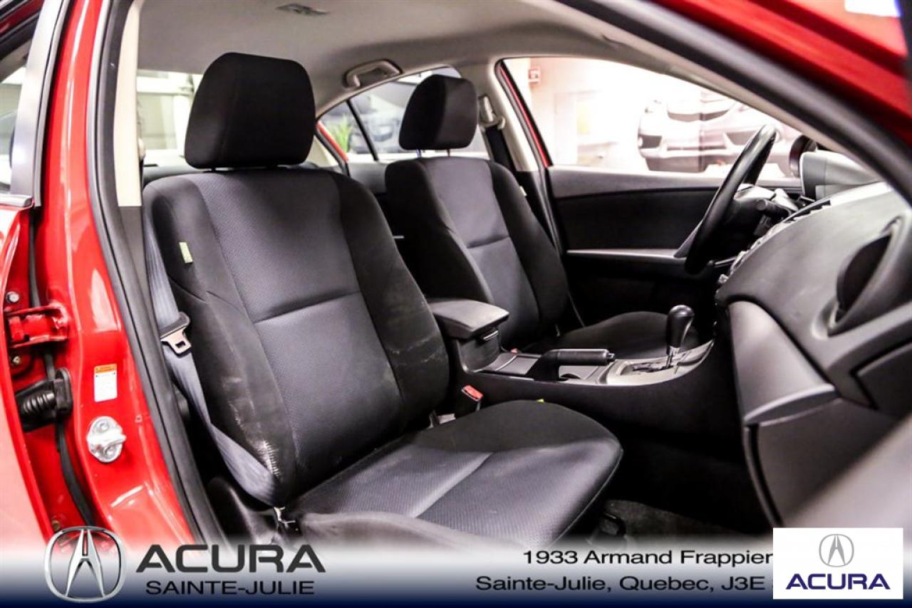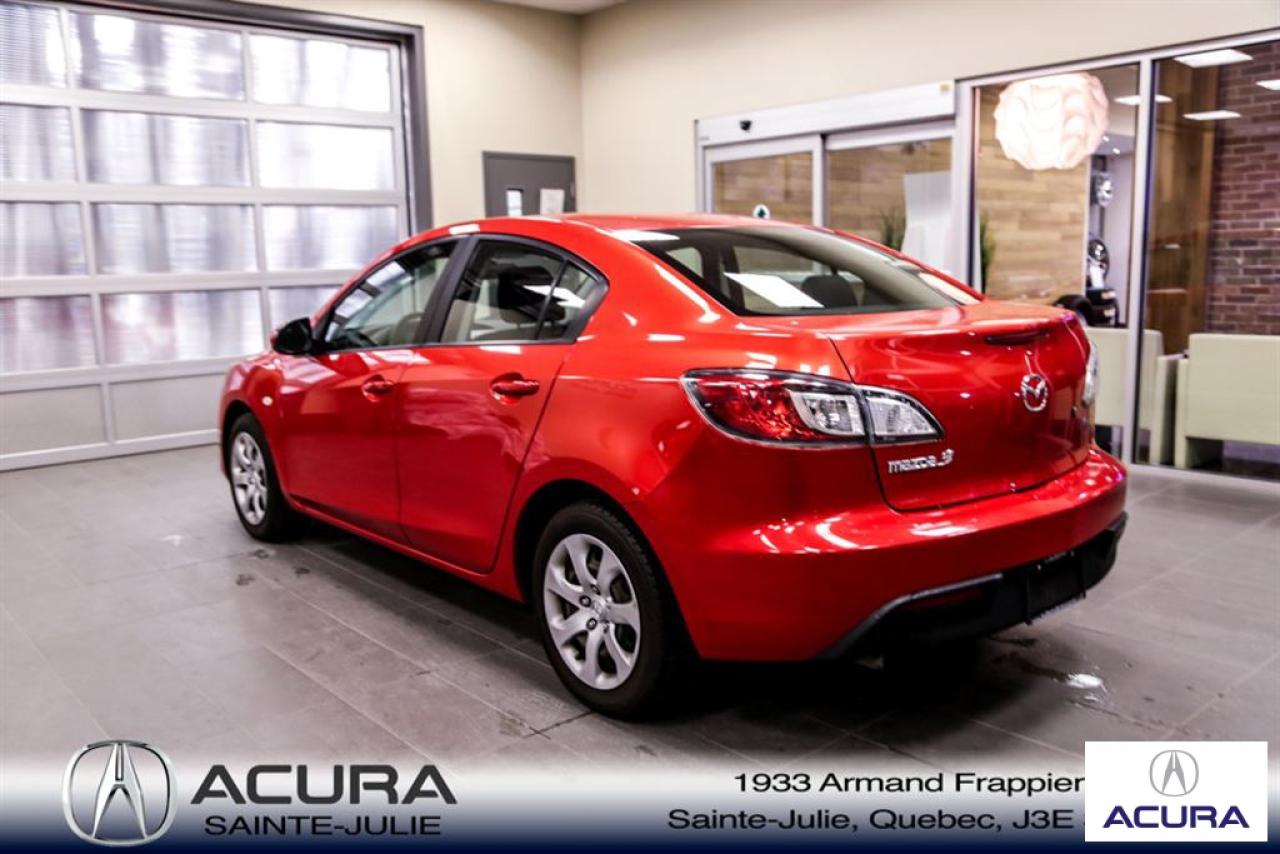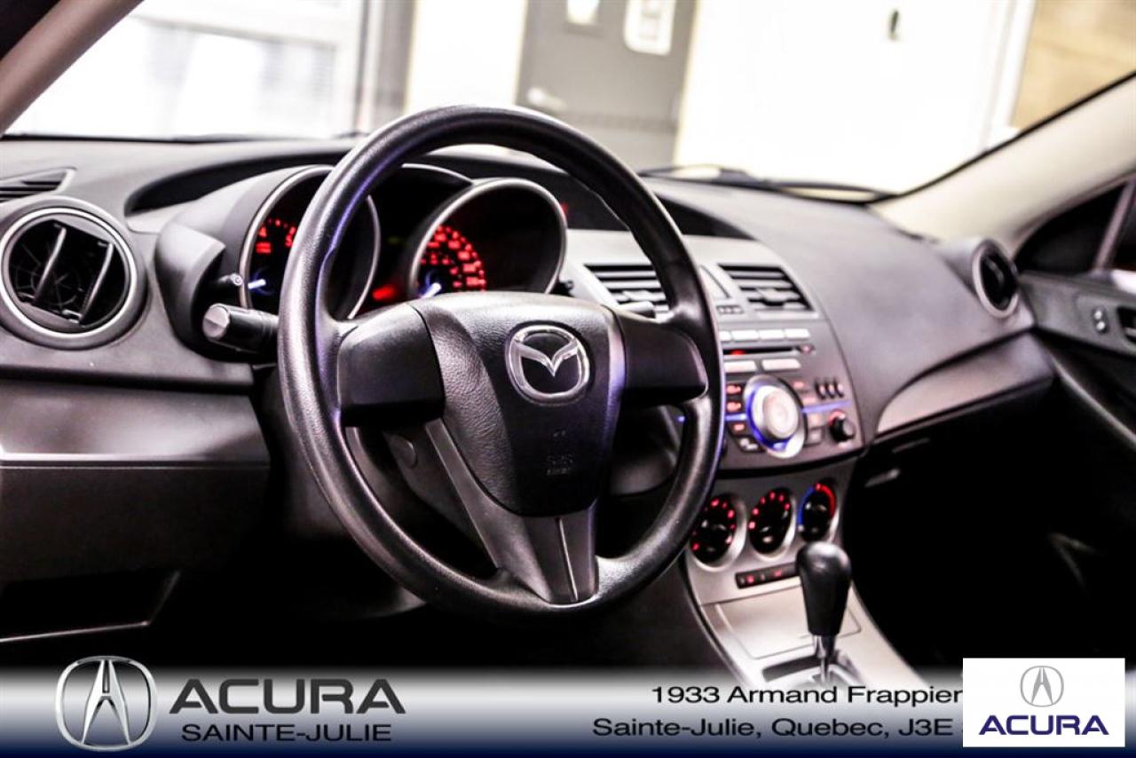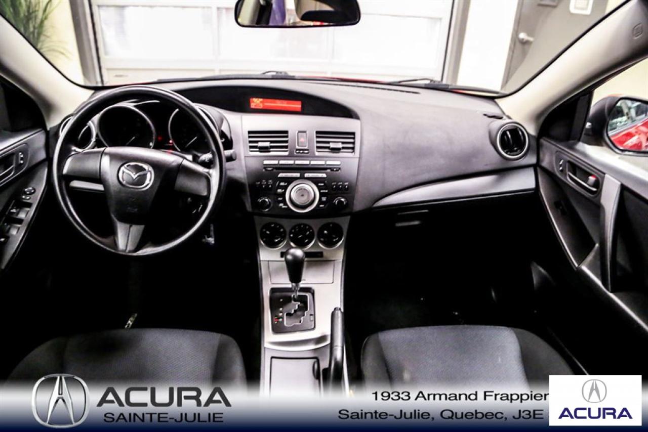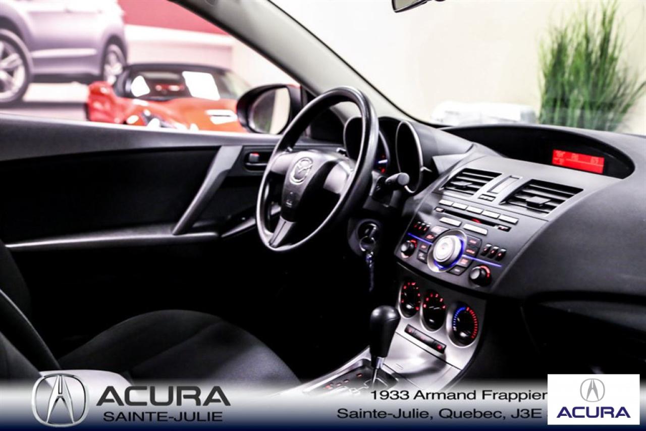Mazda Mazda3 GS 2010\n\nServo-direction, Essuie-glaces intermittents, Lecteur CD, Déverrouillage à distance, Vitres électriques, Volant ajustable, Radio AM/FM, Intérieur Tissus, Antivol, Coussins gonflables, Sièges baquets\n\nInspection complète 152 points--financement sur place--votre véhicule d'échange évaluer en 15 minutes maximum!!!2eme chance au crédit accepté. TOUS NOS PRIX SONT TRANSPARENT ET DÉJA NÉGOCIÉ AU MEILLEUR PRIX DU MARCHÉ! LE PRIX QUE VOUS VOYEZ EST LE PRIX QUE VOUS PAYER SANS SURPRISES ! ****************************************************************************** VENEZ PROFITER DE L'INVENTAIRE DE VÉHICULES D'OCCASIONS DU PLUS GRAND CONCESSIONNAIRE ACURA DE LA RIVE-SUD. TOUS NOS VÉHICULES SONT INSPECTÉS POUR QUE VOUS PUISSIEZ BÉNÉFICIER D'UN ACHAT EN TOUTE CONFIANCE. NOUS AVONS UNE GAMME DE VÉHICULES USAGÉES DIVERSIFIÉES AVEC RAPPORT DE CARPROOF EN MAIN ET SURTOUT À DES PRIX COMPÉTITIFS!! NOUS DÉSSERVONS LE GRAND MONTRÉAL ET LA RIVE-SUD. SI NOUS NE L'AVONS PAS, NOUS LE TROUVERONS!!! NOTRE ÉQUIPE EST LA A VOTRE SERVICE PAR COURRIEL 6 JOURS SUR 7. N'HÉSITEZ PAS À NOUS CONTACTER CAR NOUS SOMMES DISPONIBLES POUR RÉPONDRE À VOS DEMANDES AU 1-866-765-6707 OU AU ACURASAINTEJULIE.COM ---- All of our vehicules are thoroughly inspected with a 152 points inspection so you can have a WORRY FREE PURCHASE. All Financing options available, even 2nd chance and 3rd chance credit. We welcome trades-in and evaluation is done within 20 minutes plus on-spot delivery available. ALL OUR PRICES ARE FULLY TRANSPARENT AND ALREADY NEGOCIATED AT THE BEST MARKET PRICE. THE PRICE YOU SEE IS THE PRICE YOU PAY WITHOUT SUPRISES! ******************************************************************************** COME TAKE ADVANTAGE OF THE USED CAR INVENTORY OF THE BIGGEST ACURA DEALER ON THE SOUTH SHORE.WE HAVE A DIVERSIFIED INVENTORY WITH AN AVAILABLE CARPROOF REPORT, BUT MOST IMPORTANTLY WE HAVE THE MOST COMPETITIVE PRICES ON THE MARKET!!! OUR TEAM IS THERE TO SERVE YOU 6 DAYS OF THE WEEK. DON'T HESITATE TO CONTACT US SINCE WE ARE HERE TO ANSWER ALL YOUR QUESTIONS AT 1-866-765-6707 OR AT ACURASAINTEJULIE.COM