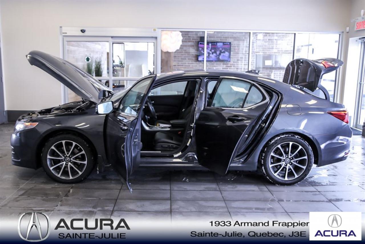 Acura TLX V6 2015\n\nRégulateur de vitesse, Servo-direction, Essuie-glaces intermittents, Contrôle de stabilité, Lecteur CD, Coffre - Ouverture à distance, Déverrouillage à distance, Sièges électriques, Vitres électriques, Siège mémoire, Volant ajustable, Radio satellite, Radio AM/FM, Rétroviseurs, Volant gainé de cuir, Phares automatiques, Contrôle de traction, Système d'alarme, Régulateur de température, Boiseries intérieures, Pare-soleil avec miroir illuminé, Antivol, Coussins gonflables, Sièges baquets, Climatisation\n\n*** SEULEMENT 112$ / SEM SUR 72 MOIS À 5.99% AUCUN COMPTANT, TOUT INCLUS, TAXES ET GARANTIE COMPLETE 48 MOIS OU 80 000 KM INCLUSES DANS LE VERSEMENT **** Inspection complète 152 points--financement sur place--votre véhicule d'échange évaluer en 15 minutes maximum!!!2eme chance au crédit accepté. TOUS NOS PRIX SONT TRANSPARENT ET DÉJA NÉGOCIÉ AU MEILLEUR PRIX DU MARCHÉ! LE PRIX QUE VOUS VOYEZ EST LE PRIX QUE VOUS PAYER SANS SURPRISES ! ****************************************************************************** VENEZ PROFITER DE L'INVENTAIRE DE VÉHICULES D'OCCASIONS DU PLUS GRAND CONCESSIONNAIRE ACURA DE LA RIVE-SUD. TOUS NOS VÉHICULES SONT INSPECTÉS POUR QUE VOUS PUISSIEZ BÉNÉFICIER D'UN ACHAT EN TOUTE CONFIANCE. NOUS AVONS UNE GAMME DE VÉHICULES USAGÉES DIVERSIFIÉES AVEC RAPPORT DE CARPROOF EN MAIN ET SURTOUT À DES PRIX COMPÉTITIFS!! NOUS DÉSSERVONS LE GRAND MONTRÉAL ET LA RIVE-SUD. SI NOUS NE L'AVONS PAS, NOUS LE TROUVERONS!!! NOTRE ÉQUIPE EST LA A VOTRE SERVICE PAR COURRIEL 6 JOURS SUR 7. N'HÉSITEZ PAS À NOUS CONTACTER CAR NOUS SOMMES DISPONIBLES POUR RÉPONDRE À VOS DEMANDES AU 1-866-765-6707 OU AU ACURASAINTEJULIE.COM ---- *** ONLY 112$ / WEEK ON 72 MONTH AT 5.99% AND 0$ CASHDOWN, ALL INCLUDED, TAXES AND A COMPLETE 48 MONTH / 80 000 KM WARRANTY (1482$) INCLUDED IN THE PAYMENT *** All of our vehicules are thoroughly inspected with a 152 points inspection so you can have a WORRY FREE PURCHASE. All Financing options available, even 2nd chance and 3rd chance credit. We welcome trades-in and evaluation is done within 20 minutes plus on-spot delivery available. ALL OUR PRICES ARE FULLY TRANSPARENT AND ALREADY NEGOCIATED AT THE BEST MARKET PRICE. THE PRICE YOU SEE IS THE PRICE YOU PAY WITHOUT SUPRISES! ******************************************************************************** COME TAKE ADVANTAGE OF THE USED CAR INVENTORY OF THE BIGGEST ACURA DEALER ON THE SOUTH SHORE.WE HAVE A DIVERSIFIED INVENTORY WITH AN AVAILABLE CARPROOF REPORT, BUT MOST IMPORTANTLY WE HAVE THE MOST COMPETITIVE PRICES ON THE MARKET!!! OUR TEAM IS THERE TO SERVE YOU 6 DAYS OF THE WEEK. DON'T HESITATE TO CONTACT US SINCE WE ARE HERE TO ANSWER ALL YOUR QUESTIONS AT 1-866-765-6707 OR AT ACURASAINTEJULIE.COM