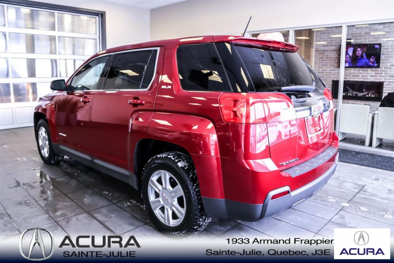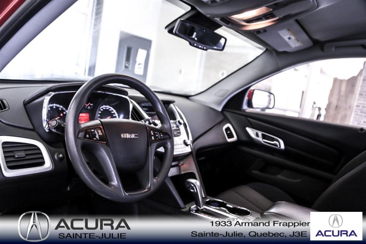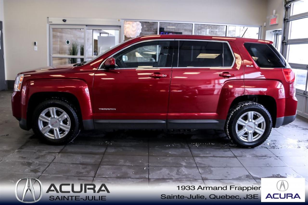 GMC Terrain SLE 2015\n\nRégulateur de vitesse, Servo-direction, Essuie-glaces intermittents, Contrôle de stabilité, Lecteur CD, Déverrouillage à distance, Vitres électriques, Volant ajustable, Vitres teintées, Radio AM/FM, Rétroviseurs, Intérieur Tissus, Contrôle de traction, Système d'alarme, Pare-soleil avec miroir illuminé, Phares antibrouillards, Coussins gonflables, Sièges baquets, Climatisation\n\n*** SEULEMENT 91$ / SEM SUR 72 MOIS À 5.99% AUCUN COMPTANT, TOUT INCLUS, TAXES ET GARANTIE COMPLETE 48 MOIS OU 80 000 KM **** Inspection complète 152 points--financement sur place--votre véhicule d'échange évaluer en 15 minutes maximum!!!2eme chance au crédit accepté. TOUS NOS PRIX SONT TRANSPARENT ET DÉJA NÉGOCIÉ AU MEILLEUR PRIX DU MARCHÉ! LE PRIX QUE VOUS VOYEZ EST LE PRIX QUE VOUS PAYER SANS SURPRISES ! ****************************************************************************** VENEZ PROFITER DE L'INVENTAIRE DE VÉHICULES D'OCCASIONS DU PLUS GRAND CONCESSIONNAIRE ACURA DE LA RIVE-SUD. TOUS NOS VÉHICULES SONT INSPECTÉS POUR QUE VOUS PUISSIEZ BÉNÉFICIER D'UN ACHAT EN TOUTE CONFIANCE. NOUS AVONS UNE GAMME DE VÉHICULES USAGÉES DIVERSIFIÉES AVEC RAPPORT DE CARPROOF EN MAIN ET SURTOUT À DES PRIX COMPÉTITIFS!! NOUS DÉSSERVONS LE GRAND MONTRÉAL ET LA RIVE-SUD. SI NOUS NE L'AVONS PAS, NOUS LE TROUVERONS!!! NOTRE ÉQUIPE EST LA A VOTRE SERVICE PAR COURRIEL 6 JOURS SUR 7. N'HÉSITEZ PAS À NOUS CONTACTER CAR NOUS SOMMES DISPONIBLES POUR RÉPONDRE À VOS DEMANDES AU 1-866-765-6707 OU AU ACURASAINTEJULIE.COM ---- *** ONLY 91$ / WEEK ON 72 MONTH AT 5.99% AND 0$ CASHDOWN, ALL INCLUDED, TAXES AND A COMPLETE 48 MONTH / 80 000 KM WARRANTY *** All of our vehicules are thoroughly inspected with a 152 points inspection so you can have a WORRY FREE PURCHASE. All Financing options available, even 2nd chance and 3rd chance credit. We welcome trades-in and evaluation is done within 20 minutes plus on-spot delivery available. ALL OUR PRICES ARE FULLY TRANSPARENT AND ALREADY NEGOCIATED AT THE BEST MARKET PRICE. THE PRICE YOU SEE IS THE PRICE YOU PAY WITHOUT SUPRISES! ******************************************************************************** COME TAKE ADVANTAGE OF THE USED CAR INVENTORY OF THE BIGGEST ACURA DEALER ON THE SOUTH SHORE.WE HAVE A DIVERSIFIED INVENTORY WITH AN AVAILABLE CARPROOF REPORT, BUT MOST IMPORTANTLY WE HAVE THE MOST COMPETITIVE PRICES ON THE MARKET!!! OUR TEAM IS THERE TO SERVE YOU 6 DAYS OF THE WEEK. DON'T HESITATE TO CONTACT US SINCE WE ARE HERE TO ANSWER ALL YOUR QUESTIONS AT 1-866-765-6707 OR AT ACURASAINTEJULIE.COM