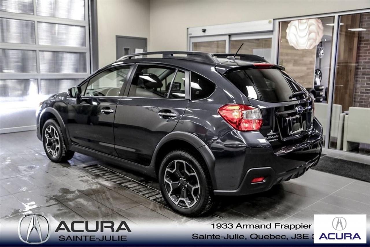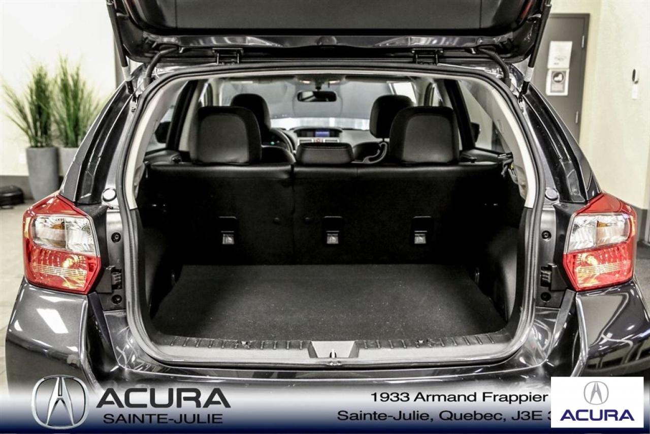 Subaru Xv Crosstrek Limited 2015\n\nRégulateur de vitesse, Servo-direction, Essuie-glaces intermittents, Contrôle de stabilité, Lecteur CD, Coffre - Ouverture à distance, Déverrouillage à distance, Vitres électriques, Intérieur en cuir, Volant ajustable, Vitres teintées, Radio satellite, Radio AM/FM, Volant gainé de cuir, Phares automatiques, Phares aux Xénon, Contrôle de traction, Système d'alarme, Régulateur de température, Antivol, Phares antibrouillards, Coussins gonflables, Sièges baquets, Climatisation\n\n*** SEULEMENT 120$ / SEMAINE SUR 72 MOIS À 5.99% AUCUN COMPTANT, TOUT INCLUS, TAXES ET GARANTIE COMPLETE 48 MOIS OU 80 000 KM **** Inspection complète 152 points--financement sur place--votre véhicule d'échange évaluer en 15 minutes maximum!!!2eme chance au crédit accepté. TOUS NOS PRIX SONT TRANSPARENT ET DÉJA NÉGOCIÉ AU MEILLEUR PRIX DU MARCHÉ! LE PRIX QUE VOUS VOYEZ EST LE PRIX QUE VOUS PAYER SANS SURPRISES ! ****************************************************************************** VENEZ PROFITER DE L'INVENTAIRE DE VÉHICULES D'OCCASIONS DU PLUS GRAND CONCESSIONNAIRE ACURA DE LA RIVE-SUD. TOUS NOS VÉHICULES SONT INSPECTÉS POUR QUE VOUS PUISSIEZ BÉNÉFICIER D'UN ACHAT EN TOUTE CONFIANCE. NOUS AVONS UNE GAMME DE VÉHICULES USAGÉES DIVERSIFIÉES AVEC RAPPORT DE CARPROOF EN MAIN ET SURTOUT À DES PRIX COMPÉTITIFS!! NOUS DÉSSERVONS LE GRAND MONTRÉAL ET LA RIVE-SUD. SI NOUS NE L'AVONS PAS, NOUS LE TROUVERONS!!! NOTRE ÉQUIPE EST LA A VOTRE SERVICE PAR COURRIEL 6 JOURS SUR 7. N'HÉSITEZ PAS À NOUS CONTACTER CAR NOUS SOMMES DISPONIBLES POUR RÉPONDRE À VOS DEMANDES AU 1-866-765-6707 OU AU ACURASAINTEJULIE.COM ---- *** ONLY 120$ / WEEK ON 72 MONTH AT 5.99% AND 0$ CASHDOWN, ALL INCLUDED, TAXES AND A COMPLETE 48 MONTH / 80 000 KM WARRANTY *** All of our vehicules are thoroughly inspected with a 152 points inspection so you can have a WORRY FREE PURCHASE. All Financing options available, even 2nd chance and 3rd chance credit. We welcome trades-in and evaluation is done within 20 minutes plus on-spot delivery available. ALL OUR PRICES ARE FULLY TRANSPARENT AND ALREADY NEGOCIATED AT THE BEST MARKET PRICE. THE PRICE YOU SEE IS THE PRICE YOU PAY WITHOUT SUPRISES! ******************************************************************************** COME TAKE ADVANTAGE OF THE USED CAR INVENTORY OF THE BIGGEST ACURA DEALER ON THE SOUTH SHORE.WE HAVE A DIVERSIFIED INVENTORY WITH AN AVAILABLE CARPROOF REPORT, BUT MOST IMPORTANTLY WE HAVE THE MOST COMPETITIVE PRICES ON THE MARKET!!! OUR TEAM IS THERE TO SERVE YOU 6 DAYS OF THE WEEK. DON'T HESITATE TO CONTACT US SINCE WE ARE HERE TO ANSWER ALL YOUR QUESTIONS AT 1-866-765-6707 OR AT ACURASAINTEJULIE.COM