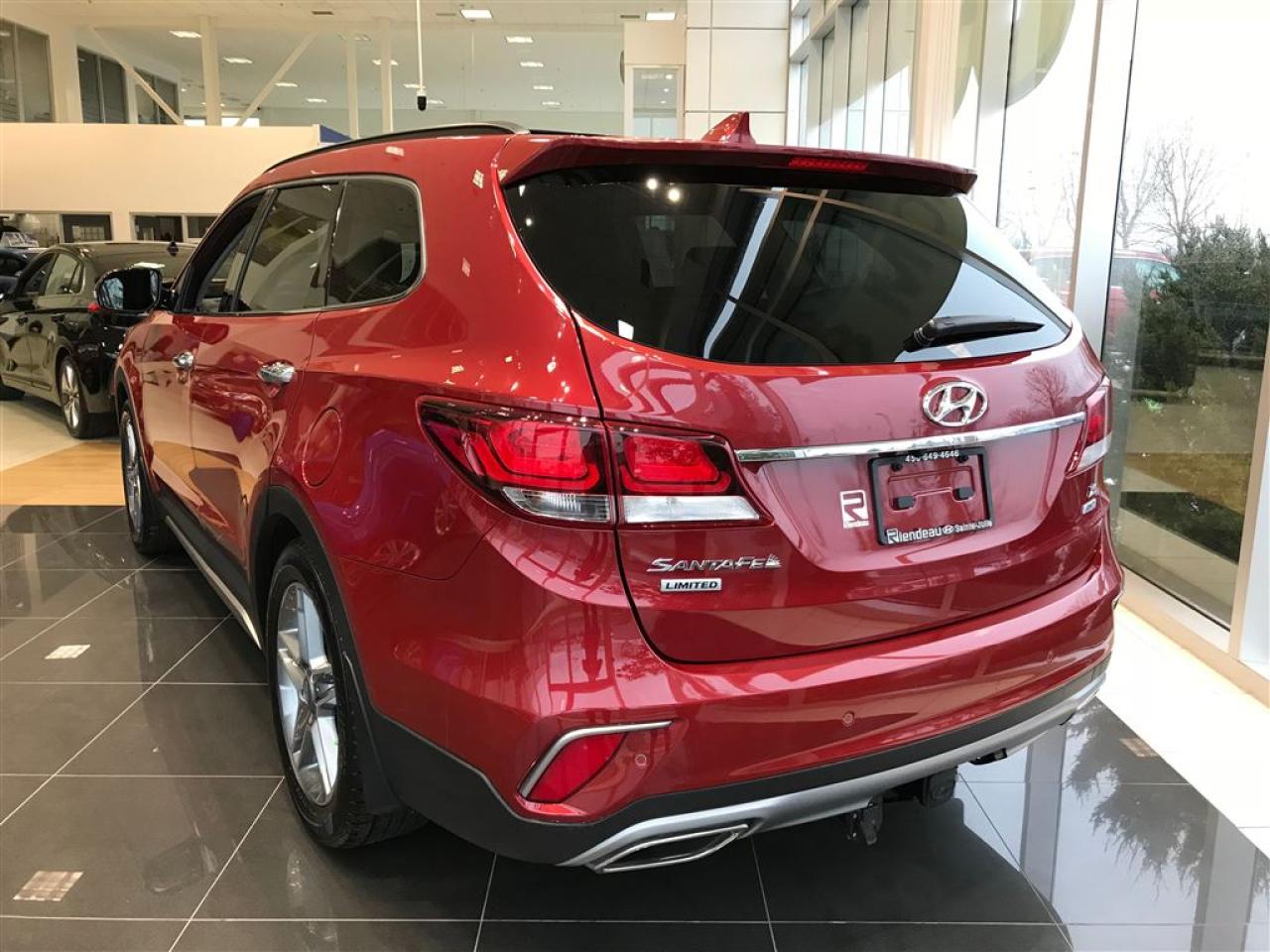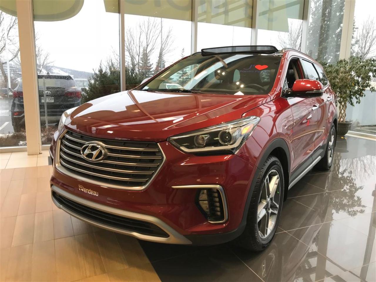 DÉMONSTRATEUR SANTA FE XL LIMITED AWD 6 PASSAGERS. TIRE JUSQU'À 5 000 LBS. TOUT ÉQUIPÉ : SYSTÈME DE NAVIGATION. SYSTÈME DE SONS INFINITY, TOIT OUVRANT PANORAMIQUE, SIÈGES EN CUIR CHAUFFANTS ET VENTILÉS, DÉTECTEUR D'ANGLES MORTS, CAMÉRA DE RECUL ET BEAUCOUP PLUS. RIENDEAU HYUNDAI Un concessionnaire établi depuis 1993 ayant vue 3 générations. Ouvert le samedi de 10h à 16h Rejoignez-nous en tout temps au 514-709-2886. Vous manquez de temps pour venir nous visiter? Laissez-nous le savoir et profitez de notre service de visite à domicile ou au travail selon votre horaire! Sachez que tous nos véhicules sont inspectés par nos techniciens certifiés Hyundai et qu'un rapport Carproof est disponible en tout temps sur demande. Venez faire l'expérience Riendeau Hyundai et choisissez parmi notre vaste inventaire de véhicules d'occasion avec des taux certifiés à partir de 2.9% et demandez à propos de nos promotions sur nos pneus d'hivers. À proximité de Montréal, Longueuil, Brossard, St-Hubert, St-Hyacinthe, Drummondville, Saint-Basile-le-Grand, Boucherville, Varennes et Chambly. Venez constatez pourquoi tant de clients choisissent Riendeau Hyundai et rien d'autre. ================================================================ A dealer establish since 1993 and with 3 generations. Open on Saturday from 10h to 16h. Call us anytime at 514-709-2886. Lacking time to visit us? Let us know and benefit of our home and office service following your schedule. Know that our vehicles are inspected by our Hyundai certified technicians and that a Carproof report is available at anytime on demand. Come meet the experience Riendeau Hyundai and chose within our massive inventory of used car with certified interest rate starting at 2.9% and ask us about our promotion on winter tires. Close to Montreal, Longueuil, Brossard, St-Hubert, Ste-Hyacinthe, Drummondville, Saint-Basile-le-Grand, Boucherville, Varennes and Chambly. Let us show you why so many customer choose Riendeau Hyundai and nothing else!