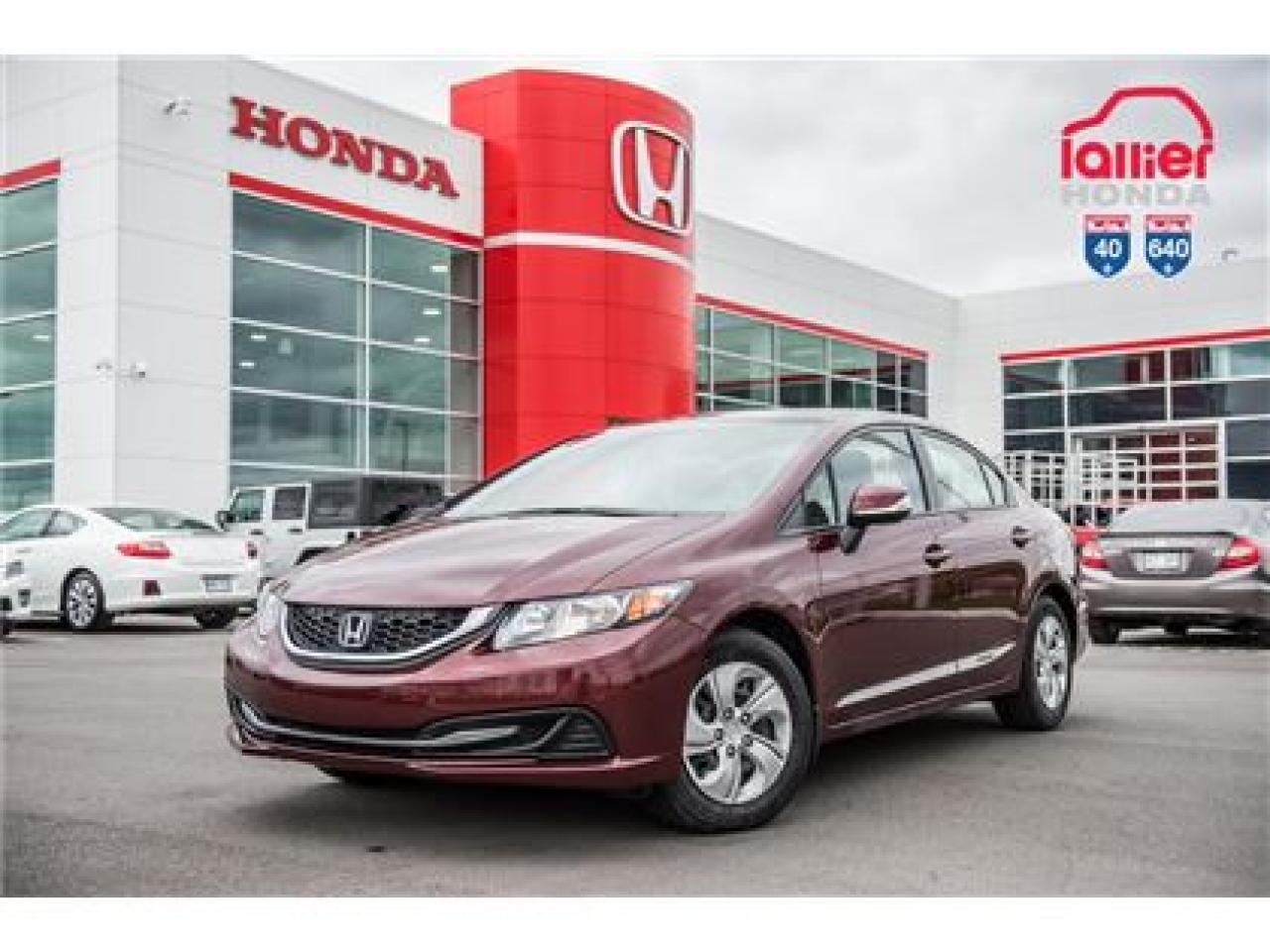HONDA CIVIC LX 2013 AUTOMATIQUE , CERTIFIÉ ET INSPECTÉ , GARANTIE 10ANS/200.000KM , GROUPE ÉLECTRIQUE , A/C , SIÈGES CHAUFFANTS , PLUSIEURS EN INVENTAIRE , PLANIFIEZ UN ESSAI ROUTIER ! Votre concessionnaire Lallier Honda 40-640 vous offre des véhicules d'occasion pour tous les budgets au meilleur prix. Choisissez parmi Acura, BMW, Buick, Chevrolet, Dodge, Ford, GMC, Honda, Hyundai, Jeep, Kia, Lexus, Mazda, Mercedes-Benz, Mitsubishi, Nissan, Pontiac, Saturn, Subaru, Suzuki, Toyota, Volkswagen. Nos véhicules usagés sont offerts à un taux de financement avantageux en plus d'offrir la garantie Lallier exclusive sur le groupe motopropulseur. Chaque véhicule est en excellente condition mécanique et esthétique, c'est garanti! Nous fournissons le rapport d'accident CarProof pour vous assurer une tranquillité d'esprit supplémentaire. Consultez la fiche du véhicule d'occasion qui vous intéresse pour en connaître les détails techniques et en faire le visionnement sous plusieurs angles.Votre concessionnaire Lallier Honda Repentigny vous offre des véhicules d'occasion pour tous les budgets au meilleur prix. Choisissez parmi Acura, BMW, Buick, Chevrolet, Dodge, Ford, GMC, Honda, Hyundai, Jeep, Kia, Lexus, Mazda, Mercedes-Benz, Mitsubishi, Nissan, Pontiac, Saturn, Subaru, Suzuki, Toyota, Volkswagen. Nos véhicules usagés sont offerts à un taux de financement avantageux en plus d'offrir la garantie Lallier exclusive sur le groupe motopropulseur. Chaque véhicule est en excellente condition mécanique et esthétique, c'est garanti! Nous fournissons le rapport d'accident CarProof pour vous assurer une tranquillité d'esprit supplémentaire. Consultez la fiche du véhicule d'occasion qui vous intéresse pour en connaître les détails techniques et en faire le visionnement sous plusieurs angles.