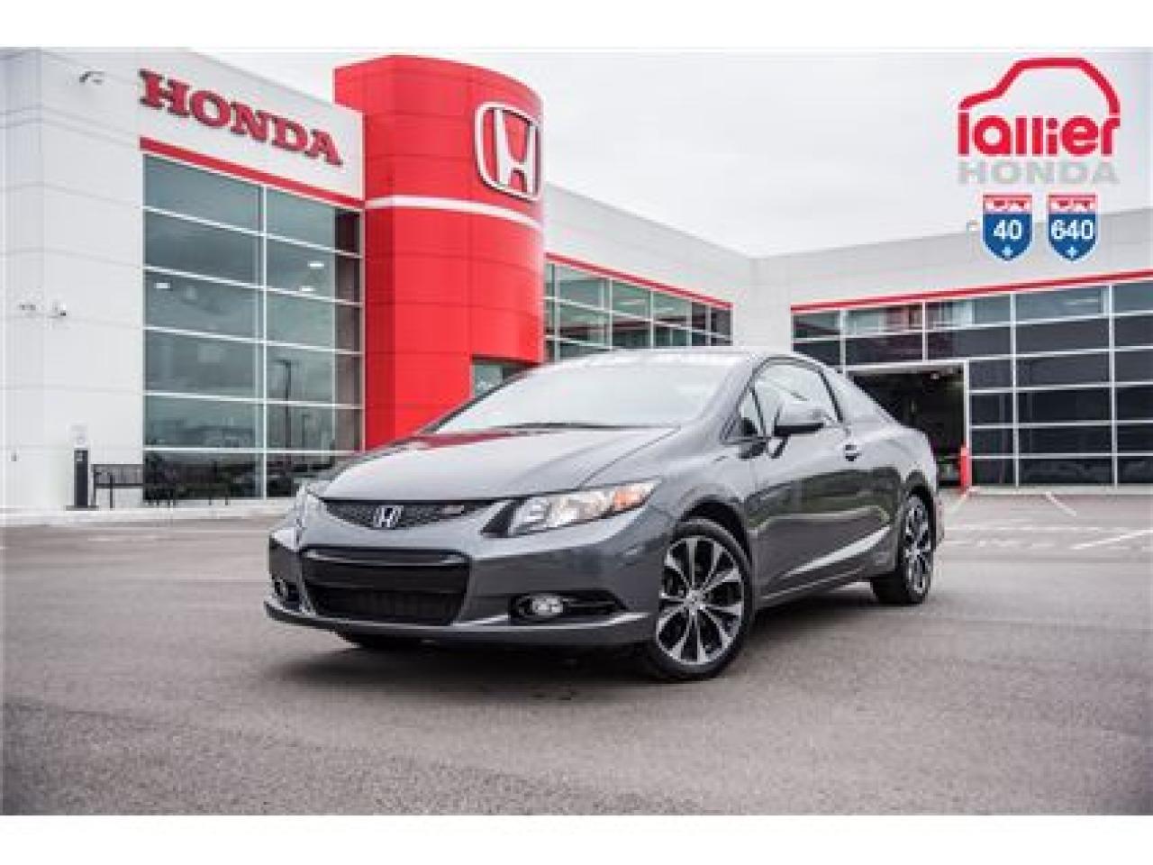 HONDA CIVIC SI COUPÉ 2013 , TRANSMISSION MANUELLE , GROUPE ÉLECTRIQUE , A/C , NAVIGATION , SIÈGES CHAUFFANTS , BLUETOOTH .!! Votre concessionnaire Lallier Honda 40-640 vous offre des véhicules d'occasion pour tous les budgets au meilleur prix. Choisissez parmi Acura, BMW, Buick, Chevrolet, Dodge, Ford, GMC, Honda, Hyundai, Jeep, Kia, Lexus, Mazda, Mercedes-Benz, Mitsubishi, Nissan, Pontiac, Saturn, Subaru, Suzuki, Toyota, Volkswagen. Nos véhicules usagés sont offerts à un taux de financement avantageux en plus d'offrir la garantie Lallier exclusive sur le groupe motopropulseur. Chaque véhicule est en excellente condition mécanique et esthétique, c'est garanti! Nous fournissons le rapport d'accident CarProof pour vous assurer une tranquillité d'esprit supplémentaire. Consultez la fiche du véhicule d'occasion qui vous intéresse pour en connaître les détails techniques et en faire le visionnement sous plusieurs angles.Votre concessionnaire Lallier Honda Repentigny vous offre des véhicules d'occasion pour tous les budgets au meilleur prix. Choisissez parmi Acura, BMW, Buick, Chevrolet, Dodge, Ford, GMC, Honda, Hyundai, Jeep, Kia, Lexus, Mazda, Mercedes-Benz, Mitsubishi, Nissan, Pontiac, Saturn, Subaru, Suzuki, Toyota, Volkswagen. Nos véhicules usagés sont offerts à un taux de financement avantageux en plus d'offrir la garantie Lallier exclusive sur le groupe motopropulseur. Chaque véhicule est en excellente condition mécanique et esthétique, c'est garanti! Nous fournissons le rapport d'accident CarProof pour vous assurer une tranquillité d'esprit supplémentaire. Consultez la fiche du véhicule d'occasion qui vous intéresse pour en connaître les détails techniques et en faire le visionnement sous plusieurs angles.