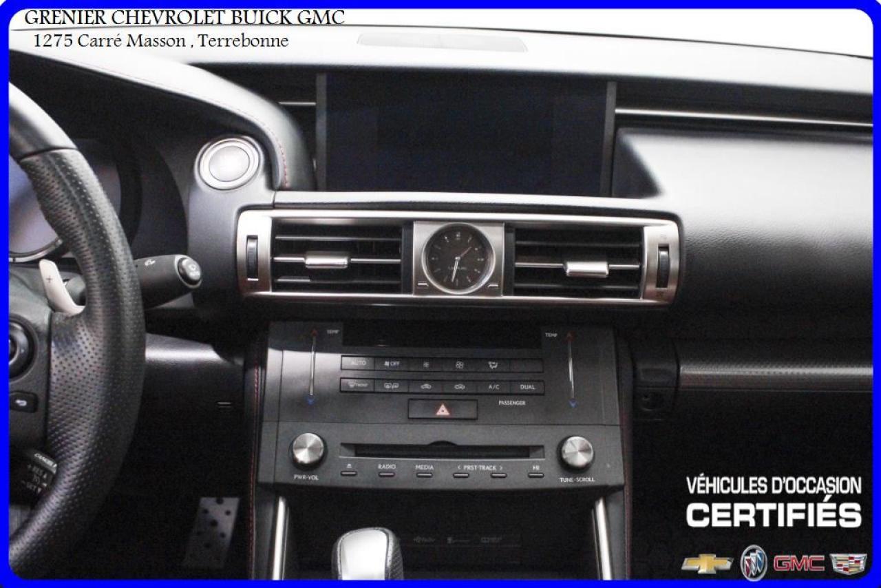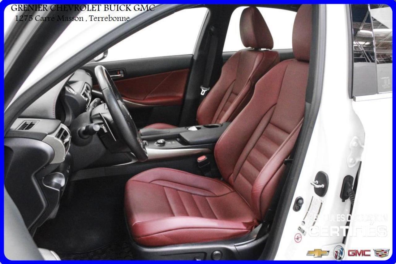 JAMAIS ACCIDENTÉ + VOLANT CHAUFFANTS SIÈGES CHAUFFANTS, VENTILÉS ET ÉLECTRIQUES + cuir rouge + navigation + toit ouvrant + caméra de recul + démarrage bouton-poussoir + mags 18 + avertisseur d'angle mort + régulateur de vitesse + commandes vocales + commandes audio au volant + volant inclinable + groupe électrique + air climatisé Garantie jusqu'au 31 Mai 2022 ou 110 000 kilomètres À voir absolument : un superbe LEXUS IS300 2016, à vendre chez GRENIER OCCASION CHEVROLET BUICK GMC NOUS SOMMES OUVERT 7 JOURS PAR SEMAINE POUR MIEUX VOUS SERVIR 1275 CARRÉ MASSON , TERREBONNE Nous sommes situé à 20 minutes Saint-Eustache/ Saint-Jérôme/Laval/Repentigny/montréal. Programme de véhicules d' occasion certifiés. Rapport Carproof disponible gratuitement. Inspection en 150 points. Le prix affiché inclus un rabais de 500 $ avec un financement.