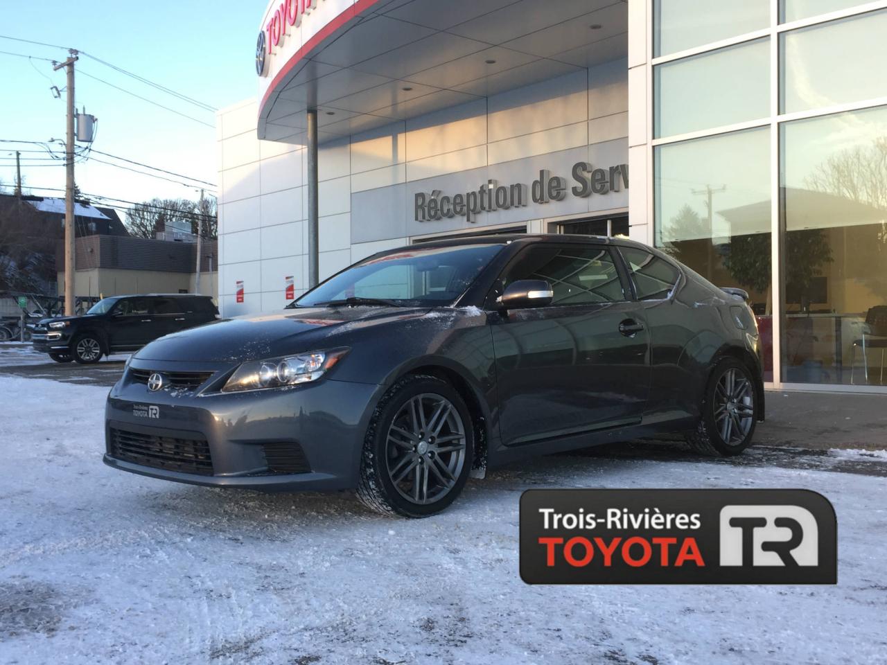 SCION TC 2013, MOTEUR DE 2.5 LITRES ET 4 CYLINDRES, TRANSMISSION MANUELLE, TOIT OUVRANT, AIR CLIMATISÉ, GROUPE ÉLECTRIQUE, RÉGULATEUR DE VITESSE, MIROIRS ÉLECTRIQUES ET CHAUFFANTS, VOLANT GAINÉ DE CUIR... Venez chez Trois-Rivieres Toyota dès aujourd'hui afin de profiter d'un vaste choix de véhicules d'occasion de toutes marques tel que Honda, Nissan, Hyundai, Ford, Mazda, Mitsubishi, Kia et plus encore! Le plus grand concessionnaire Toyota de la région de la Mauricie et Centre-du-Québec ! Situé entre Québec et Montréal, Trois-Rivières Toyota vous offre la première, deuxième et troisième chance au crédit. Venez rencontrer l'un de nos experts afin de faire l'essai routier d'un de nos véhicules sans plus tarder. Obtenez le rapport d'historique Carproof sur demande en concession. Visitez notre site web pour voir notre inventaire de voitures d'occasion : www.trtoyota.ca.
