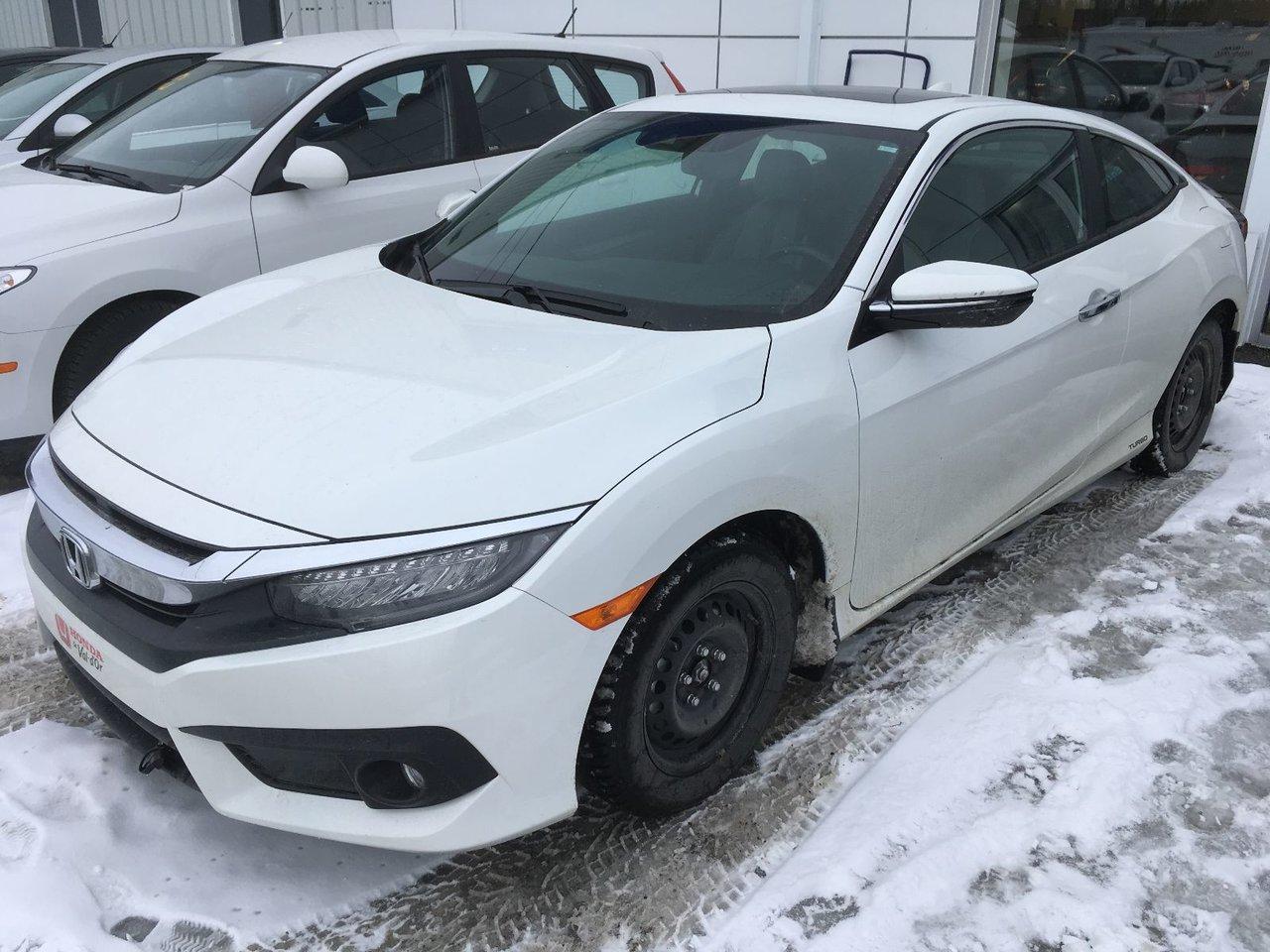 Honda Civic TOURING PNEUS D\'HIVER Pneus d\'hiver inclus 2016Régulateur de vitesse, Toit ouvrant, Essuie-glaces intermittents, Anti-démarreur, Freins ABS, Contrôle de stabilité, Coussin gonflable conducteur, Coussins gonflables latéraux, Démarreur à distance, Lecteur MP3, Intérieur en cuir, Volant ajustable, Moonroof, Tapis protecteurs, Caméra de recul, Volant gainé de cuir, Phares automatiques, Rétroviseur électrique, Direction assistée, Rétroviseurs chauffants, Coussins gonflables arrière pour la tête, Démarrage sans clé, Freins à disque, Sièges chauffants - Avant, Antipatinage, Phares antibrouillards, Sièges baquets, Technologie Bluetooth intégrée, Rétroviseur à atténuation automatique, Aluminium, Climatisation