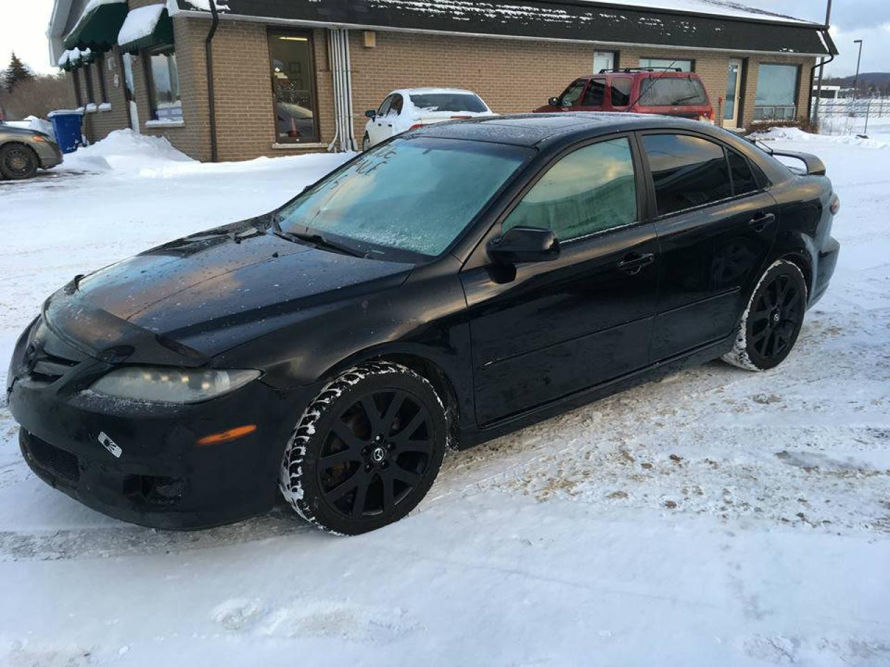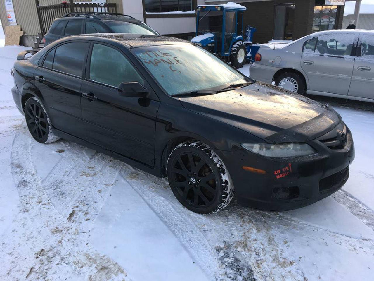 Mazda 6 2006 GT V6 Manuel en bonne condition avec seulement 185,600km. Mécanique en ordre, L'alternateur viens d'être remplacé anisi que la ligne d'exhaust qui vient d'être réparée (Morceau neuf). Pare brise non craqué, direction solide, moteur / embrayage / transmission en bon état! ENTIÈREMENT ÉQUIPÉ AVEC: MAGS 18'' AVEC BONS PNEUS, INTÉRIEUR PLUS QU'IMPECCABLE (REGARDEZ LES PHOTOS IL EST COMME NEUF) CUIR NOIR CHAUFFANT, SYSTÈME DE SON BOSE, VITRES / PORTES / MIROIRS ÉLECTRIQUES, DÉVERROUILLAGE À DISTANCE, CONTRÔLES AU VOLANT ET PLUS! RARE AVEC LE V6 MANUEL! ** Bas prix pour vente rapide, paiement interac / visa / mastercard accepté, aucun financement** Pare-choc (Bumper) avant pas parfait mais n'empêche rien au bon fonctionnement. POUR PLUS D'INFORMATIONS CONTACTEZ-NOUS PAR TÉLÉPHONE / MESSAGE TEXTE EN TOUT TEMPS AU (514)462-8911 OU CONSULTEZ NOTRE SITE WEB AU : WWW.CREDITAUTOSPLUS.COM