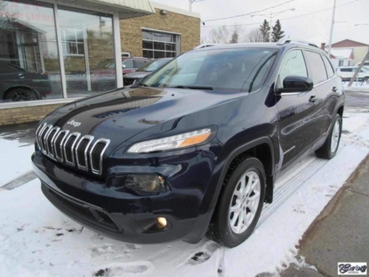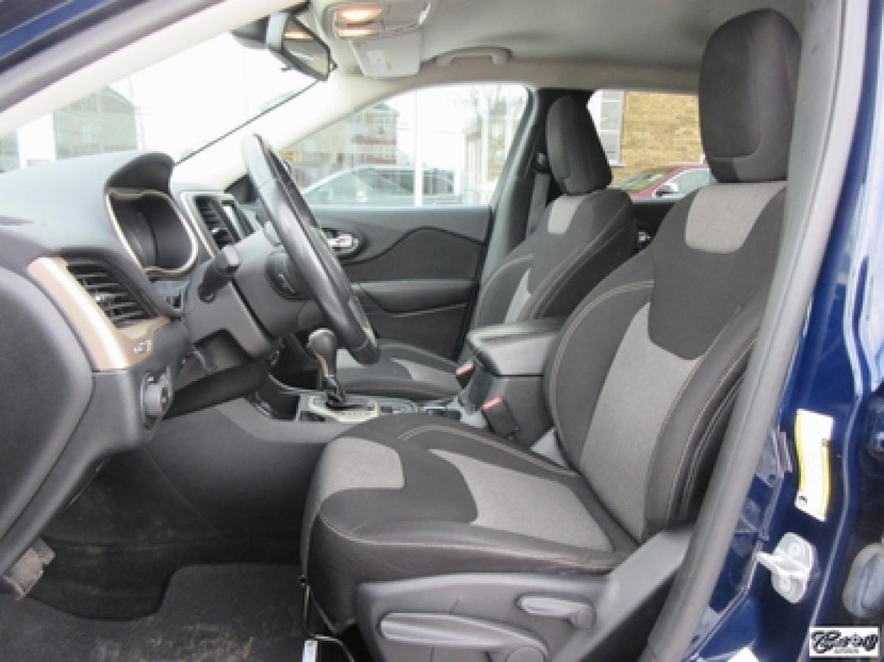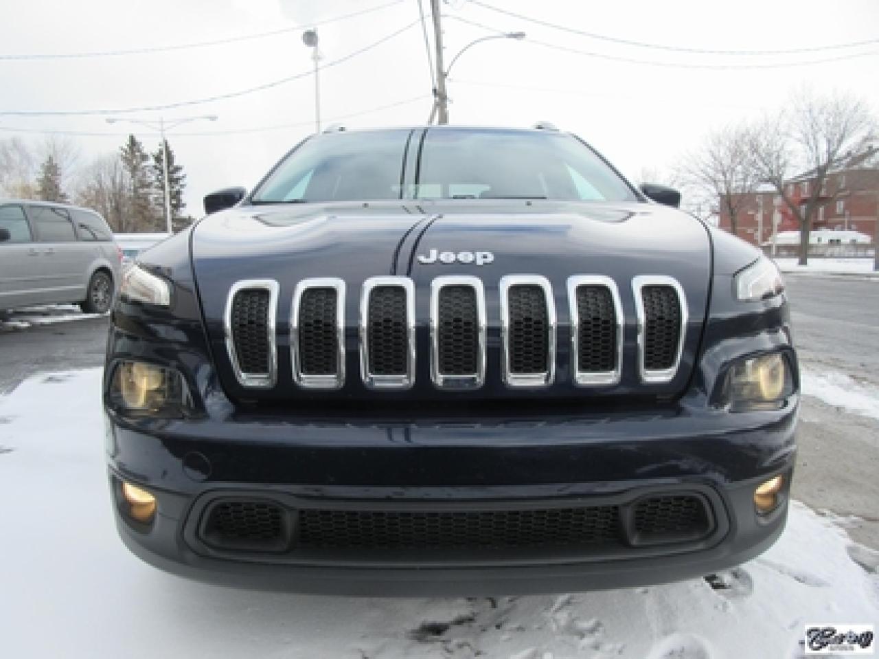 Jeep Cherokee North 4x2 2014\n\nRégulateur de vitesse, Essuie-glaces intermittents, Essuie-glace arrière, Anti-démarreur, Freins ABS, Contrôle de stabilité, Coussin gonflable conducteur, Lecteur MP3, Chauffe-moteur, Portes électriques, Tachymètre, Vitres électriques, Air climatisé, Commandes audio au volant, Sièges arrières rabattables, Volant ajustable, Aileron, Tapis protecteurs, Vitres teintées, Attelage remorque, Radio satellite, Ordinateur de bord, Caméra de recul, Radio AM/FM, Direction assistée, Télédéverrouillage, Rétroviseurs électriques, Jantes en alliage, Antipatinage, Phares antibrouillards, Coussins gonflables, Support à bagages, Verrous de sécurité pour enfants, Système de surveillance de la pression des pneus, Dégivreur de lunette arrière, Miroirs ajustables de l'intérieur, Sièges baquets, Technologie Bluetooth intégrée\n\nBALANCE DE GARANTIE PROLONGÉE JEEP PLAN OR GLOBALE JUSQU'AU 16 MAI 2019 OU 100000 KM TRANSFÉRABLE SANS FRAIS. Attache-remorque, capacité de remorquage de 4500 lbs, caméra de recul, écran tactile de 8.4 pouces, "bluetooth", gr. électrique, A/C, V6 3.2L PENTASTAR, traité antirouille. Superbe VUS, un seul proprio!!! AUBAINE AUBAINE AUBAINE... Carproof disponible, aucun accident.