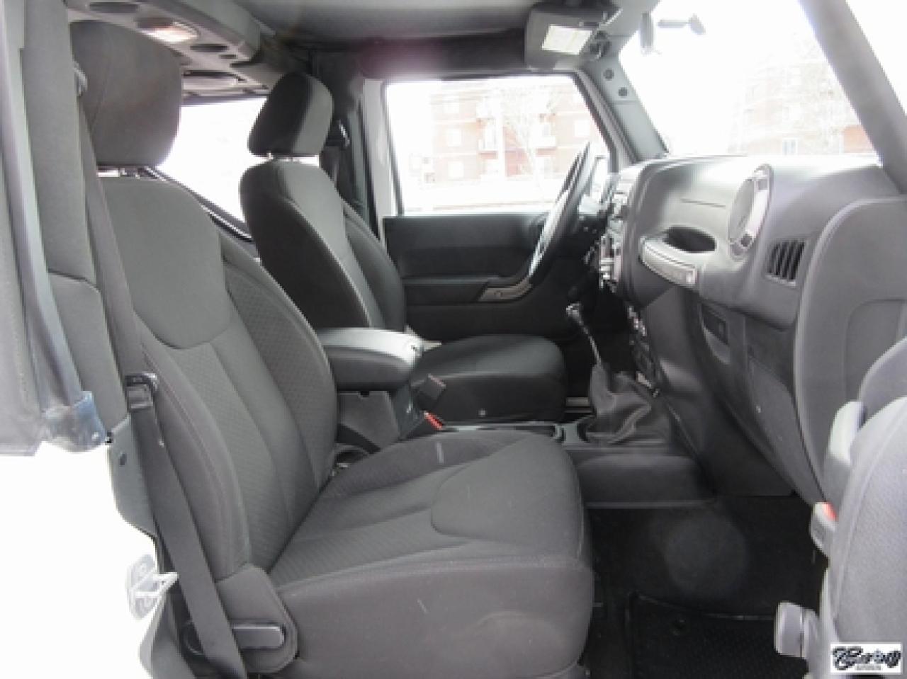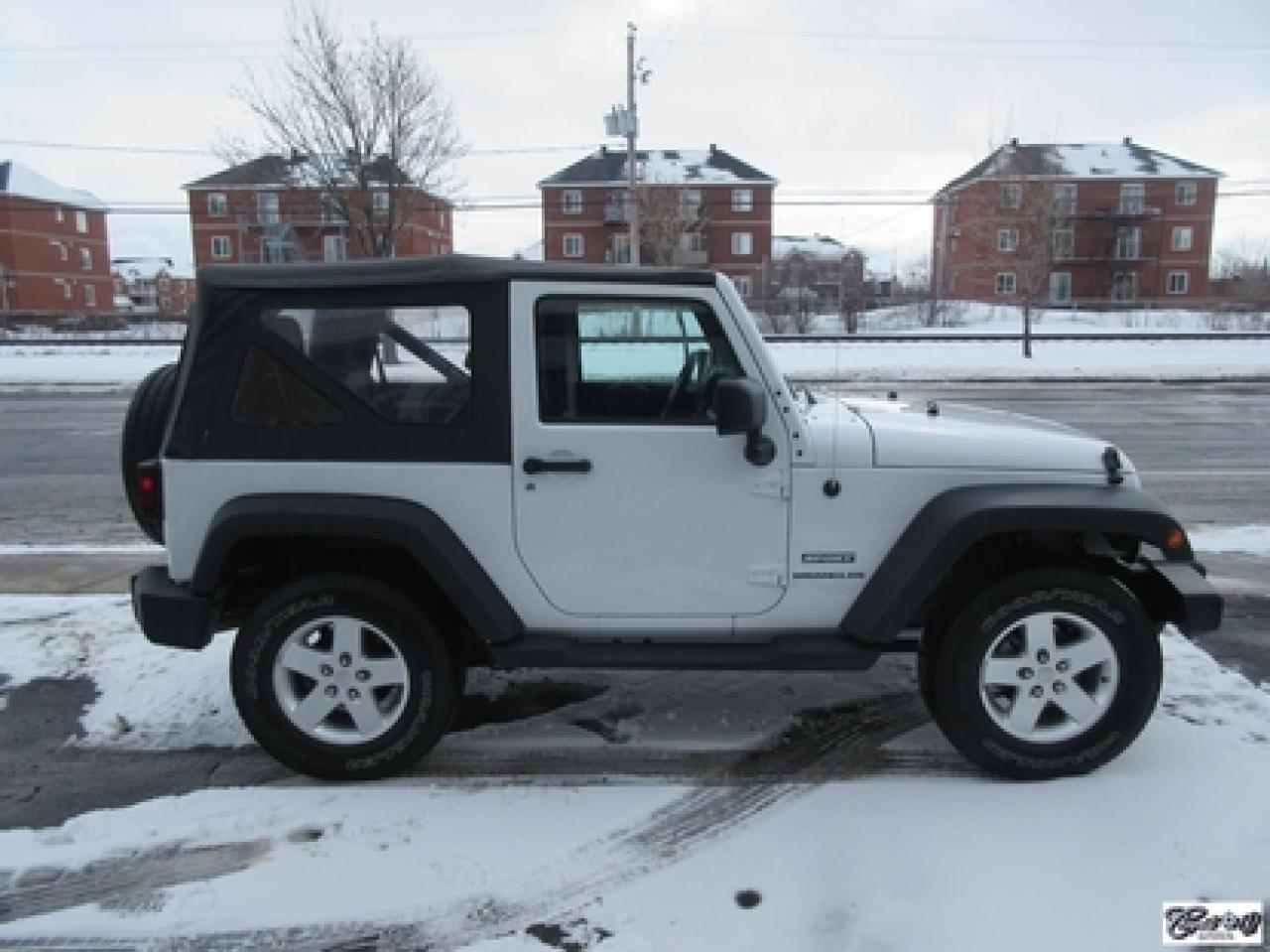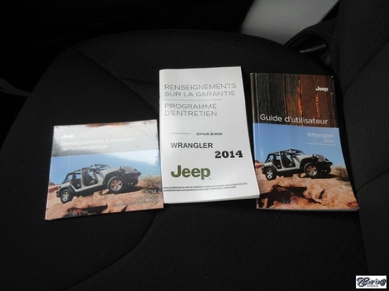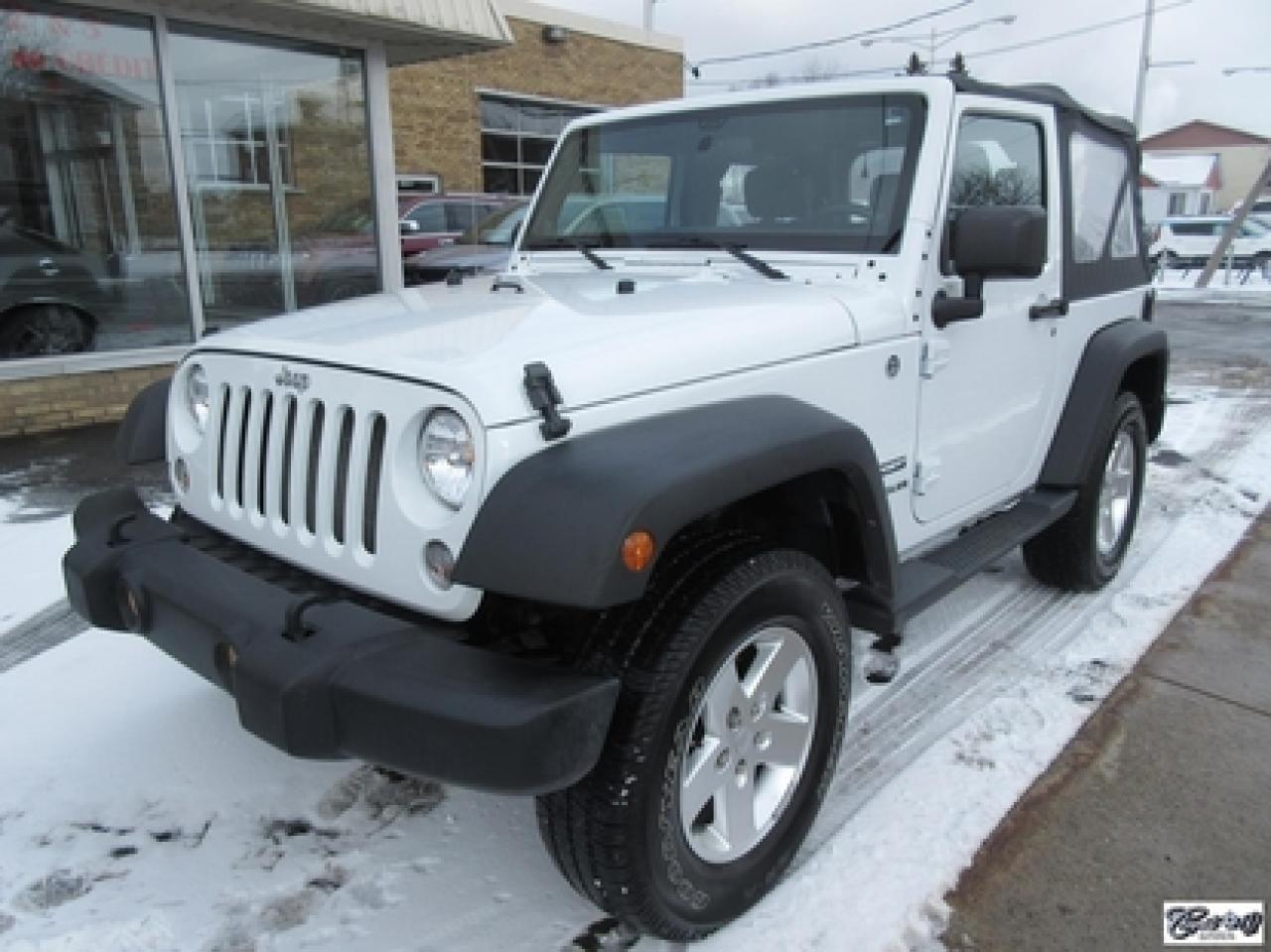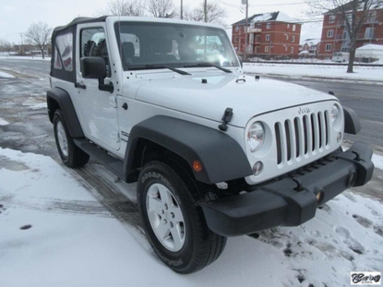 Jeep Wrangler Sport 2014\n\nRégulateur de vitesse, Essuie-glaces intermittents, Anti-démarreur, Freins ABS, Contrôle de stabilité, Coussin gonflable conducteur, Lecteur CD, Lecteur MP3, Chauffe-moteur, Tachymètre, Commandes audio au volant, Sièges arrières rabattables, Volant ajustable, Marchepieds, Tapis protecteurs, Attelage remorque, Ordinateur de bord, Radio AM/FM, Direction assistée, Jantes en alliage, Antipatinage, Phares antibrouillards, Système de surveillance de la pression des pneus, Sièges baquets\n\nSuperbe Jeep, 4 PNEUS HIVER SUR RIMS INCLUS, mags, marchepieds, attache-remorque, ratio du différentiel de 3.73, bas kilométrage, 1 seul proprio (55 ans), bien entretenu, freins comme neufs, faut voir!!! Carproof disponible, aucun accident...