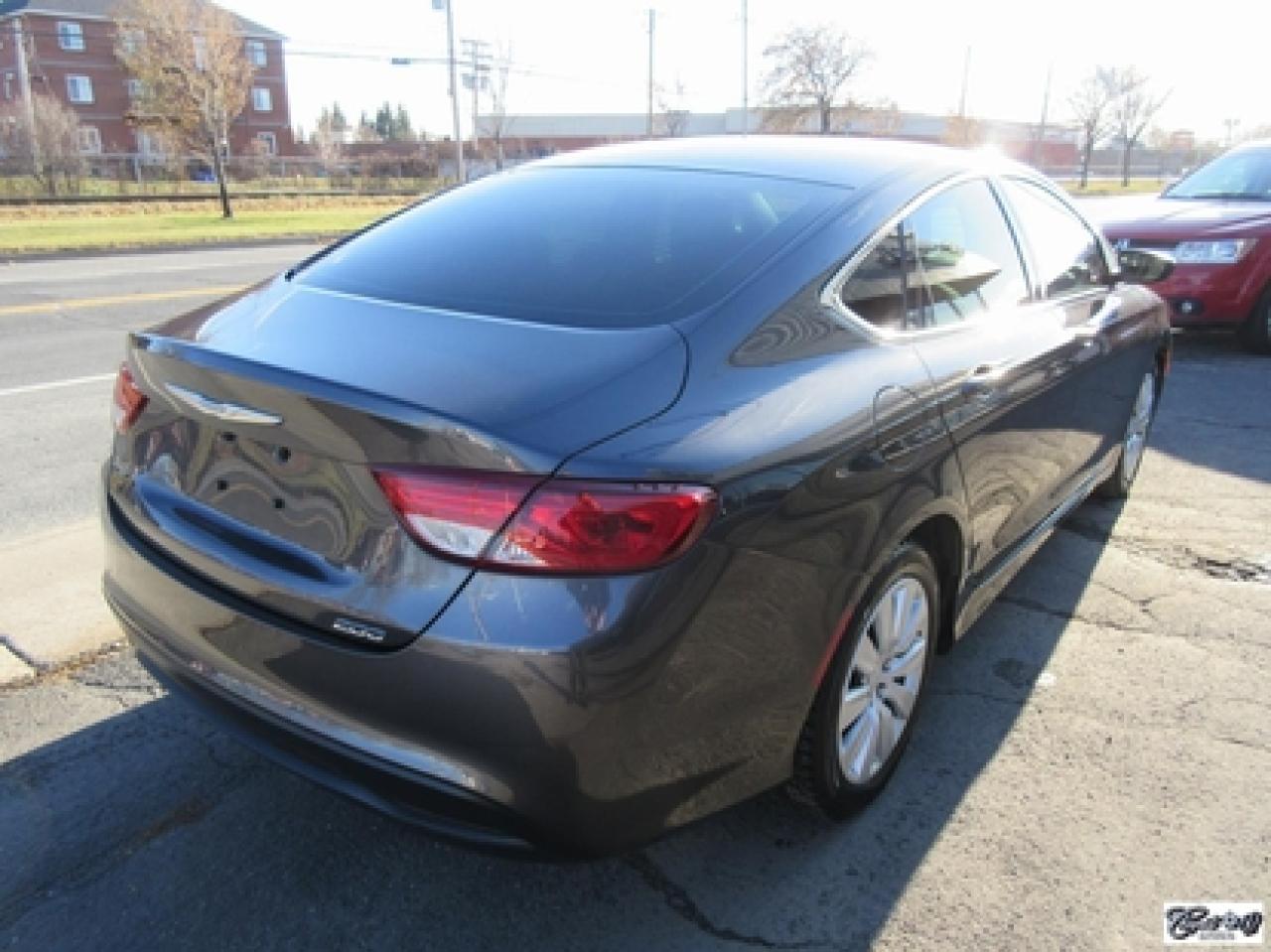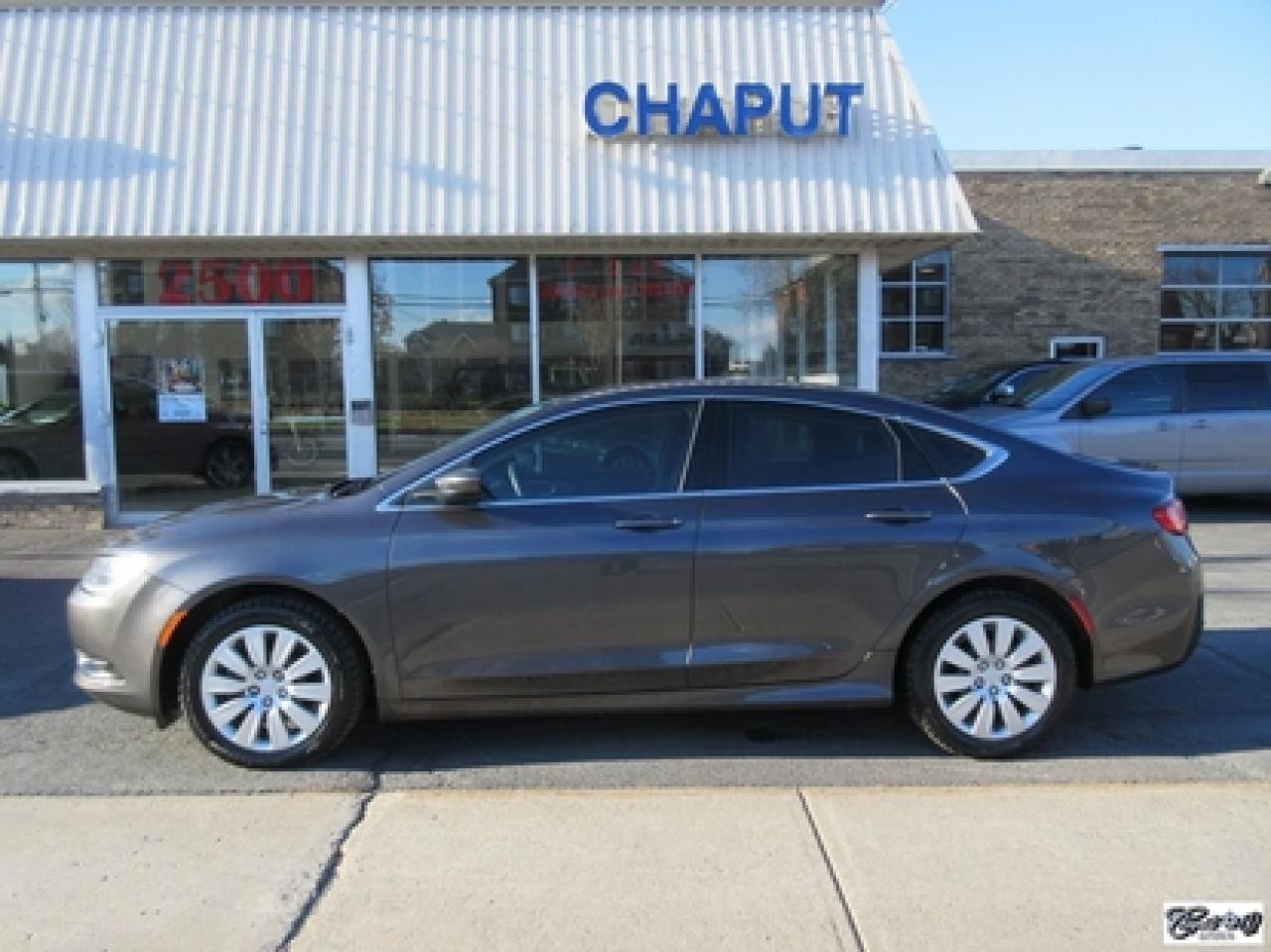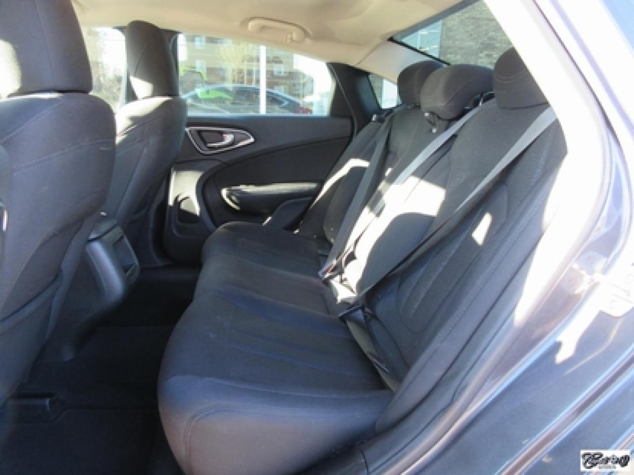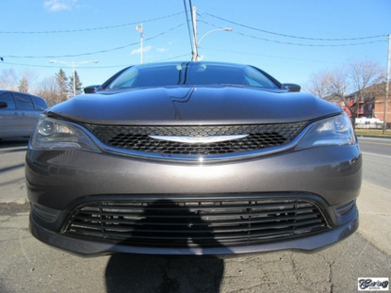 Chrysler 200 LX 2015\n\nRégulateur de vitesse, Essuie-glaces intermittents, Anti-démarreur, Freins ABS, Contrôle de stabilité, Coussin gonflable conducteur, Démarreur à distance, Lecteur MP3, Chauffe-moteur, Portes électriques, Tachymètre, Vitres électriques, Air climatisé, Commandes audio au volant, Sièges arrières rabattables, Volant ajustable, Tapis protecteurs, Vitres teintées, Ordinateur de bord, Radio AM/FM, Direction assistée, Télédéverrouillage, Système d'alarme, Rétroviseurs électriques, Antipatinage, Coussins gonflables, Enjoliveurs de roues, Verrous de sécurité pour enfants, Système de surveillance de la pression des pneus, Dégivreur de lunette arrière, Miroirs ajustables de l'intérieur, Sièges baquets, Port USB\n\nBALANCE DE GARANTIE PROLONGÉE PLAN OR CHRYSLER GLOBALE JUSQU'AU 13 MARS 2020 OU 100000 KM!!! 4 pneus hiver comme neufs, dem. à distance, gr. électrique, A/C, vitres teintées, traité antirouille, superbe berline spacieuse et économique, AUBAINE AUBAINE AUBAINE!!! Carproof disponible...