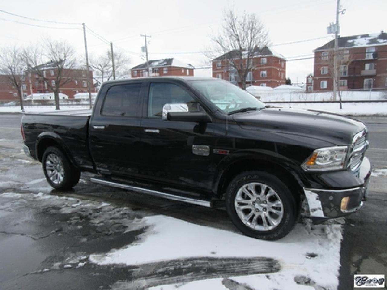 RAM 1500 Crew Longhorn Ecodiesel 2016\n\nRégulateur de vitesse, Toit ouvrant, Essuie-glaces intermittents, Anti-démarreur, Freins ABS, Contrôle de stabilité, Coussin gonflable conducteur, Démarreur à distance, Lecteur MP3, Chauffe-moteur, Miroirs chauffants, Portes électriques, Sièges électriques, Tachymètre, Vitres électriques, Air climatisé, Intérieur en cuir, Climatisation deux zones, Commandes audio au volant, Sièges arrières rabattables, Sièges chauffants, Volant ajustable, Marchepieds, Tapis protecteurs, Vitres teintées, Doublure de caisse, Attelage remorque, Radio satellite, Ordinateur de bord, Caméra de recul, Radio AM/FM, Sièges ventilés, Direction assistée, Télédéverrouillage, Système d'alarme, Essuie-glace détecteur de pluie, Rétroviseurs électriques, Jantes en alliage, Antipatinage, Phares antibrouillards, Coussins gonflables, Verrous de sécurité pour enfants, Système de surveillance de la pression des pneus, Miroirs ajustables de l'intérieur, Sièges baquets, Sièges avec fonction mémoire, Technologie Bluetooth intégrée, Port USB, Climatiseur automatique, Système HomeLink, Aide au stationnement (capteurs), Volant chauffant\n\nComme neuf!!! CREWCAB, cuir, toit ouvrant, NAVIGATION, caméra de recul, dem. à distance, sieges chauffants et ventilés, volant chauffant, "bluetooth", écran tactile 8.4 pouces, système de son ALPINE, couvert de boîte rigide repliable, miroirs de remorquage, contrôleurs de freins électriques d'origine, suspension pneumatique, ratio différentiel de 3.92, sièges arrières chauffants, marchepieds et +++. Un VRAI beau camion IMPECCABLE. Carproof disponible, aucun accident.