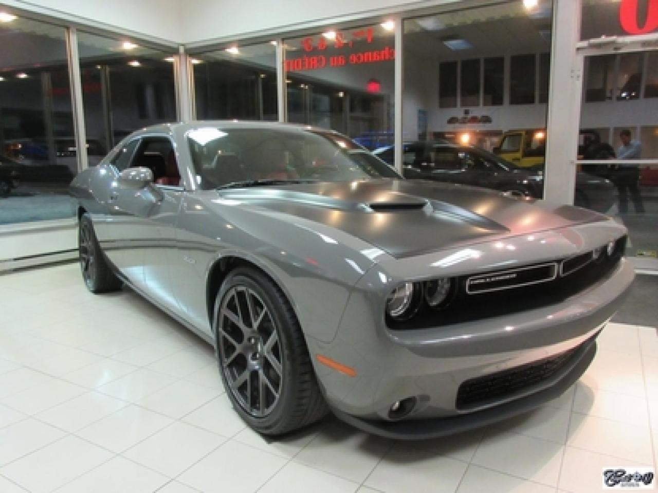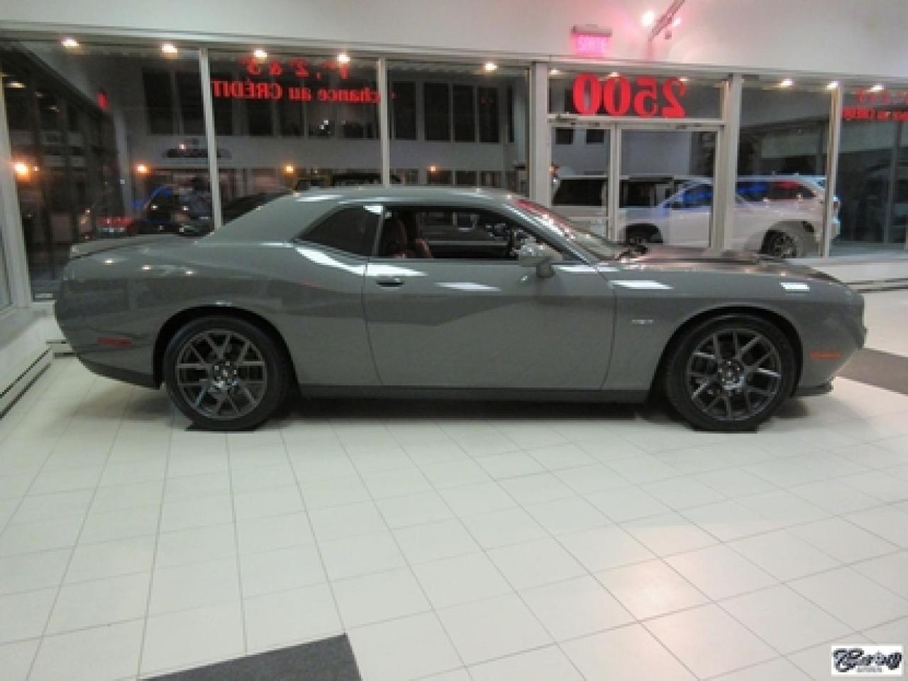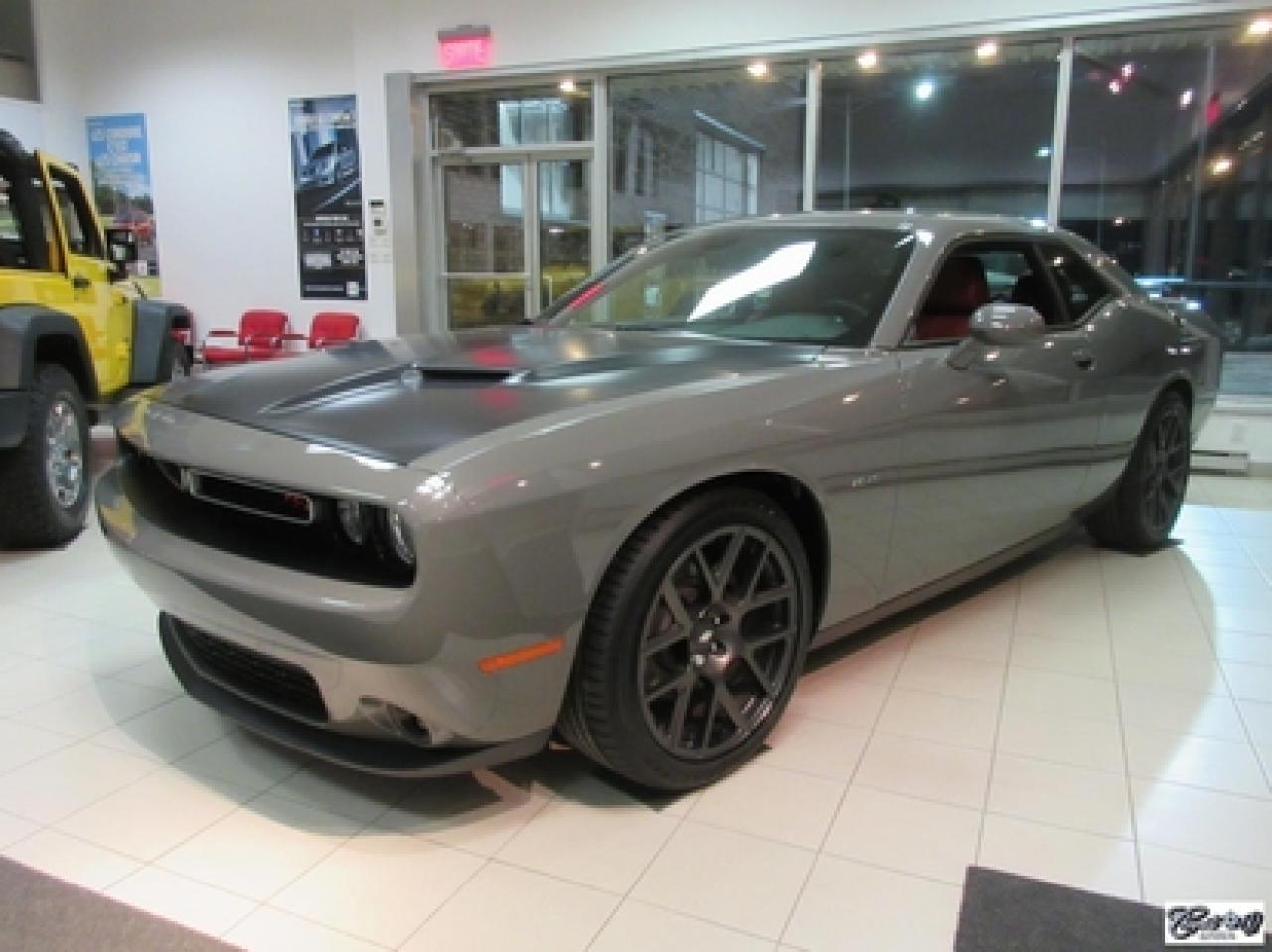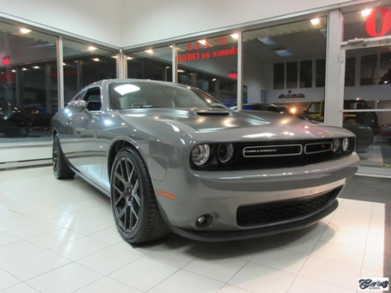 Dodge Challenger R/T 2017\n\nRégulateur de vitesse, Toit ouvrant, Essuie-glaces intermittents, Anti-démarreur, Freins ABS, Contrôle de stabilité, Coussin gonflable conducteur, Lecteur MP3, Chauffe-moteur, Miroirs chauffants, Portes électriques, Sièges électriques, Tachymètre, Vitres électriques, Air climatisé, Intérieur en cuir, Climatisation deux zones, Commandes audio au volant, Sièges arrières rabattables, Sièges chauffants, Volant ajustable, Aileron, Tapis protecteurs, Phares haute intensité, Radio satellite, Ordinateur de bord, Caméra de recul, Radio AM/FM, Sièges ventilés, Direction assistée, Télédéverrouillage, Système d'alarme, Rétroviseurs électriques, Jantes en alliage, Antipatinage, Phares antibrouillards, Coussins gonflables, Système de surveillance de la pression des pneus, Dégivreur de lunette arrière, Miroirs ajustables de l'intérieur, Sièges baquets, Technologie Bluetooth intégrée, Port USB, Climatiseur automatique, Système HomeLink, Volant chauffant\n\nWOW!!! LOOK D'ENFER... Transmission manuelle 6 vitesses TREMEC, tout équipé, intérieur en cuir rouge, couleur extérieur très spéciale "DESTROYER GRAY", sièges chauffants et ventilés, NAVIGATION, toit ouvrant, caméra de recul, système de son HARMAN KARDON à 18 hauts-parleurs, "bluetooth", ensemble SUPER TRACK PAK, freins haute performance, mags 20" en aluminium forgé, phares au XÉNON et +++. Très performante, faut voir, UNIQUE sur le marché!!! Une voiture sport aux allures de mauvais garçons.. ÉPARGNEZ PLUS DE 10000$ versus un neuf... Carproof disponible, aucun accident...