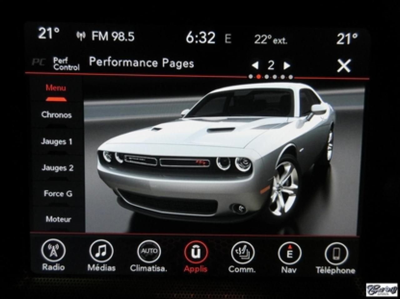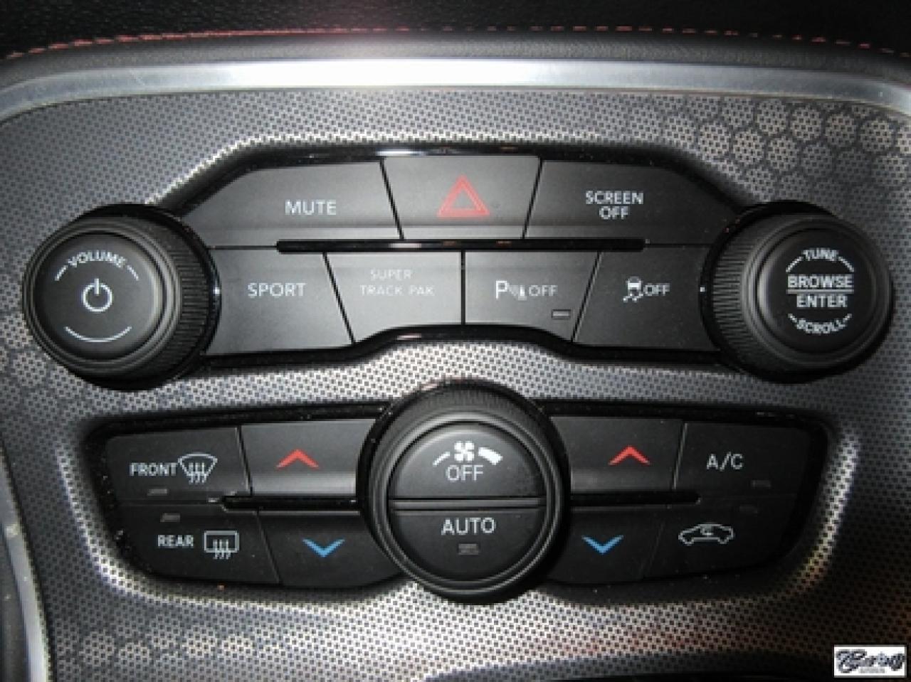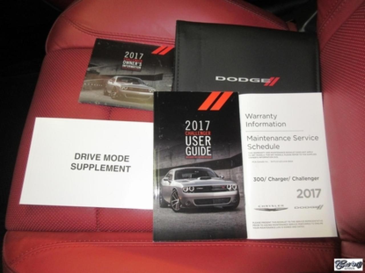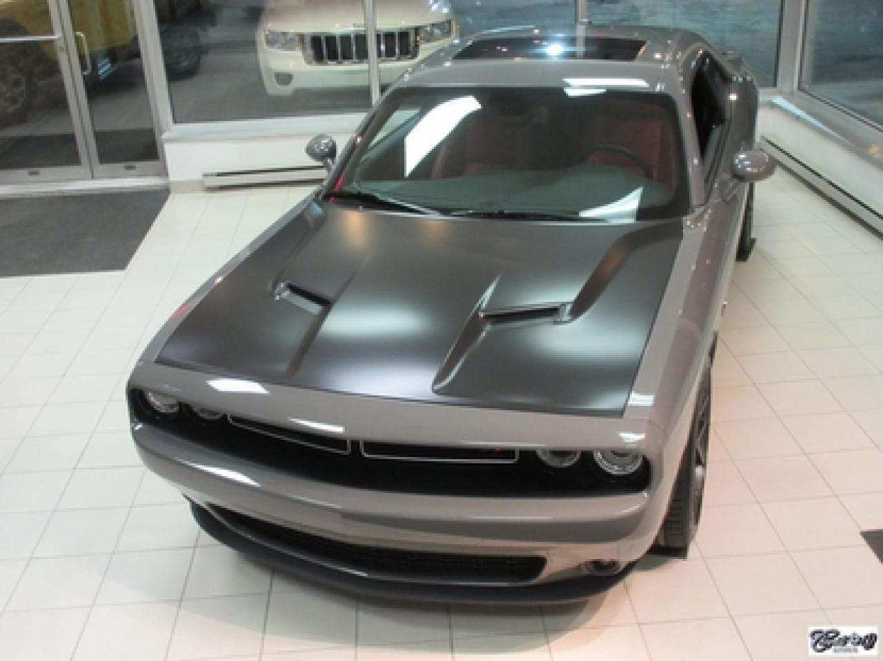 Dodge Challenger R/T 2017\n\nRégulateur de vitesse, Toit ouvrant, Essuie-glaces intermittents, Anti-démarreur, Freins ABS, Contrôle de stabilité, Coussin gonflable conducteur, Lecteur MP3, Chauffe-moteur, Miroirs chauffants, Portes électriques, Sièges électriques, Tachymètre, Vitres électriques, Air climatisé, Intérieur en cuir, Climatisation deux zones, Commandes audio au volant, Sièges arrières rabattables, Sièges chauffants, Volant ajustable, Aileron, Tapis protecteurs, Phares haute intensité, Radio satellite, Ordinateur de bord, Caméra de recul, Radio AM/FM, Sièges ventilés, Direction assistée, Télédéverrouillage, Système d'alarme, Rétroviseurs électriques, Jantes en alliage, Antipatinage, Phares antibrouillards, Coussins gonflables, Système de surveillance de la pression des pneus, Dégivreur de lunette arrière, Miroirs ajustables de l'intérieur, Sièges baquets, Technologie Bluetooth intégrée, Port USB, Climatiseur automatique, Système HomeLink, Volant chauffant\n\nWOW!!! LOOK D'ENFER... Transmission manuelle 6 vitesses TREMEC, tout équipé, intérieur en cuir rouge, couleur extérieur très spéciale "DESTROYER GRAY", sièges chauffants et ventilés, NAVIGATION, toit ouvrant, caméra de recul, système de son HARMAN KARDON à 18 hauts-parleurs, "bluetooth", ensemble SUPER TRACK PAK, freins haute performance, mags 20" en aluminium forgé, phares au XÉNON et +++. Très performante, faut voir, UNIQUE sur le marché!!! Une voiture sport aux allures de mauvais garçons.. ÉPARGNEZ PLUS DE 10000$ versus un neuf... Carproof disponible, aucun accident...