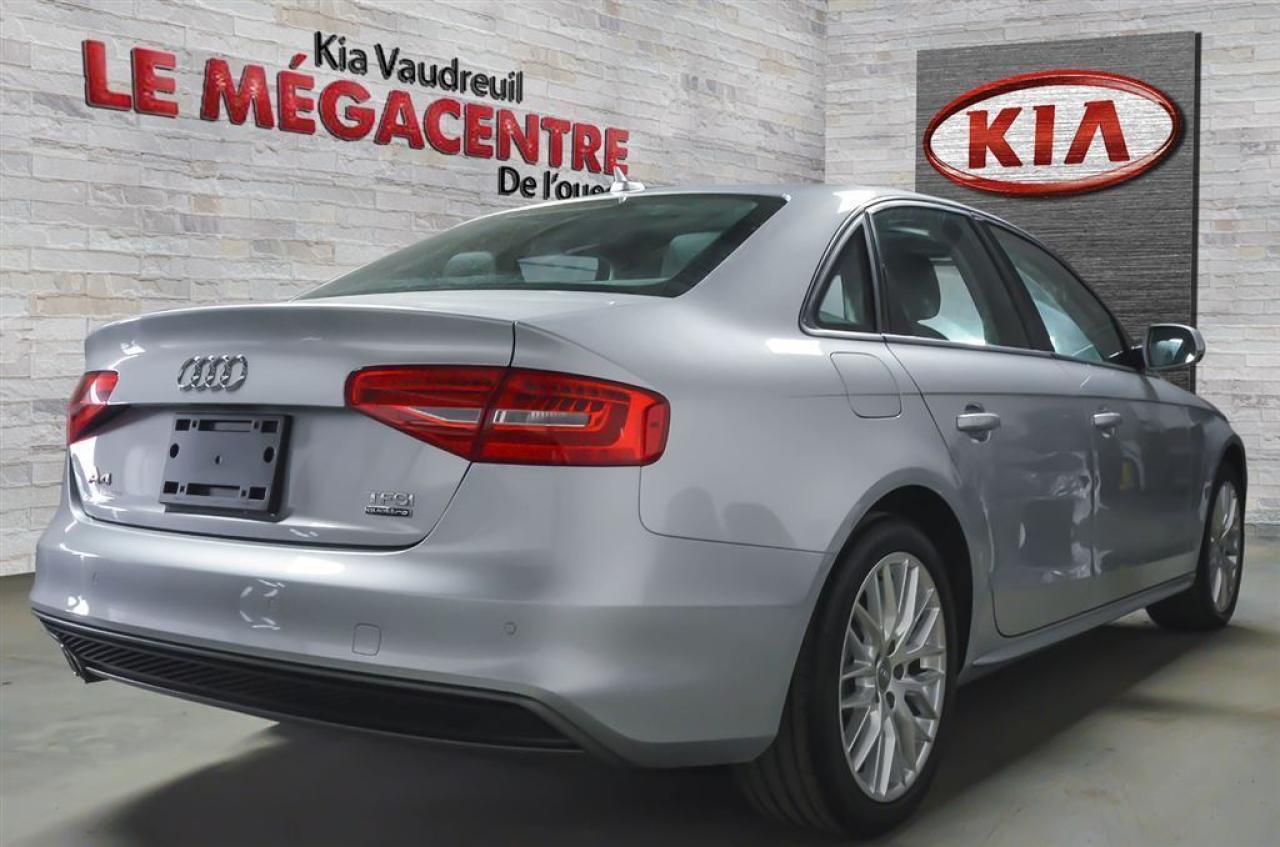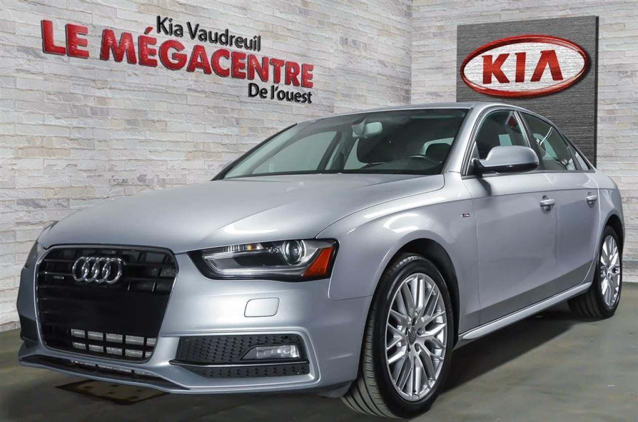 AUDI A4 2015 QUATTRO avec seulement 67 548km!! QUATTRO - SIÈGES CHAUFFANTS - RÉGULATEUR DE VITESSE - TOIT OUVRANT - +++ - Rapport d'inspection et Carproof disponibles. Prix basé sur un financement. N'hésitez surtout pas à contacter l'un de nos conseillers pour plus d'informations : 1 888 379-5806 Kia Vaudreuil ET son Méga Centre d'occasion de l'Ouest!