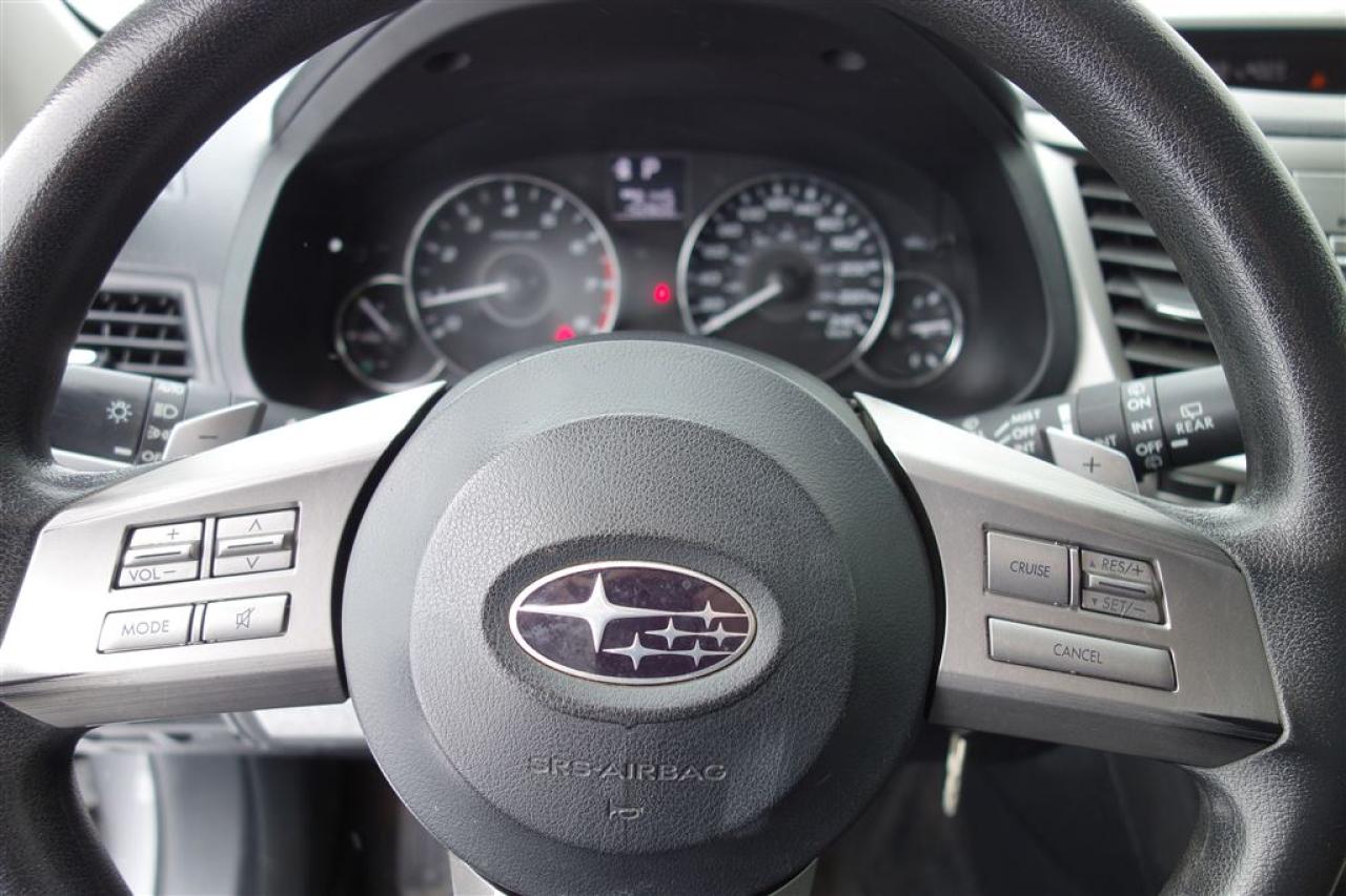Caractéristiques clés : Moteur 2.5 Litres, 170 chevaux, Radio AM/FM stéréo avec prise d'entrée auxiliaire, Climatiseur, Lecteur de CD/MP3/WMA, 4 haut-parleurs, 3 prises de courant 12 volts, Régulateur de vitesse, Technologie sans fil Bluetooth, Verouillage des portes à commande électrique, Phares antibrouillard, Rétroviseurs extérieurs chauffants, Sièges en tissu, Sièges avant chauffants, Ancrages pour sièges d'enfant ISOFIX, Siège du conducteur à commande électrique en 10 directions. Garantie supplémentaire et Rapport CarProof disponible pour vous ! WWW.SUBARUVICTORIAVILLE.CA English service is also available. You are welcome to contact us by email or call.