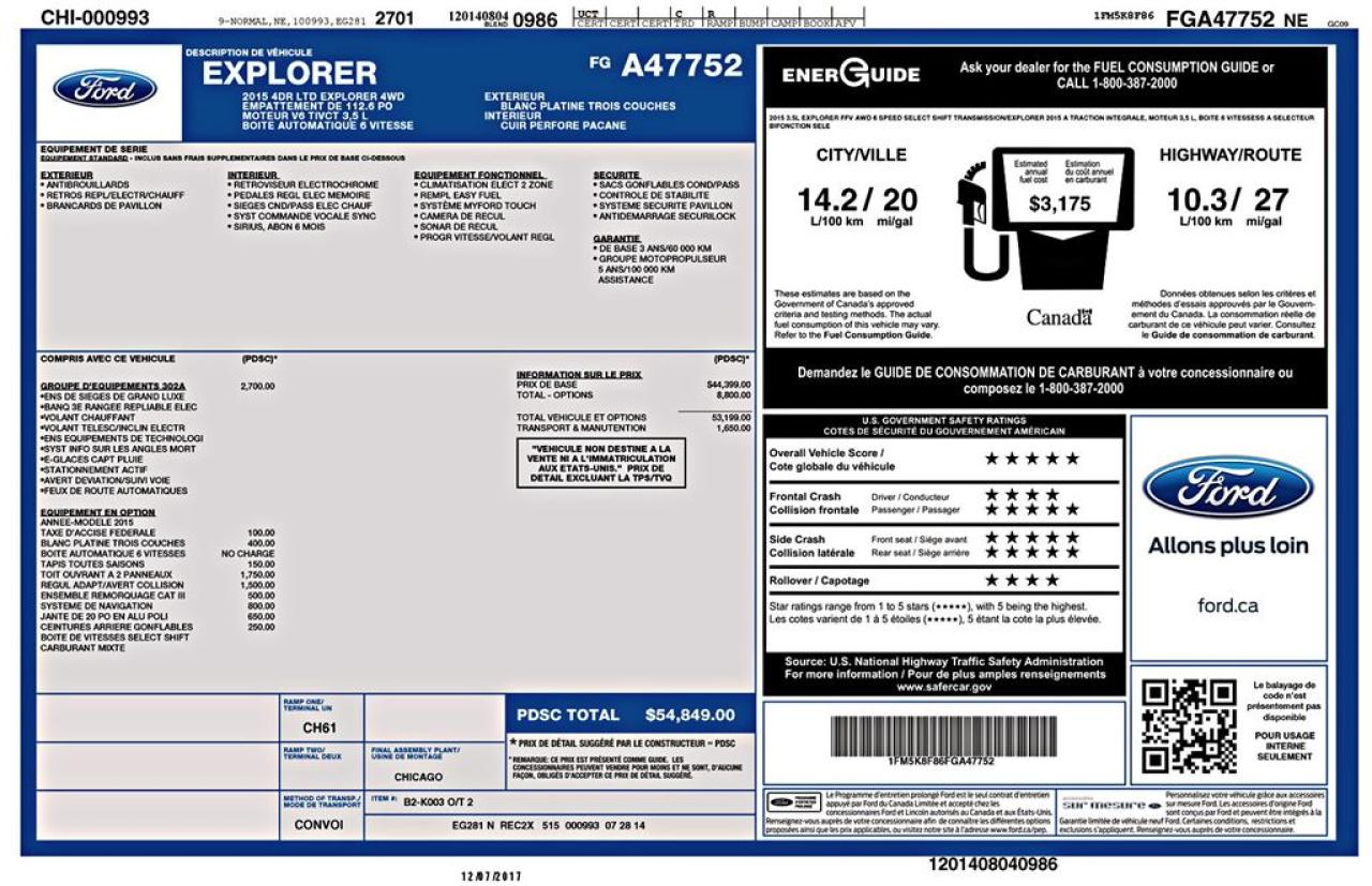 VÉHICULE JAMAIS ACCIDENTÉ !! - ENTIÈREMENT ÉQUIPÉ !! - PNBV : 2776 - TAILLE D'ORIGINE DES PNEUS : 255/50 R20 - MOTEUR DE 3.5L - CAPACITÉ DE REMORQUAGE : 5 000 LBS - VERROUILLAGE DES PORTES PAR CODE - VITRES ÉLECTRIQUES - MIROIRS ÉLECTRIQUES - PHARES AUTOMATIQUES - COMMANDES AU VOLANT - COMMANDES VOCALES - CONNECTIVITÉ BLUETOOTH - RÉGULATEUR DE VITESSE - SYSTÈME ANTIPATINAGE - CONTRÔLE ASSISTANCE ASCENSION - OPTION SELECT TERRAIN - NAVIGATION - CAMERA DE RECUL - SONAR DE RECUL ET CAPTEURS D'ANGLES MORTS - CLIMATISATION 2 ZONES - SIÈGES ÉLECTRIQUES / CHAUFFANTS / VENTILÉS / MÉMOIRE - TOIT PANORAMIQUE - HAYON ÉLECTRIQUE - VOLANT GAINÉ DE CUIR / CHAUFFANT - RADIO CD / SATELLITE - RÉGULATEUR DE TEMPÉRATURE AUTOMATIQUE - PUSH START BUTTON - PRISE USB / AUXILIAIRE / 12 VOLTS **** LAQUERRE AUTO, LE PLUS GROS INVENTAIRE DE VÉHICULES D'OCCASION DES BOIS-FRANCS *** 1ÈRE, 2IÈME ET 3IÈME CHANCE AU CRÉDIT **** TAUX D'INTÉRÊT À PARTIR DE 3.99% **** LIVRAISON LE JOUR MÊME **** NOUS LIVRONS PARTOUT AU QUEBEC **** CONTACTEZ NOUS PAR TÉLÉPHONE : 1-866-928-7165 OU PAR TEXTO 1-819-350-7976 / 1-819-266-8084 ****