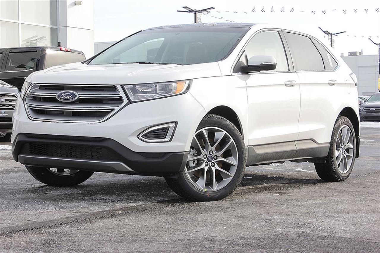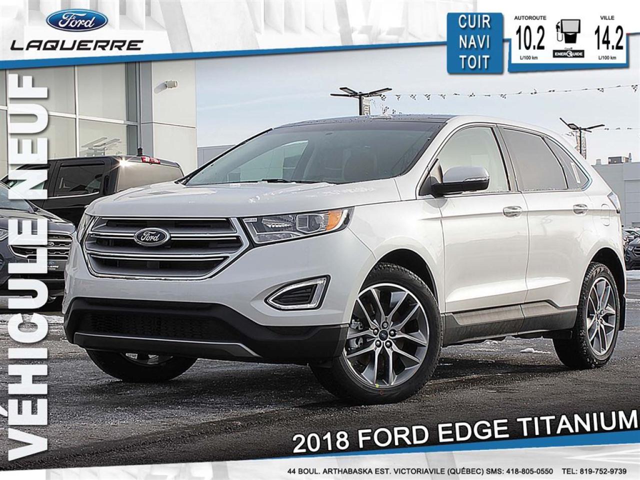 ***# 18087 *** LE FORD EDGE 2018 COMBINE LA PUISSANCE, LA PERFORMANCE ET LA MAN?UVRABILITÉ AVEC UNE TECHNOLOGIE QUI INSPIRE CONFIANCE DERRIÈRE LE VOLANT. LE FORD EDGE 2017 SE FAIT REMARQUER EN RAISON DE SON DESIGN AUDACIEUX. DE LA CALANDRE DYNAMIQUE À LA CARROSSERIE AUX FORMES FLUIDES ET AUX LIGNES ÉPURÉES. PLUS DE 3,244.00$ DE RABAIS SUR UN VÉHICULE NEUF SIMPLEMENT LE MOINS CHER AU QUÉBEC, PLUSIEURS EN INVENTAIRE. PRIX DE DÉTAIL DE 49,389.00$ INCLUANT TOUTES CES OPTIONS. EQUIPMENT GROUP 301A 800.00 *COLD WEATHER PACKAGE *HEATED STEERING WHEEL *RUBBER FLOOR MATS *HTD WINDSHIELD WIPER DE/ICER *HEATED REAR SEATS *HEATED/COOLED FRONT SEATS OPTIONAL EQUIPMENT/OTHER 2018 MODEL YEAR FEDERAL EXCISE TAX 100.00 WHITE PLATINUM TRI-COAT 550.00 3.5L TI-VCT V6 ENGINE 500.00 AUTOMATIC OVERDRIVE TRANS NO CHARGE 245/50R20 A/S TIRES CANADIAN TOURING PACKAGE 2,000.00 *VOICE ACTIVED NAVIGATION SY *PANORAMIC ROOF CLASS II TRAILER TOW PKG 500.00 20'' POLISHED ALUMINUM WHEELS 850.00 TRANSPORT ET PREPARATION INCLUS, TAXE EN SUS. RABAIS 1,000.00$ VUS INCLUS.